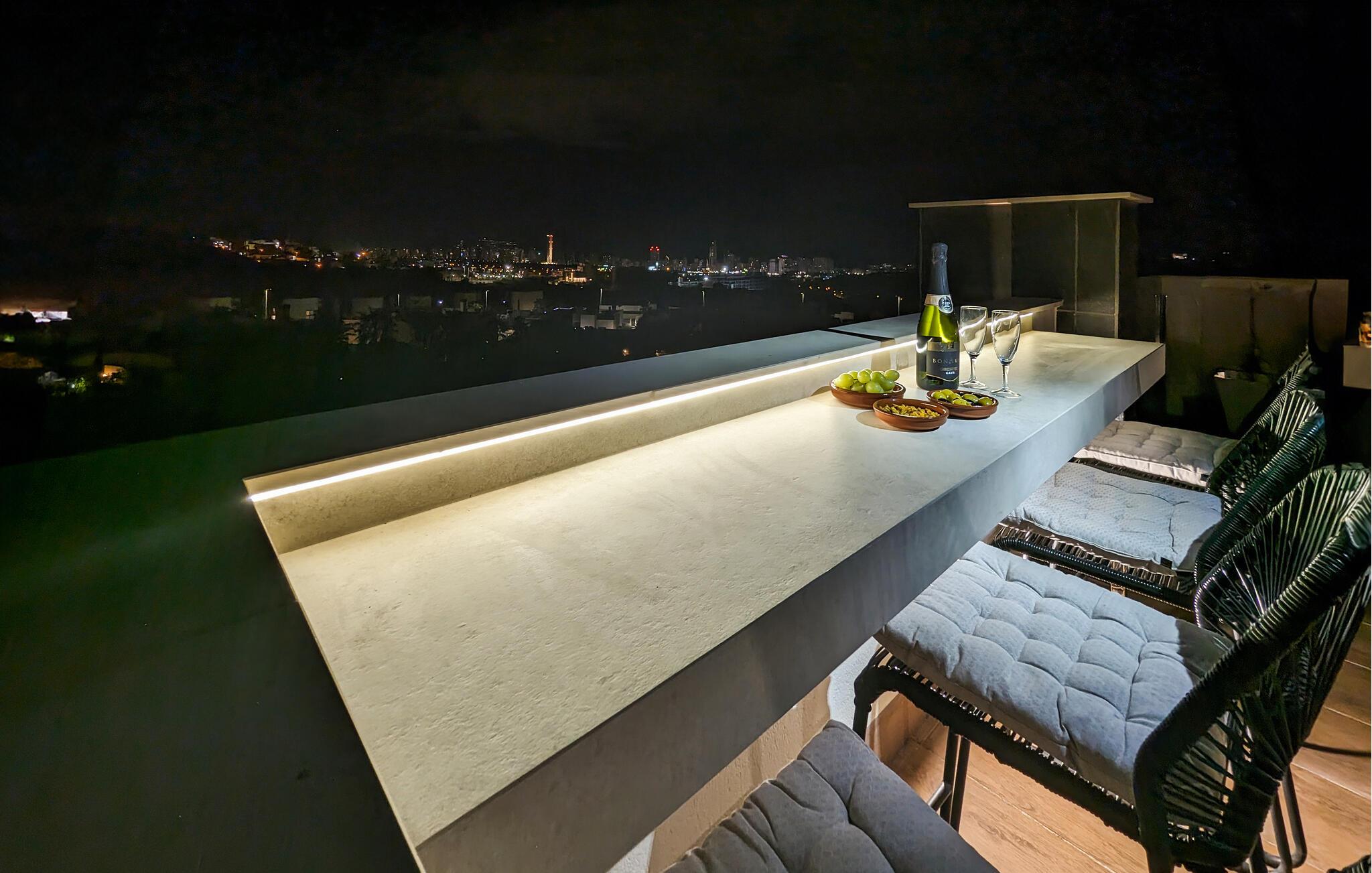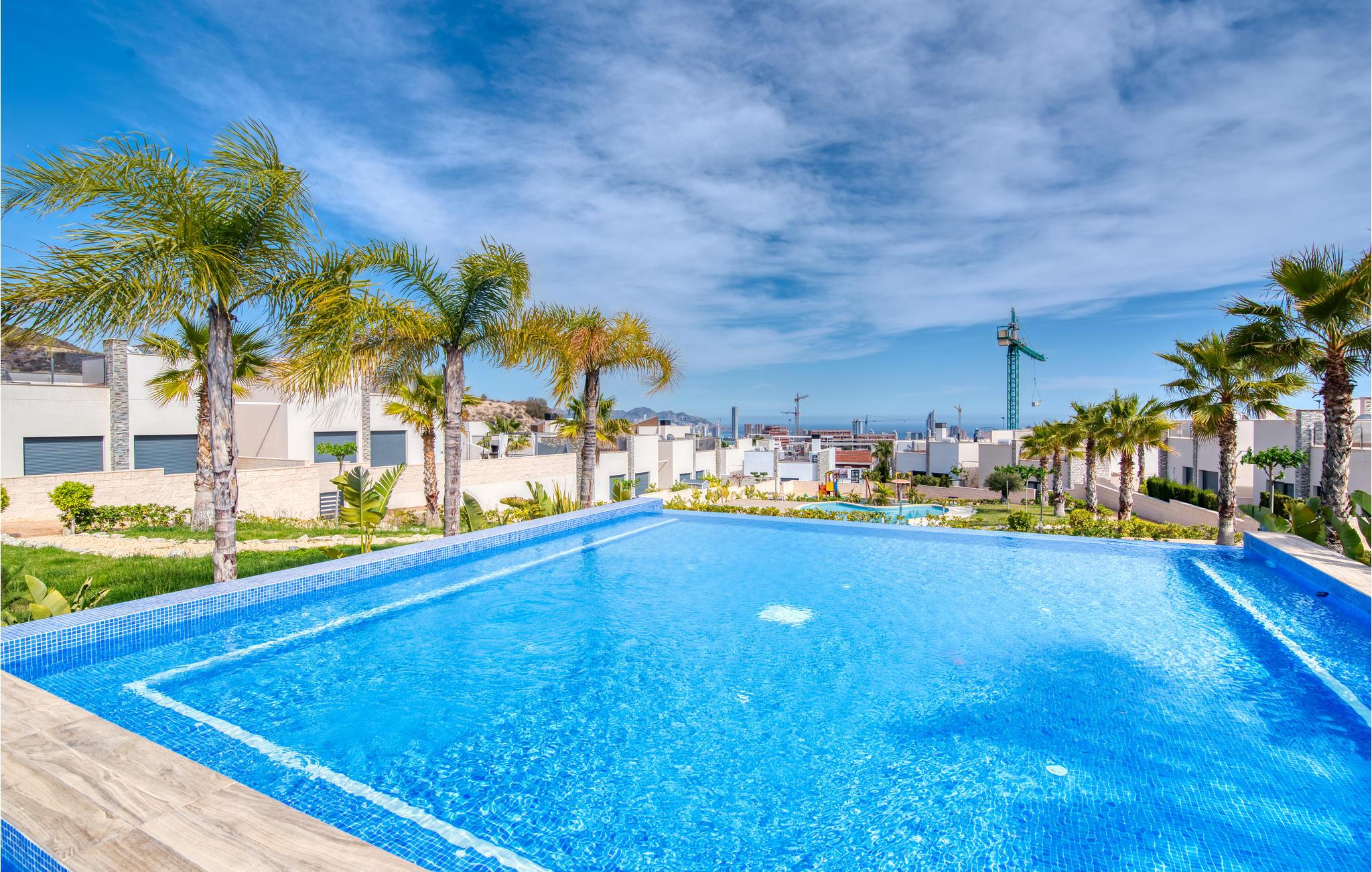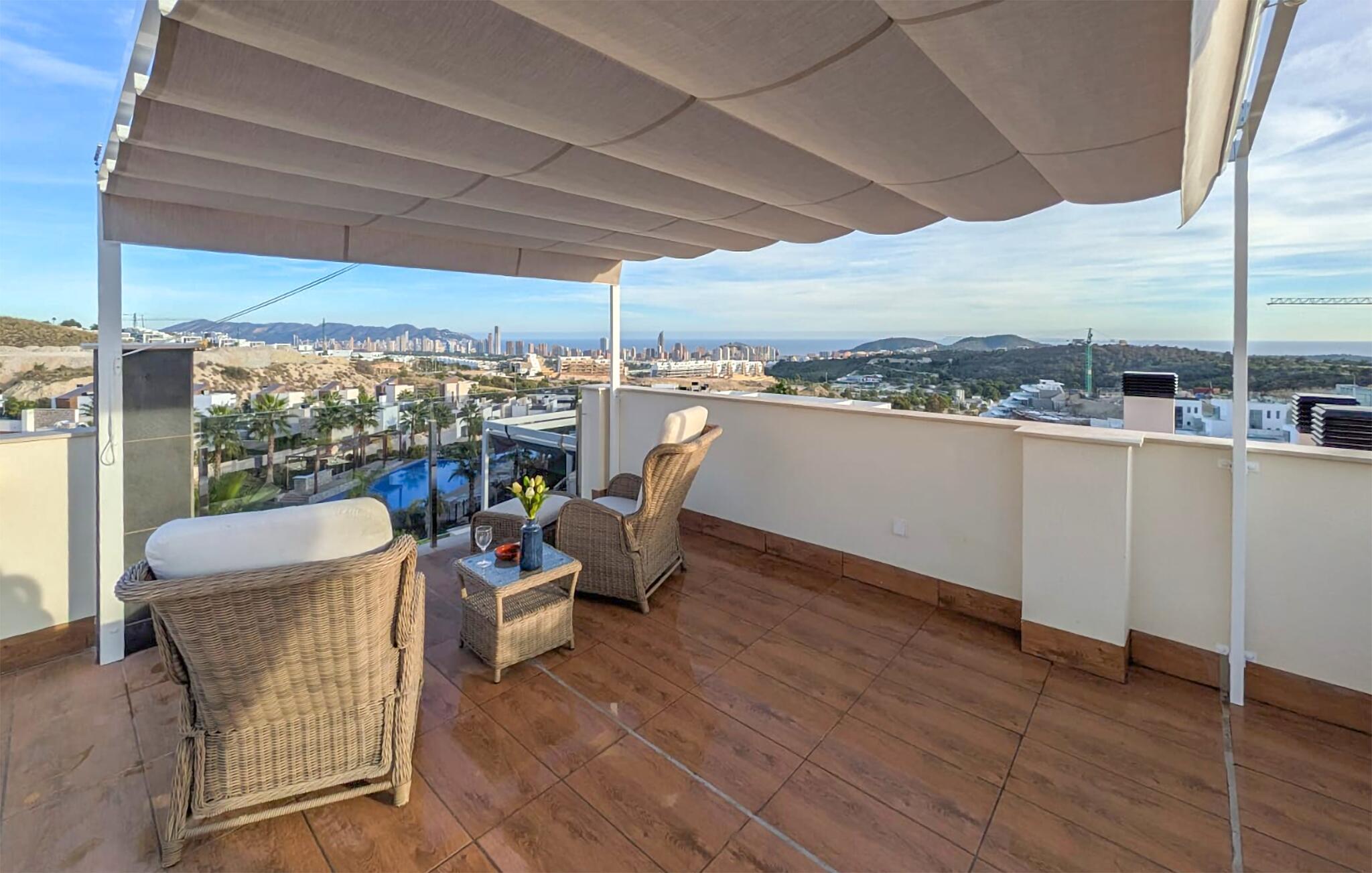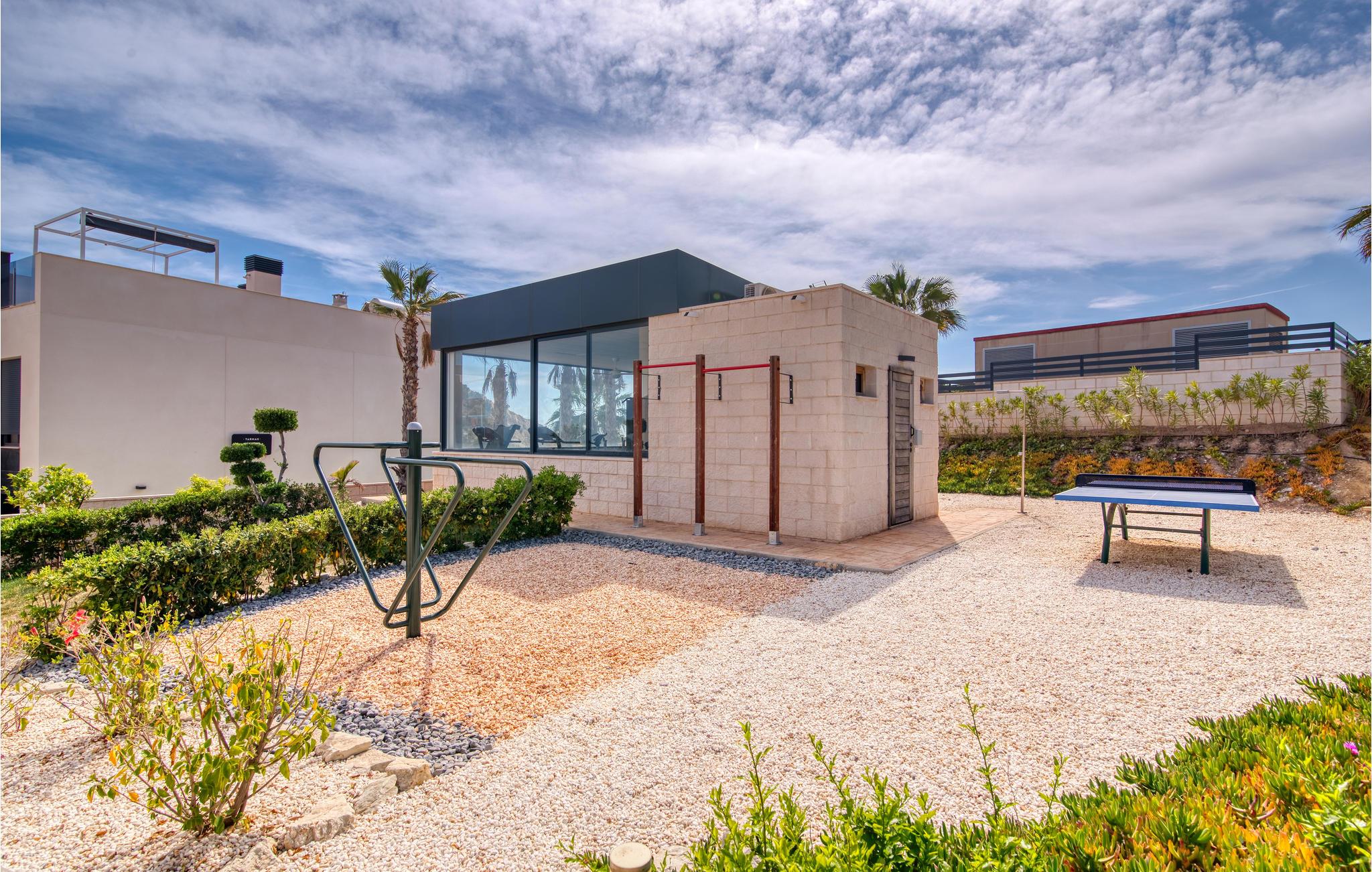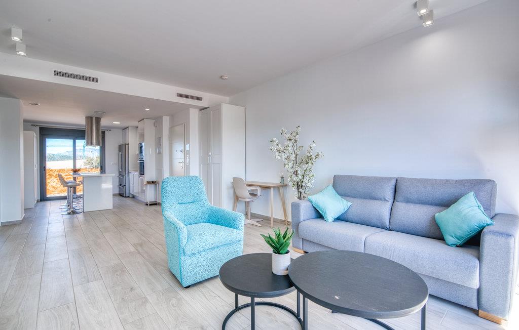 Den indbydende lejlighed er det optimale sted for en afslappende pause med de bedste underholdningsmuligheder i nærheden, herunder golfbanen, som I kan nå til fods. I vil føle jer hjemme, så snart I træder ind i de lyse lokaler. Her er luft og lys allestedsnærværende, og den moderne og komfortable indretning runder oplevelsen af. Så snart I vågner kan I nyde et fantastisk panorama. Planlæg jeres dags udflugter og aktiviteter over morgenmad med en vidunderlig udsigt, eller slap af ved den fællespool. Nyd solen i fulde drag på terrassen, herfra kan I se havet, forfriske jer i poolen og lade hverdagen ligge. Om aftenen kan I slappe af på tagterrassen og tilberede nogle lækre retter på grillen.