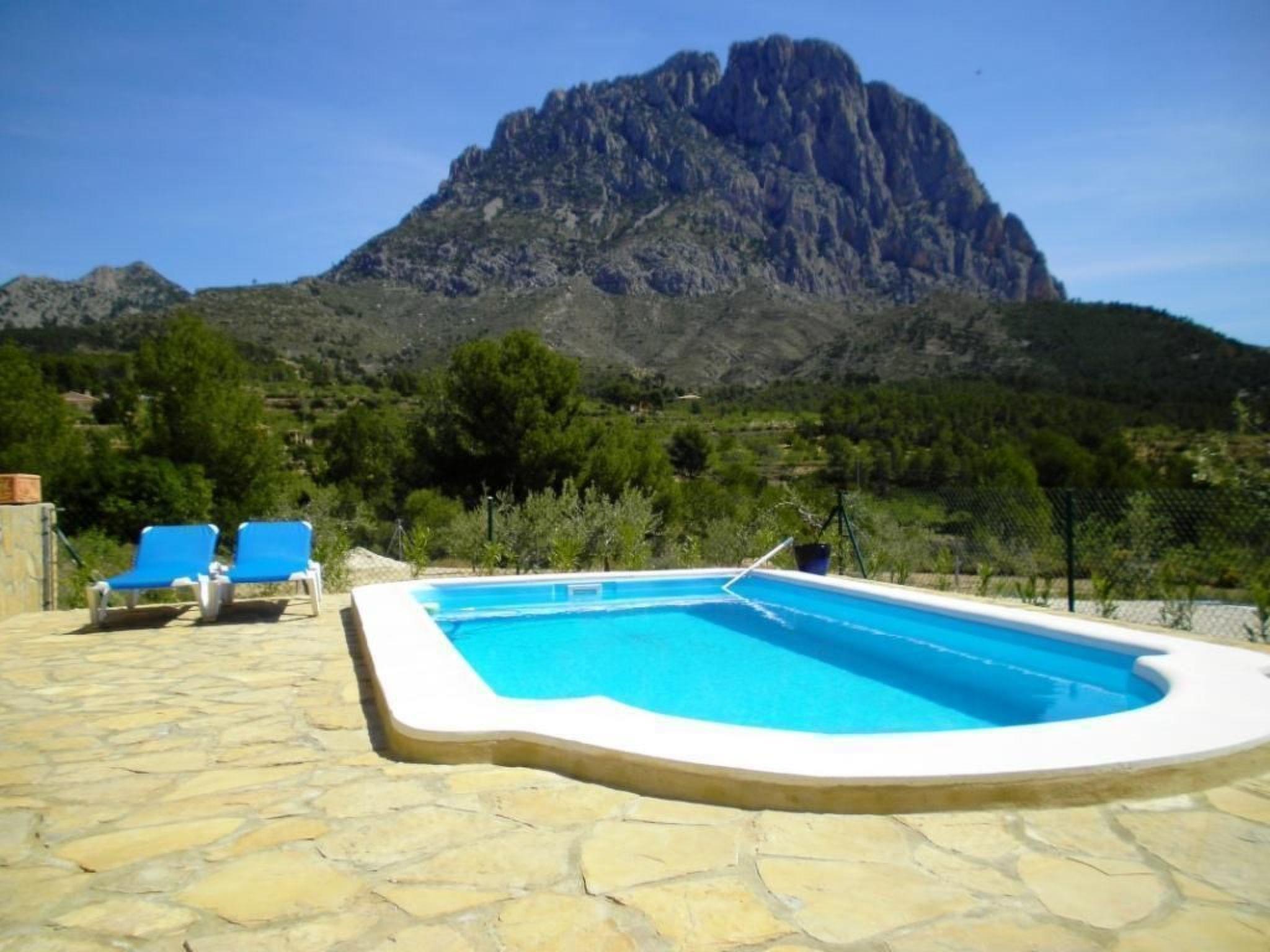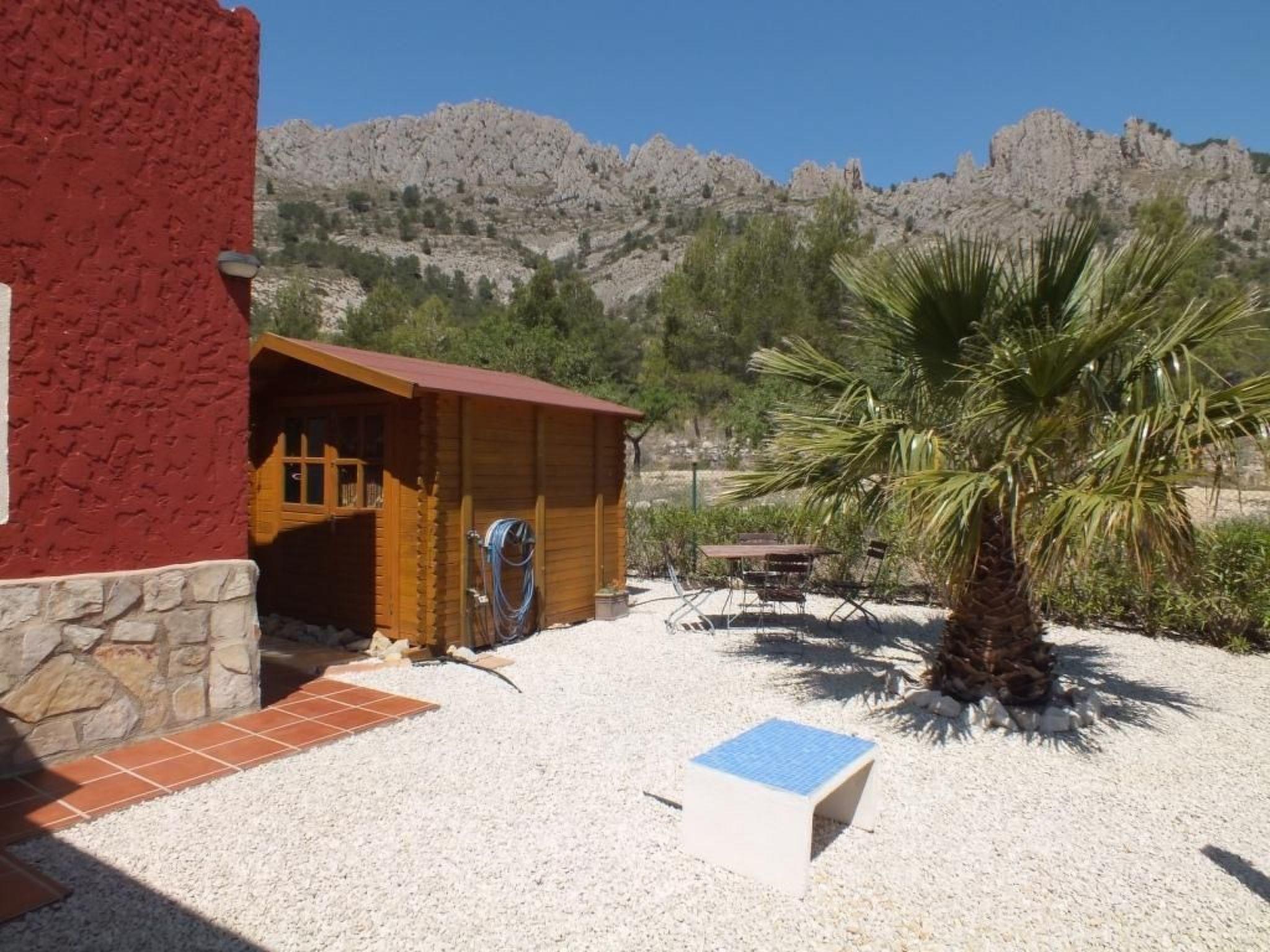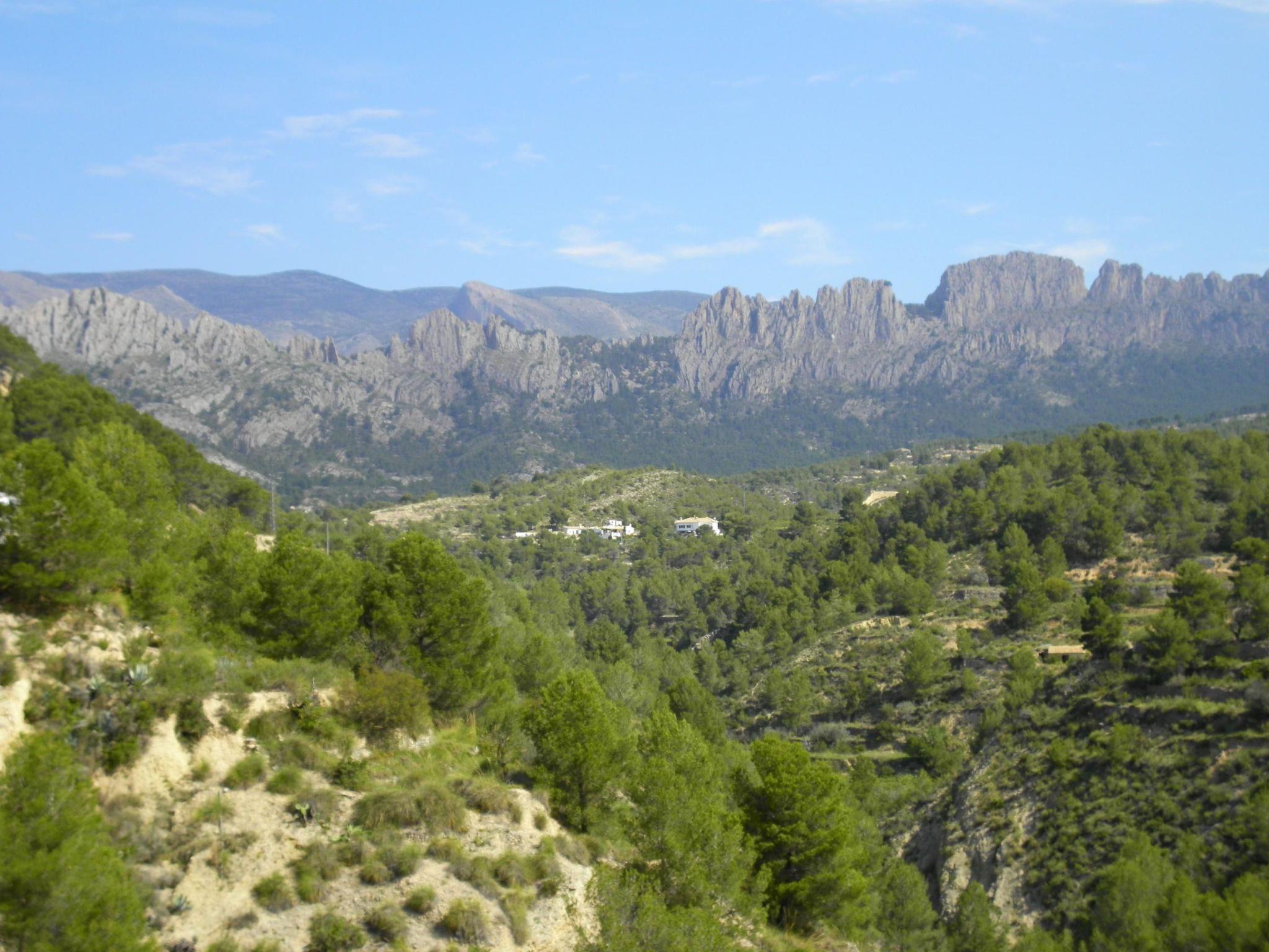 A place of peace and quiet, for relaxing or for various activities. Right on the doorstep you have a circular hiking trail of approx. 6.5 km, ideal for Nordic walking, jogging, cycling or simply going for a walk. In the immediate vicinity there are other routes for mountain biking or hiking trails of varying difficulty and length. 1.5 to 6 hours which also go up to the summit of Puig Campana at 1408m, from where you can enjoy a fantastic panoramic view, on a clear day as far as Ibiza, and there are also various opportunities for cliff climbing. The distance to the beach is approx. 12 km, to the village approx. 5 km.