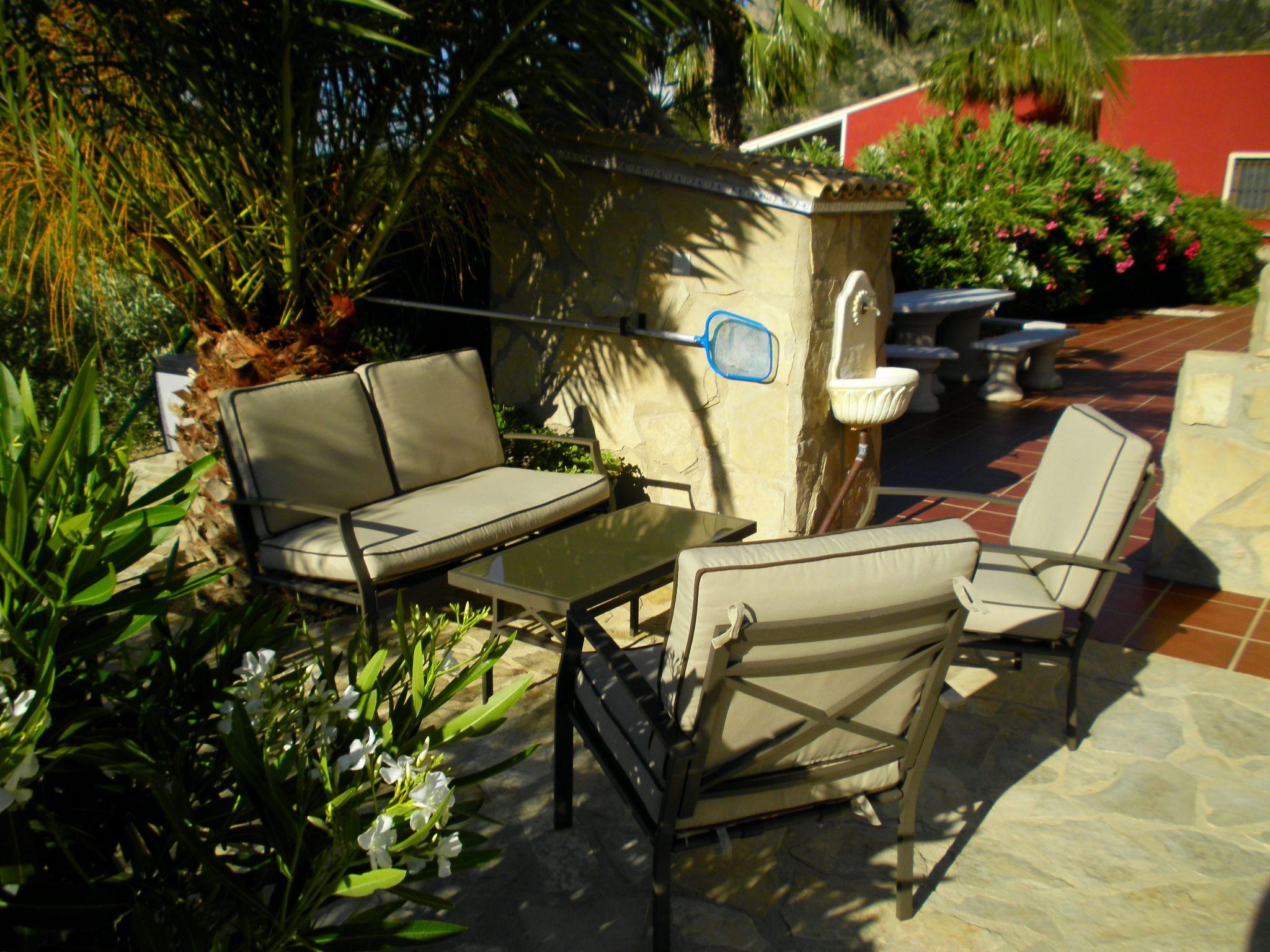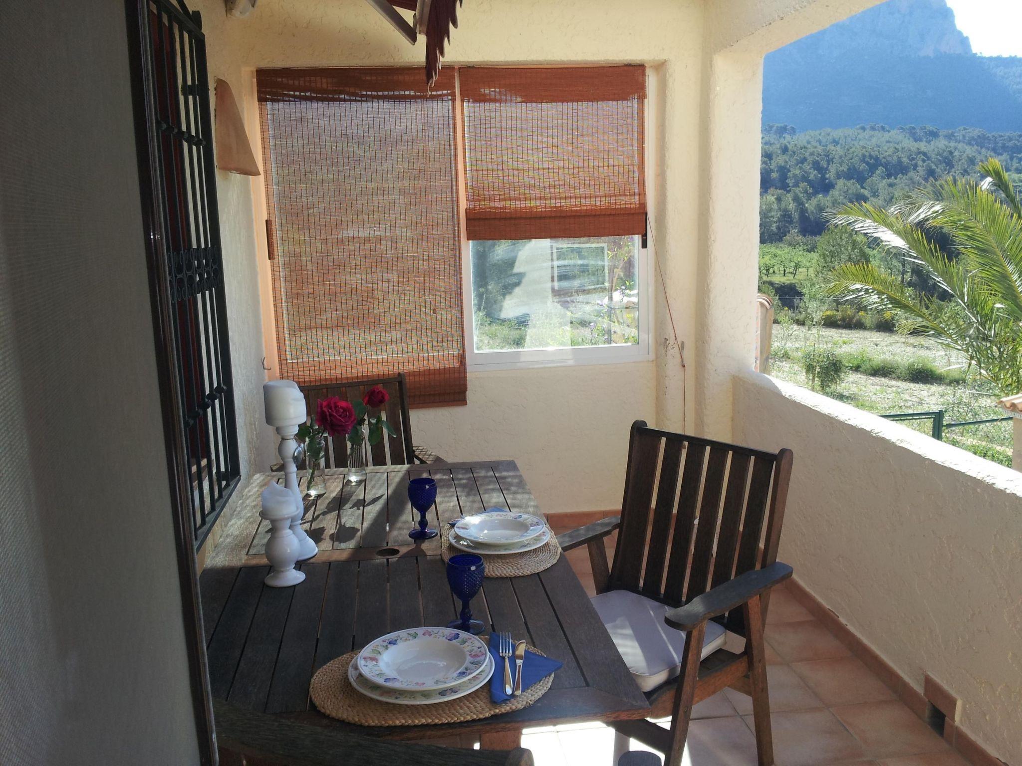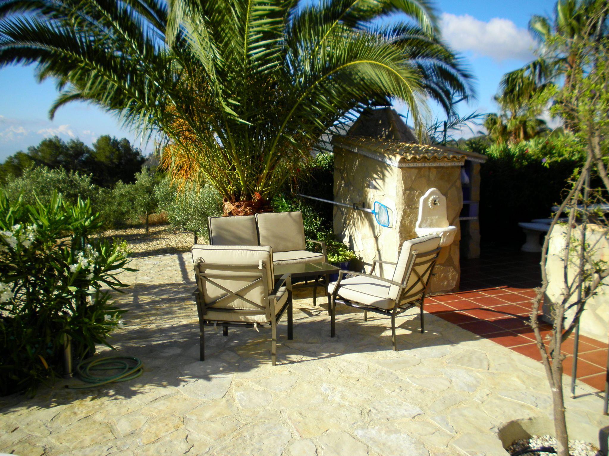A place of peace and quiet, for relaxing or for various activities. Right on the doorstep you have a circular hiking trail of approx. 6.5 km, ideal for Nordic walking, jogging, cycling or simply going for a walk. In the immediate vicinity there are other routes for mountain biking or hiking trails of varying difficulty and length. 1.5 to 6 hours which also go up to the summit of Puig Campana at 1408m, from where you can enjoy a fantastic panoramic view, on a clear day as far as Ibiza, and there are also various opportunities for cliff climbing. The distance to the beach is approx. 12 km, to the village approx. 5 km.