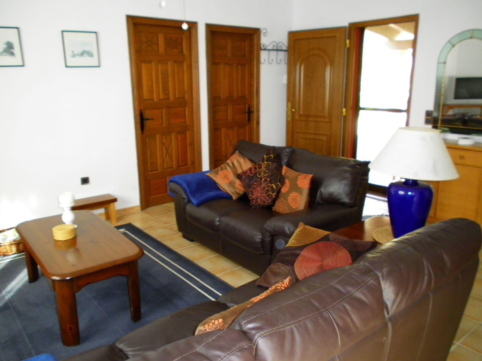 The house has a living area of approx. 70 square metres and consists of two bedrooms (one with a double bed and one with two single beds), a living room with satellite TV and radio as well as WLAN Internet, a fully equipped kitchen with dishwasher, washing machine, coffee machine, toaster, microwave, kettle, 4-ring hob, oven, fridge, freezer, hoover, etc., as well as a bathroom with a spacious shower. Air conditioning is available in the master bedroom and the living room, fans are available in all rooms. The house is completely non-smoking, both indoors and outdoors!