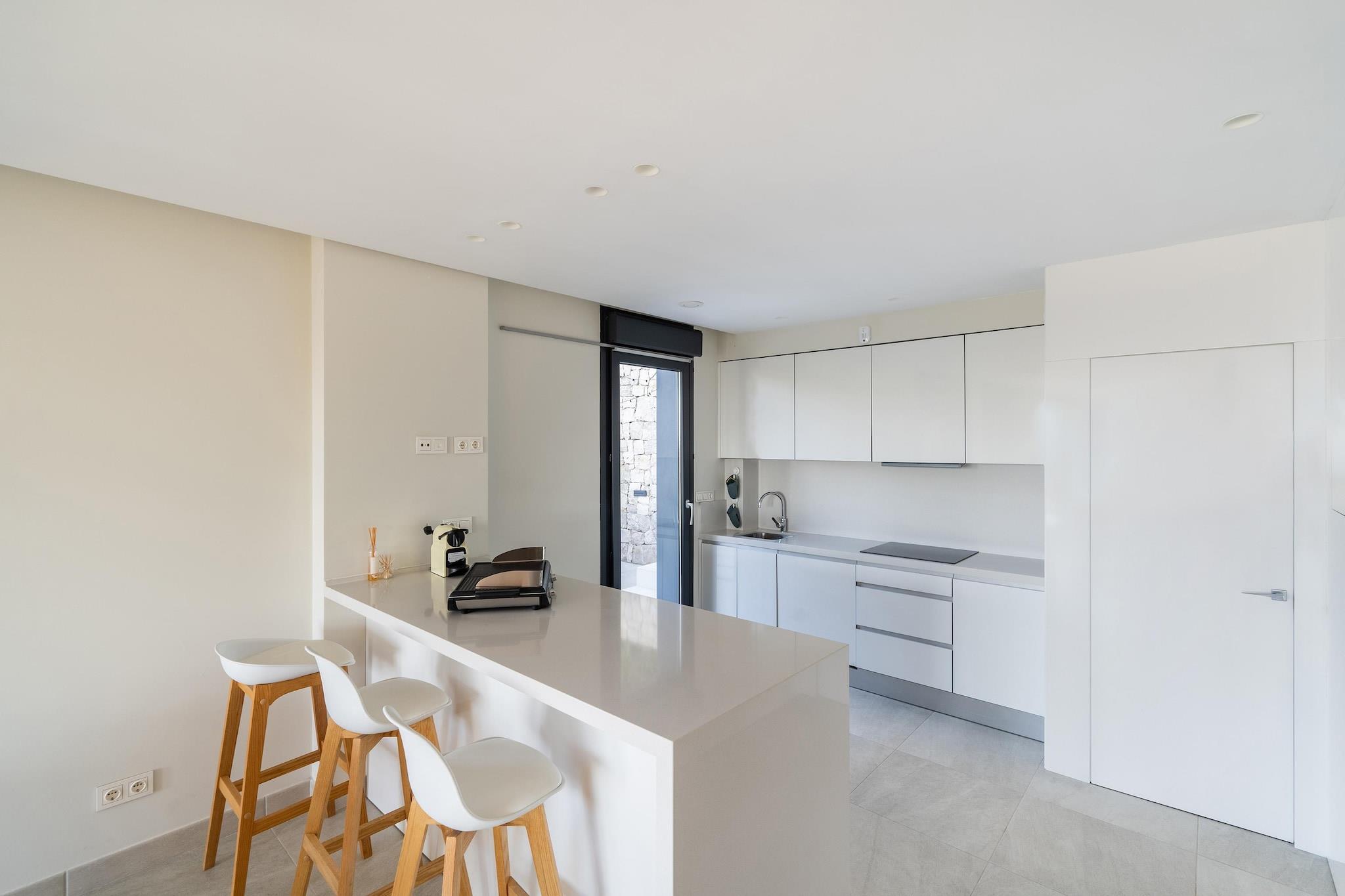 Denne smukke villa er udstyret med en masse luksus, hvilket fremgår af en dejlig privat swimmingpool og en smukt møbleret have. Det kan komfortabelt rumme familier og venner.Entusiaster kan spille golf på Puig Campana Golf, 5 km væk. Du kan nyde gåture i den smukke region, for eksempel langs Font del Molí-ruten, og en dag på stranden i det travle Benidorm (7 km) er også muligt. Benidorms centrum byder på masser af rekreation, hyggelige barer/caféer og gode restauranter til en hyggelig aften i. Huset har et moderne interiør og et udendørs område med hjemmehørende planter. Det tilbyder sine gæster en rolig beliggenhed og en høj grad af privatliv. Slap af med en god bog på terrassen og tilbered lækre måltider i det indendørs eller udendørs køkken. Det er ikke en selvstændig villa, men ligger i forlængelse af nabovillaen.