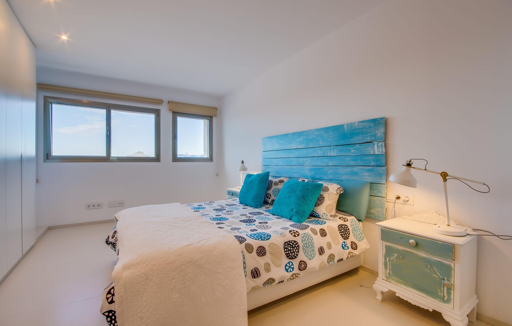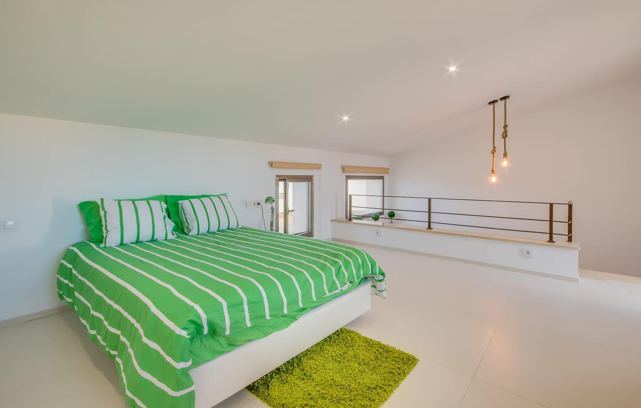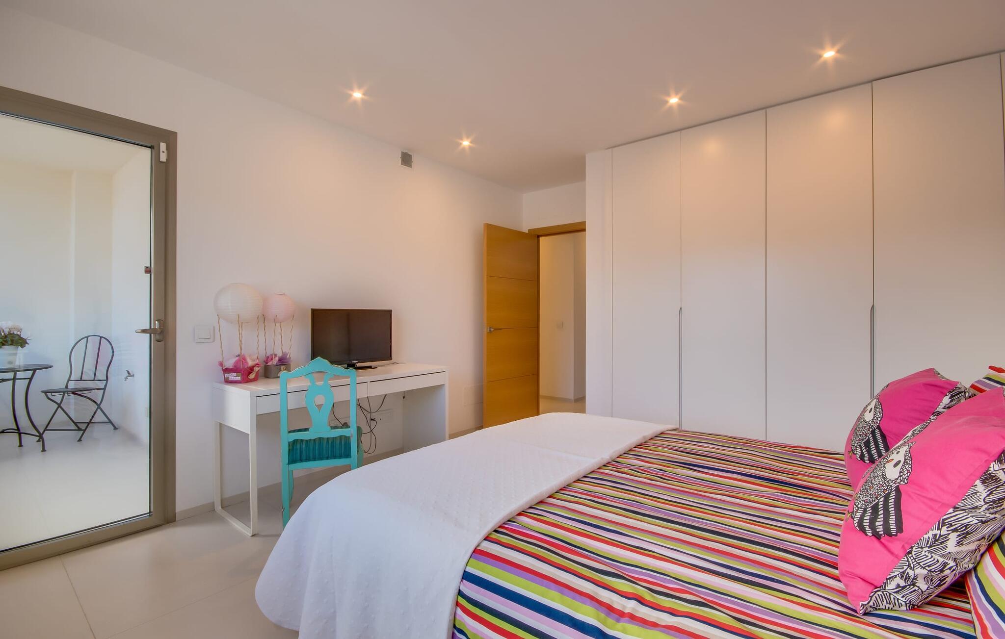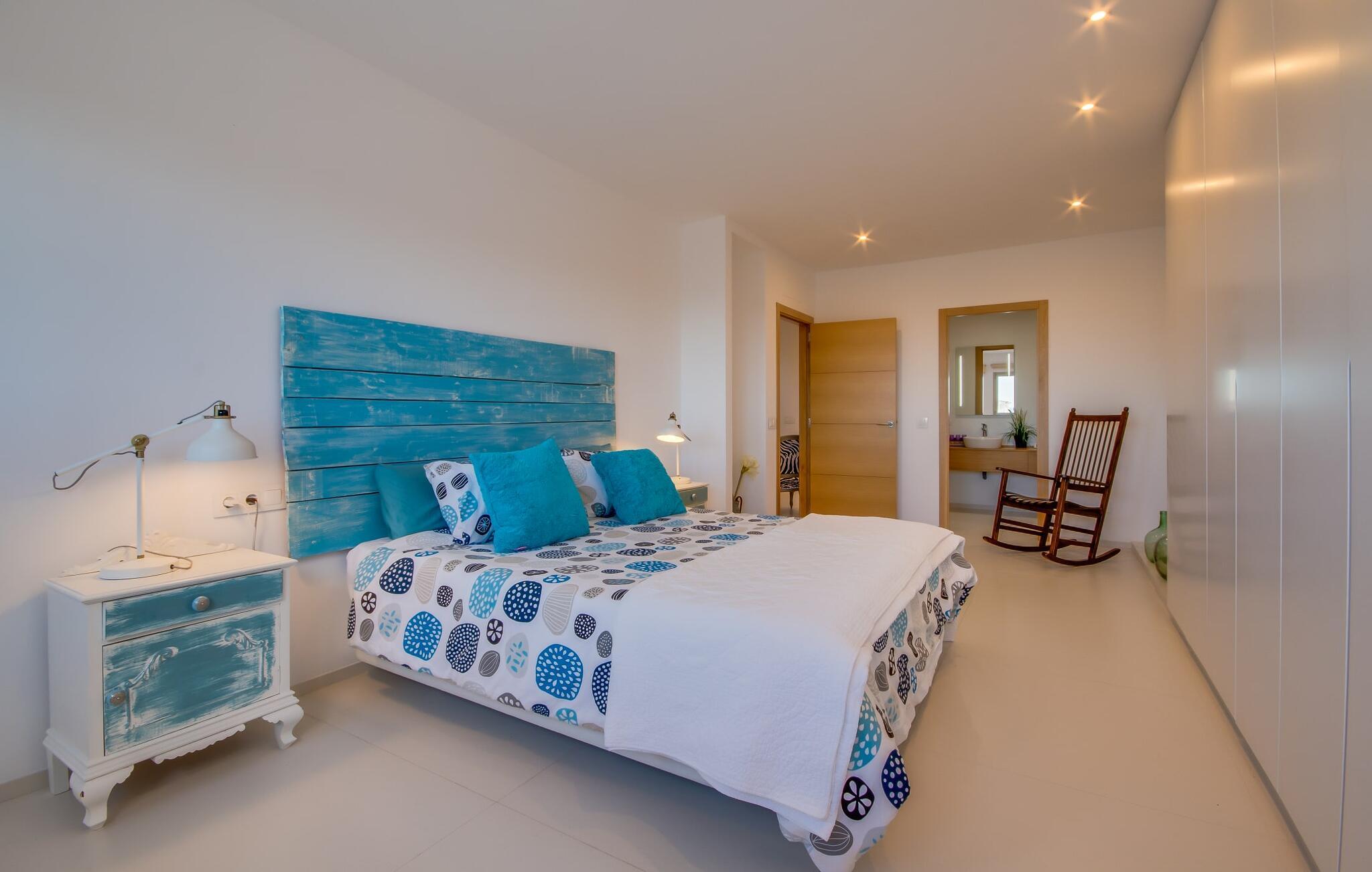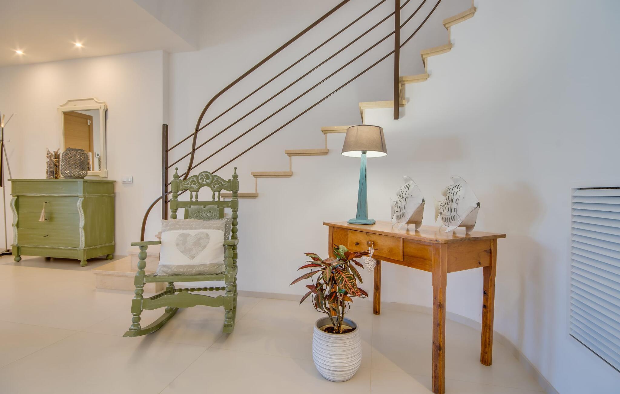 Kunne I tænke jer at holde ferie på Mallorca, men er hverken begejstret for hoteller eller det rolige landliv i en afsondret villa? Så har vi det helt rigtige midlertidige hjem til jer med det smukke rækkehus "Foners Mallorquins"! Dette lyse og hvide drømmehus ligger midt i den rustikke, charmerende landsby Muro på den nordlige del af Mallorca. Efter at have kørt fra lufthavnen kan I parkere jeres lejebil direkte på gaden ved huset og derefter fordybe jer i øens autentiske stress og jag. Det velholdte rækkehus er ikke kun et perfekt udgangspunkt, men også et vidunderligt afslappende tilflugtssted. På terrassen, som er delvist overdækket med skyggefulde markiser, finder I spisebord og stole samt indbydende liggestole. Perfekt til solbadning, men også til at finde et behageligt skyggefuldt sted at læse en god bog. I kan til enhver tid tage en forfriskende svømmetur i jeres afsondrede pool, skjult for naboernes udsigt og indrammet af en stilfuld brolagt terrasse med et puristisk design og rustik naturstensvæg, udendørs bruser og kærligt dekoreret plantebed. "Foners Mallorquins" er også en sand perle indefra. Takket være de store vinduespartier og det moderne lyssystem med mange små, integrerede loftslamper er alt lyst på alle tider af døgnet Den meget muntre, velholdte og stilrene atmosfære er blandt andet takket være den hyggelige interiør, som er præget af et design med stor kærlighed til detaljer og en særlig flair. Stueetagen er meget åben: Store glasdøre fører fra terrassen direkte ind i det stilfulde køkken, som er udstyret med førsteklasses hårde hvidevarer. Køkkenet har et stort spisebord og mange siddemuligheder. Om morgenen kan I få en afslappet morgenmad; Senere på dagen kan I tilberede kulinariske lækkerier til en udendørs middelhavsmiddag på terrassen. I kan også nyde jeres middag sammen i husets tilstødende opholds- og spiseområde. Der finder I endnu et stort bord med smukke kurvestole med et naturligt look - til at nyde overdådige måltider og udveksle gode historier. Blot et par skridt videre indbyder en lys hvid hyggelig sofa med talrige puder og tæpper jer til at tilbringe en hyggelig aften med at se tv. I finder også et smart badeværelse i stueetagen af "Foners Mallorquins". Når I er behageligt træt efter en lang, solrig dag, kan I bare gå forbi den smukke limegrønne vippe og op ad den elegante stentrappe. Soveværelserne er placeret i to etager og har en kærlig, individuel indretning - i hvidt, med farverige detaljer, der umiddelbart skaber en glad stemning. De smukke, delvist kunstfærdigt udskårne senge er et blikfang, og der er rummelige garderobeskabe i alle rum til jeres feriegarderobe. Det ene soveværelse, uden dør, er skjult på 3. sal i huset og kan nås direkte via trappen, mens de to andre soveværelser - hvoraf det ene har direkte udgang til en hyggelig lille altan - er i en sal med to soveværelser og meget moderne badeværelser med bruser i gulvniveau. "Foners Mallorquins" er et lysfyldt rækkehus midt i den rustikke landsby Muro på den nordlige del af øen - og tilbyder en masse privatliv. Takket være den centrale beliggenhed er alt i gåafstand - uanset om I vil shoppe eller besøge en af restauranterne. Men så snart I lukker jeres hoveddør, befinder I jer i jeres eget lille stykke paradis. I den private, afsondrede pool kan I forfriske jer i vidunderlig fred og ro, mens strande som C'an Picafort eller Alcúdia-bugten kun ligger omkring 14 km væk.