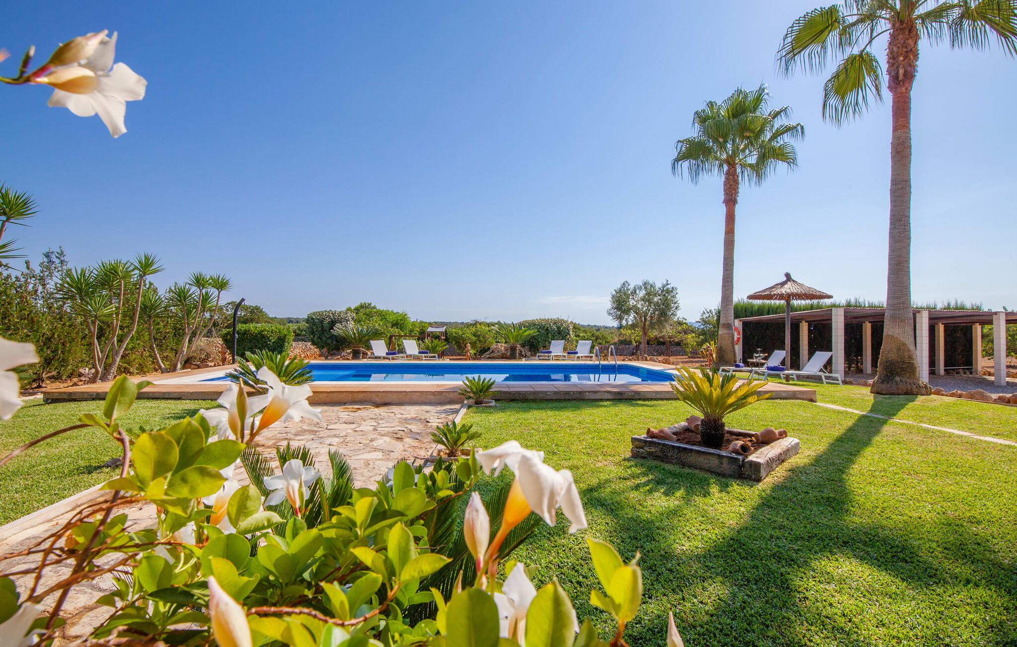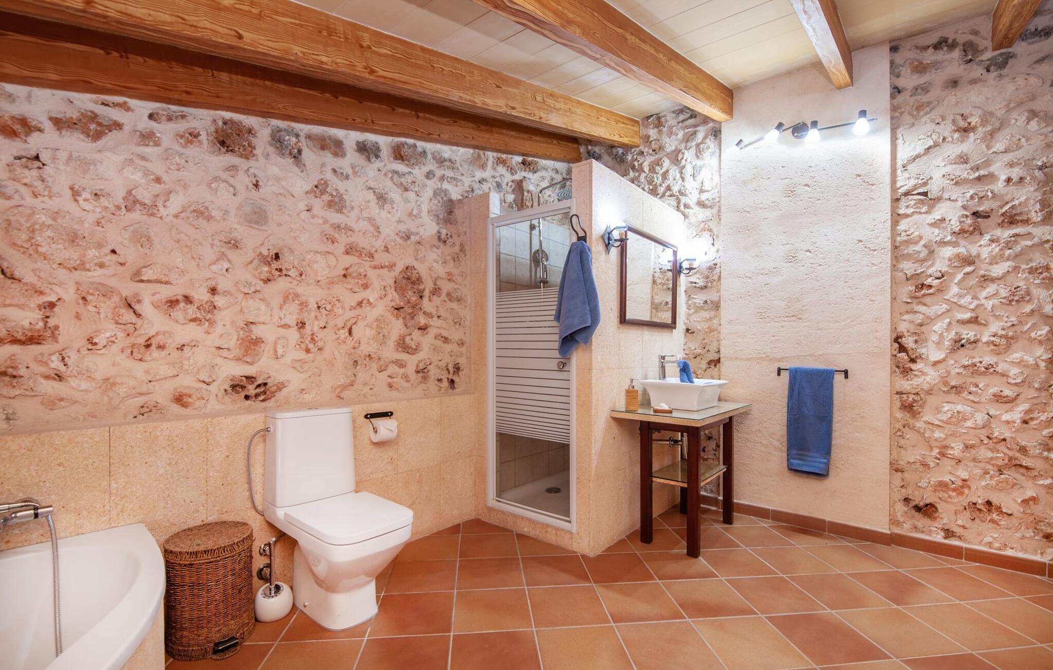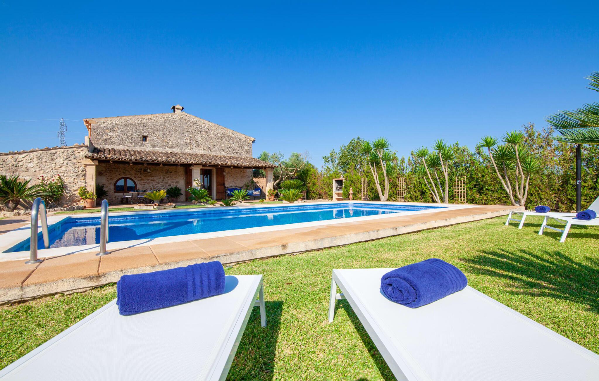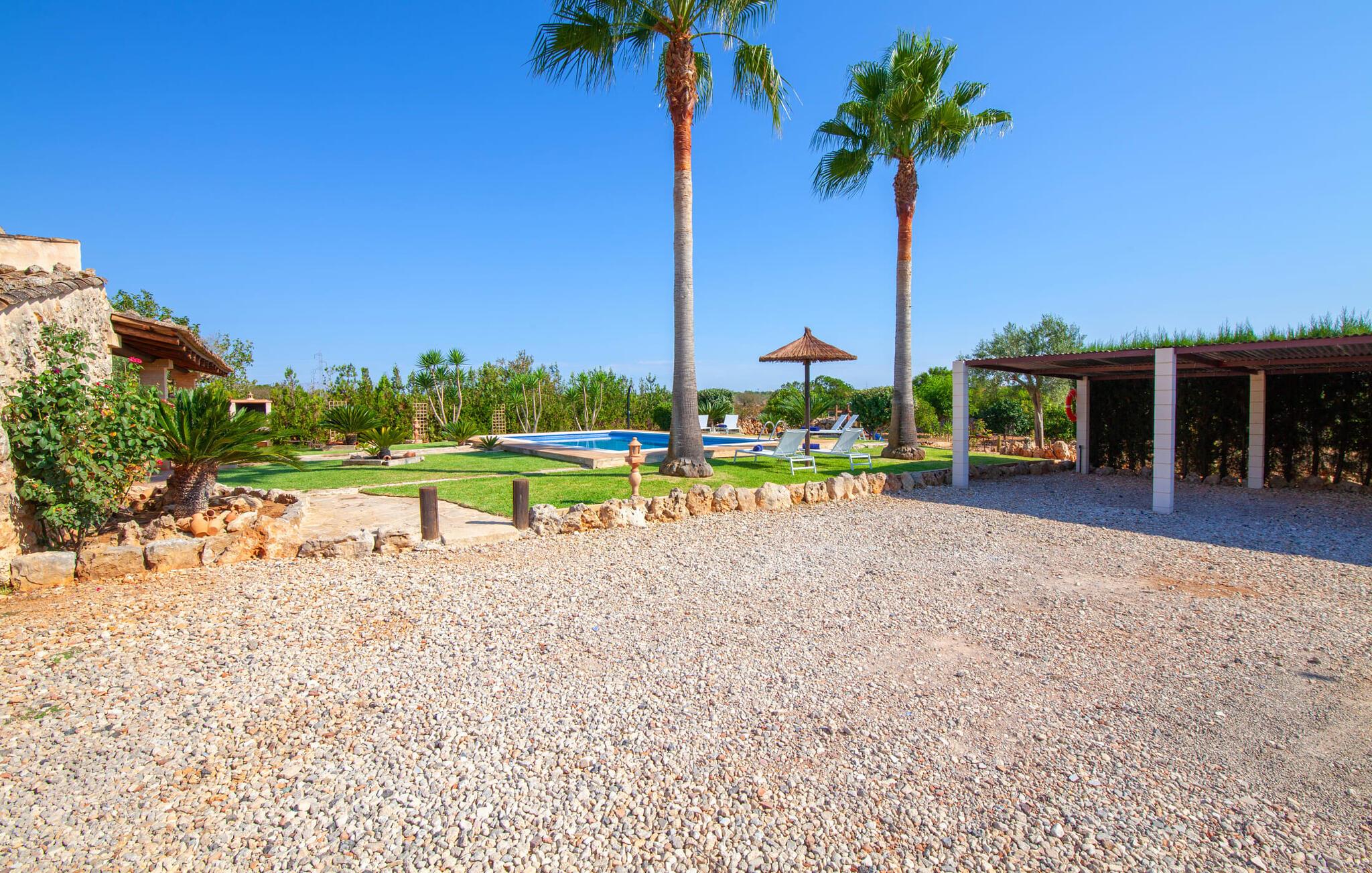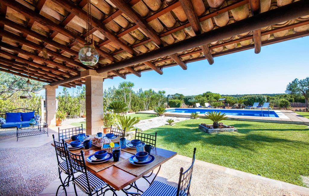 Fincaen "Fonoll", indlejret i et betagende landskab, var engang en landlig ejendom, der har bevaret sin traditionelle middelhavskarakter den dag i dag. Den rummelige private pool og legepladsen lover en uforglemmelig familieferie, mens den velholdte have, dekoreret med en række middelhavsplanter og høje palmer, skaber en attraktiv og æstetisk atmosfære. I kan nyde hyggelige aftener på den overdækkede terrasse, mens den murede grill og det fuldt udstyrede udekøkken gør udelivet til en skøn oplevelse. Det gennemtænkte udformede udendørs opholdsområde er et dejligt sted at slappe af og nyde omgivelserne. Indvendigt sikrer historiske detaljer som naturstensmurværk og dekorative buer en autentisk booplevelse. Træbjælkelofterne afspejler traditionel mallorcansk arkitektur. Fincaen imponerer med sit charmerende interiør, som kunstfærdigt kombinerer antikviteter, klassiske møbler og moderne elementer for at skabe en unik atmosfære. I stueetagen finder I indgangspartiet, en stue, der åbner ud til spisepladsen, samt køkkenet (en pejs giver hyggelig varme på køligere dage) og et badeværelse. På øverste etage er der tre stilfuldt indrettede dobbeltværelser - to med dobbeltsenge og et med to enkeltsenge - samt et ekstra badeværelse. Denne finca er det perfekte tilflugtssted for en uforglemmelig ferie. Den fantastiske finca "Fonoll" er roligt beliggende kun 10 minutter i bil fra den smukke sandstrand i Alcúdia. Den maleriske landsby Santa Margalida er kun omkring 3,5 km væk, hvor I også vil finde to supermarkeder til daglige behov og et ugentligt marked.