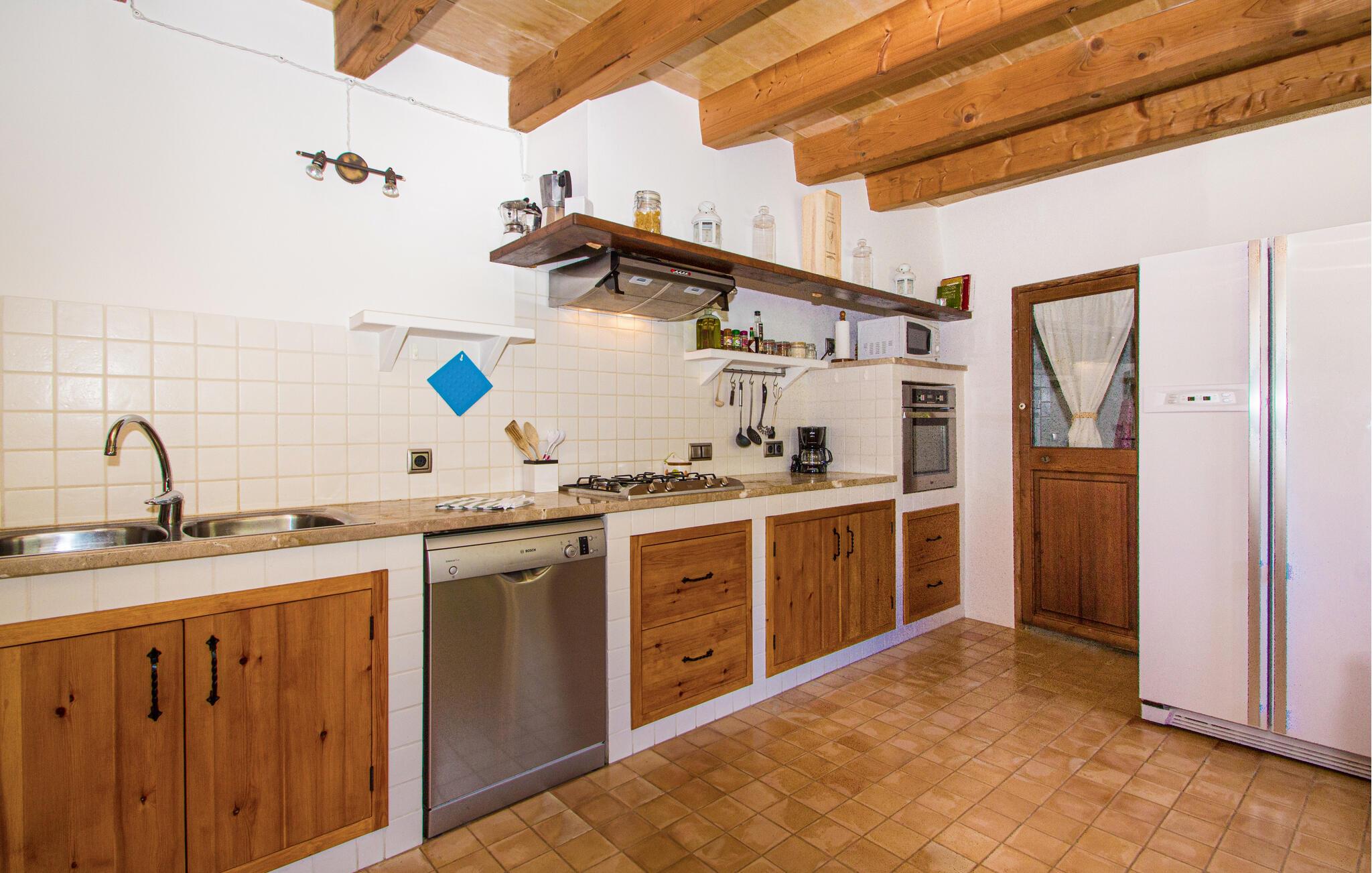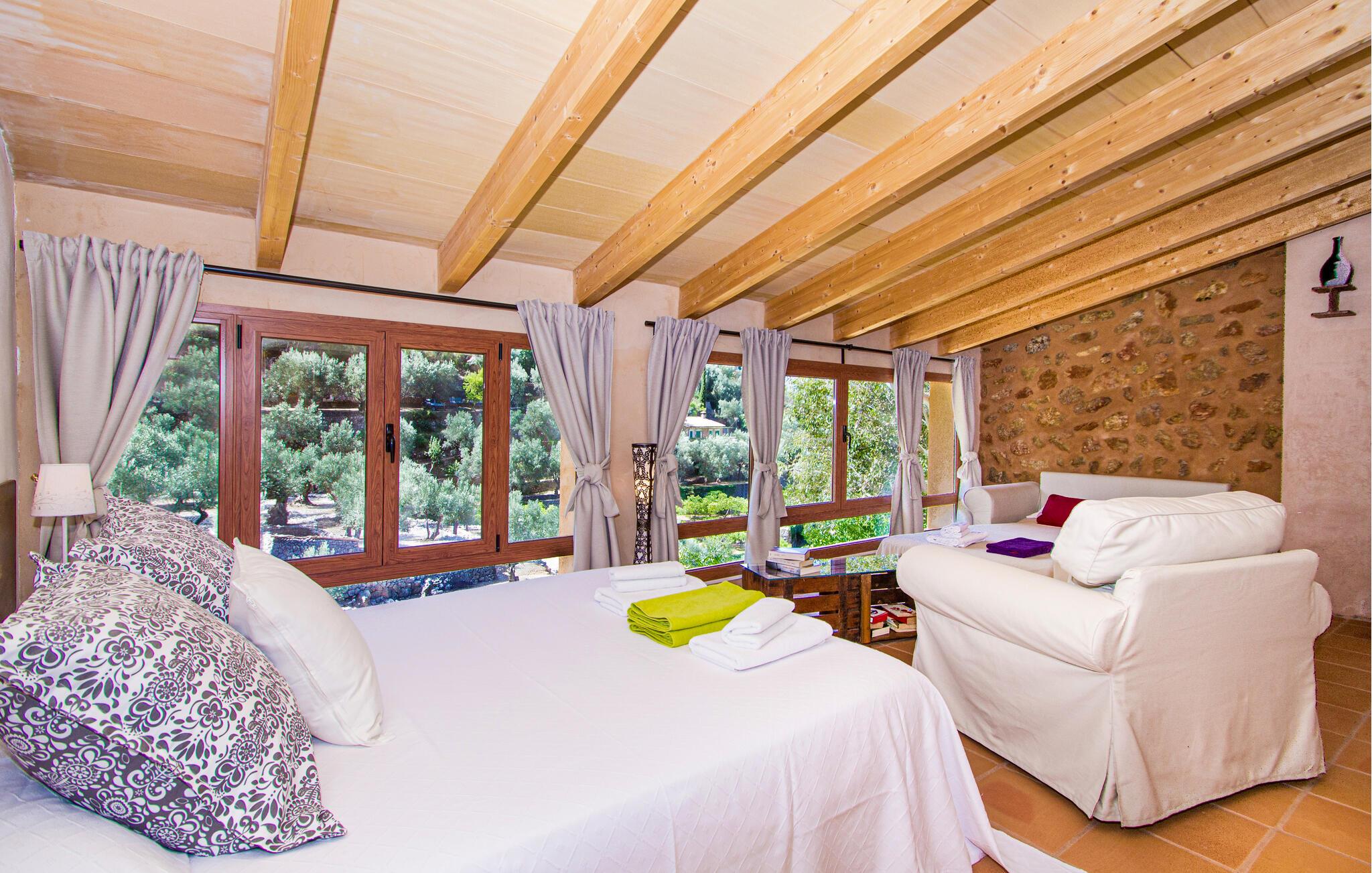 Dette smukt beliggende hus imponerer ikke kun med sin beliggenhed, men også med sin lyse og indbydende atmosfære. Træbjælker, rustikke møbler og gulv til loft-vinduerne skaber en atmosfære, der hurtigt vil sætte jer i ferietilstand. Lyt til god musik, snak over et glas vin eller prøv nye opskrifter sammen i køkkenet.