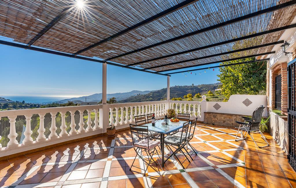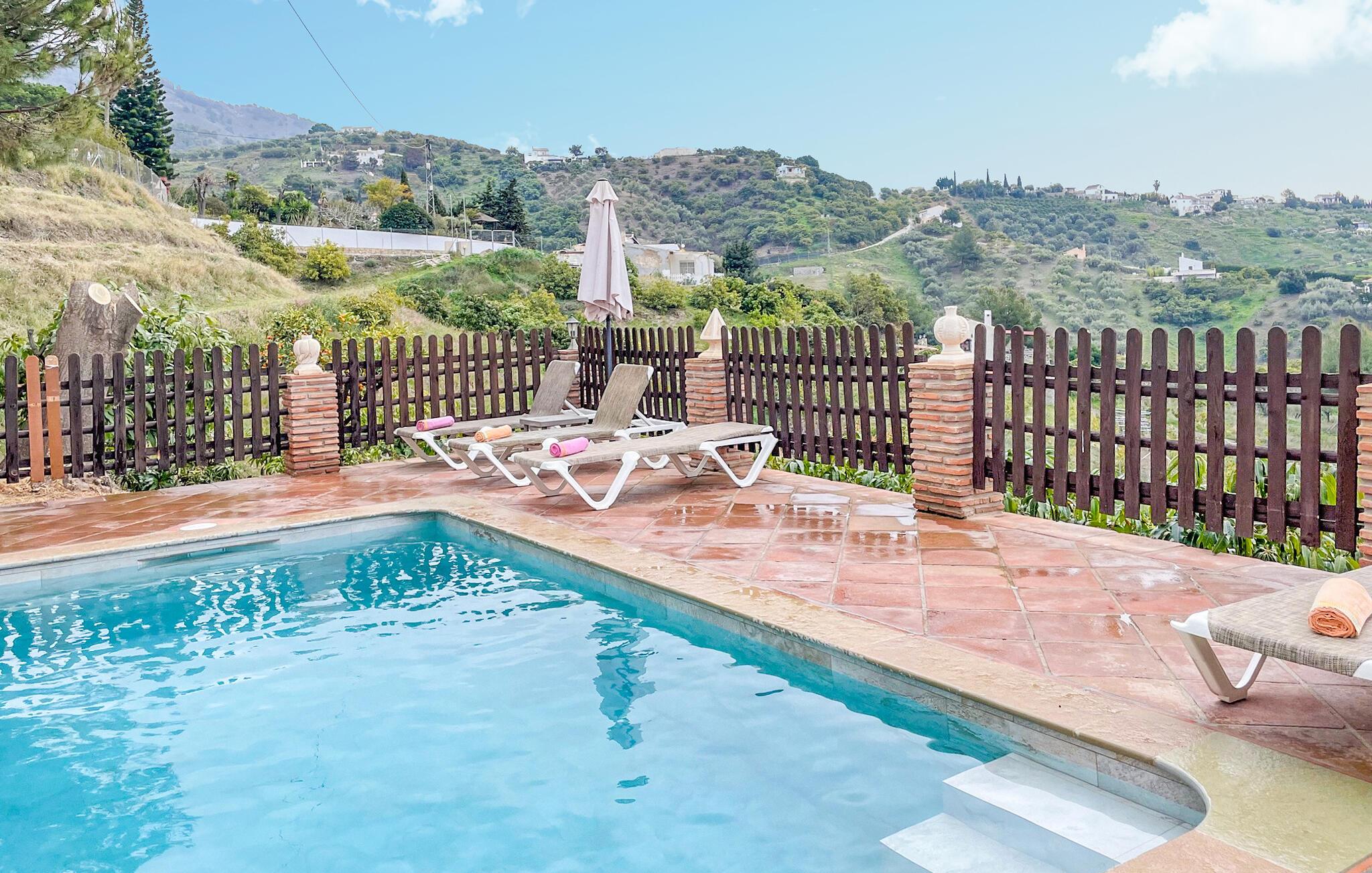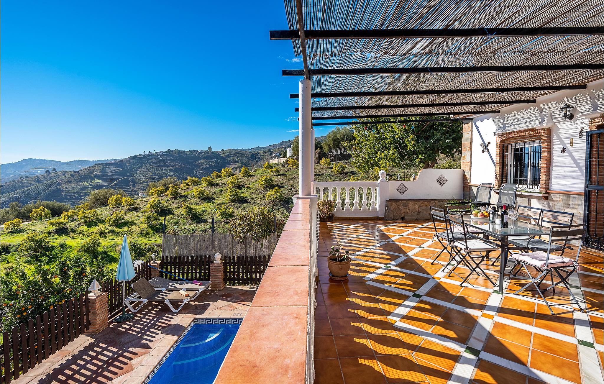 Omgivet af et drømmeskønt bjerglandskab med olivenlunde, ligger dette feriehus med privat pool i Frigiliana, som er en af de skønneste hvide byer i Axarquía. På terrassen, med udgang fra stuen, kan I nyde den pragtfuld udsigt og tage solbad, slappe af med en god bog og få snakket sammen i fred og ro. Lav mad på grillen og nyd resultatet i det fri og hop i den forfriskende pool, lige når I har lyst. Omgivelserne er ideelle til vandrere, da der er utallige vandrestier i omgivelserne. Der er kun seks km til Nerjas skønne sandstrande, som varmt kan anbefales. Der er adgang til huset er en 4,3 km lang og kurvet bjergvej, der ikke er oplyst. Huset kan også bruges i vinterhalvåret, da der er opvarmning af brændeovn og el.