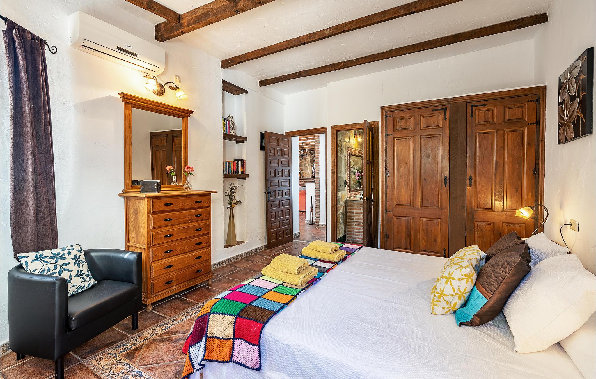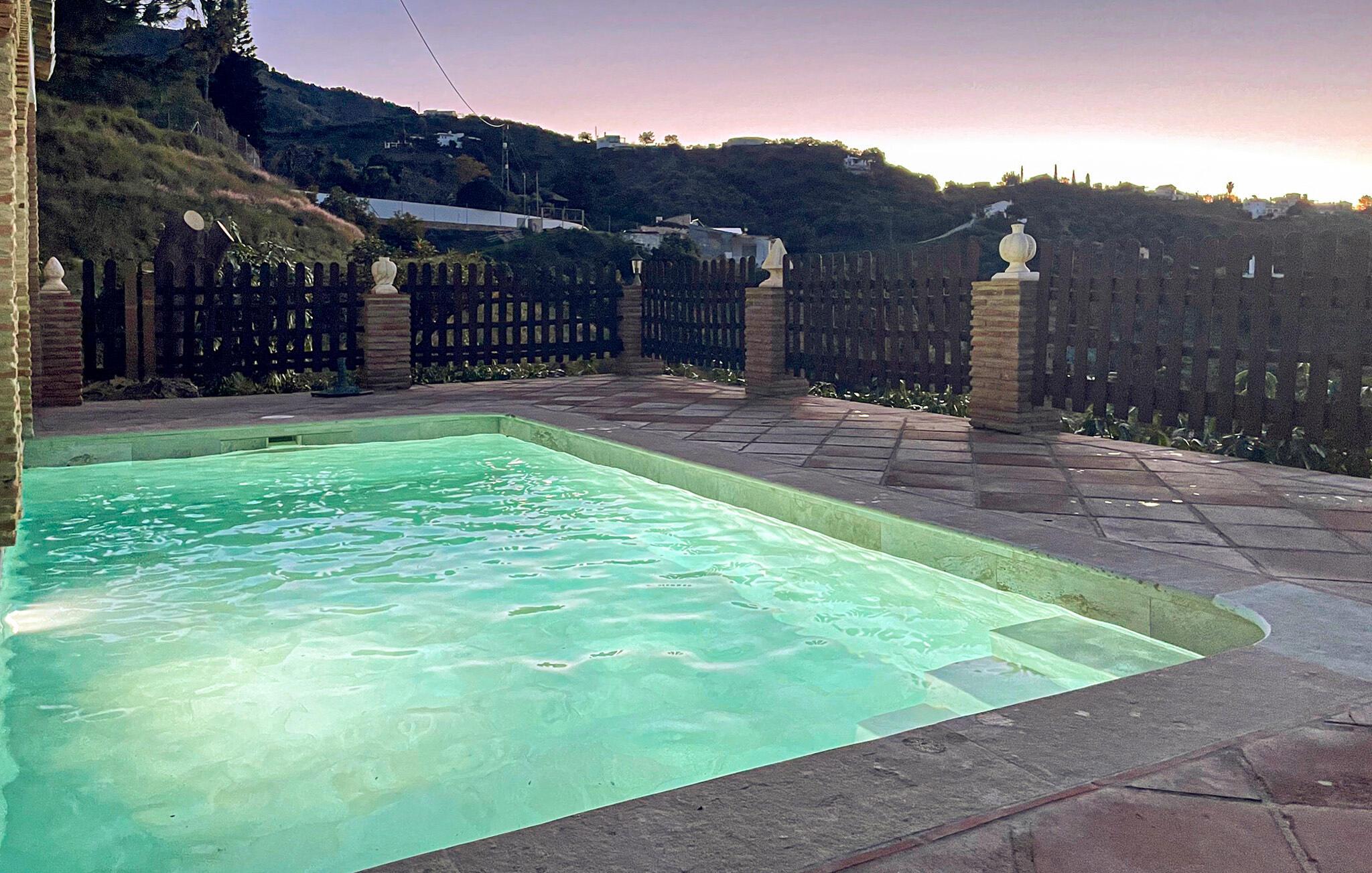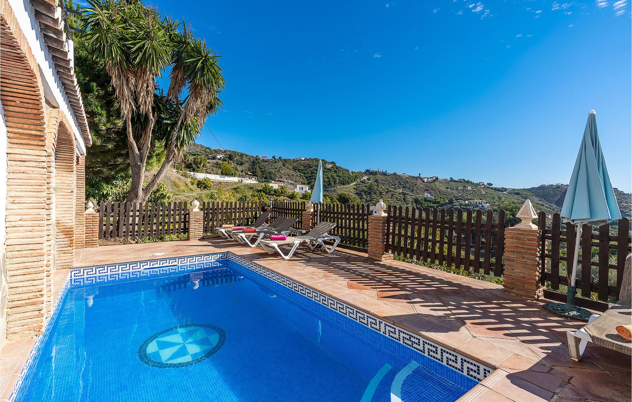 Omgivet af et drømmeskønt bjerglandskab med olivenlunde, ligger dette feriehus med privat pool i Frigiliana, som er en af de skønneste hvide byer i Axarquía. På terrassen, med udgang fra stuen, kan I nyde den pragtfuld udsigt og tage solbad, slappe af med en god bog og få snakket sammen i fred og ro. Lav mad på grillen og nyd resultatet i det fri og hop i den forfriskende pool, lige når I har lyst. Omgivelserne er ideelle til vandrere, da der er utallige vandrestier i omgivelserne. Der er kun seks km til Nerjas skønne sandstrande, som varmt kan anbefales. Der er adgang til huset er en 4,3 km lang og kurvet bjergvej, der ikke er oplyst. Huset kan også bruges i vinterhalvåret, da der er opvarmning af brændeovn og el.