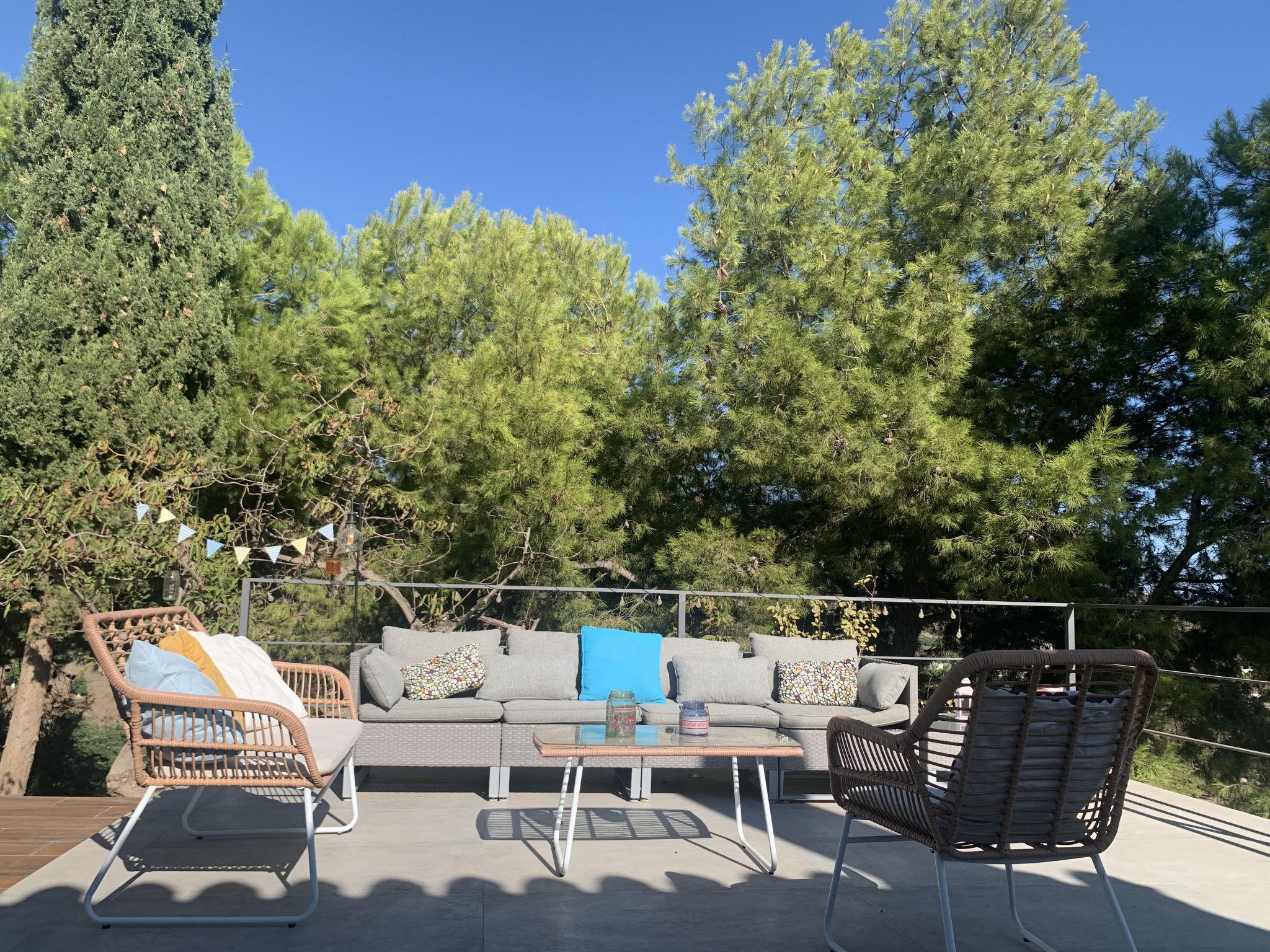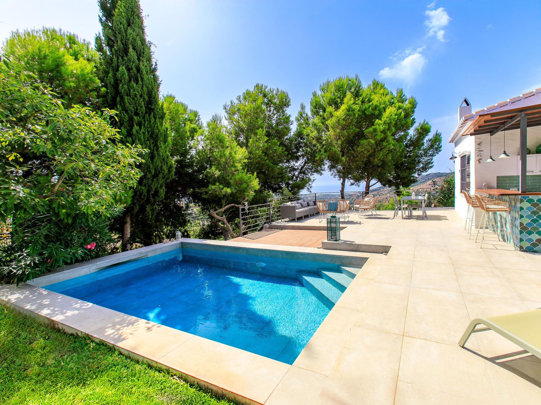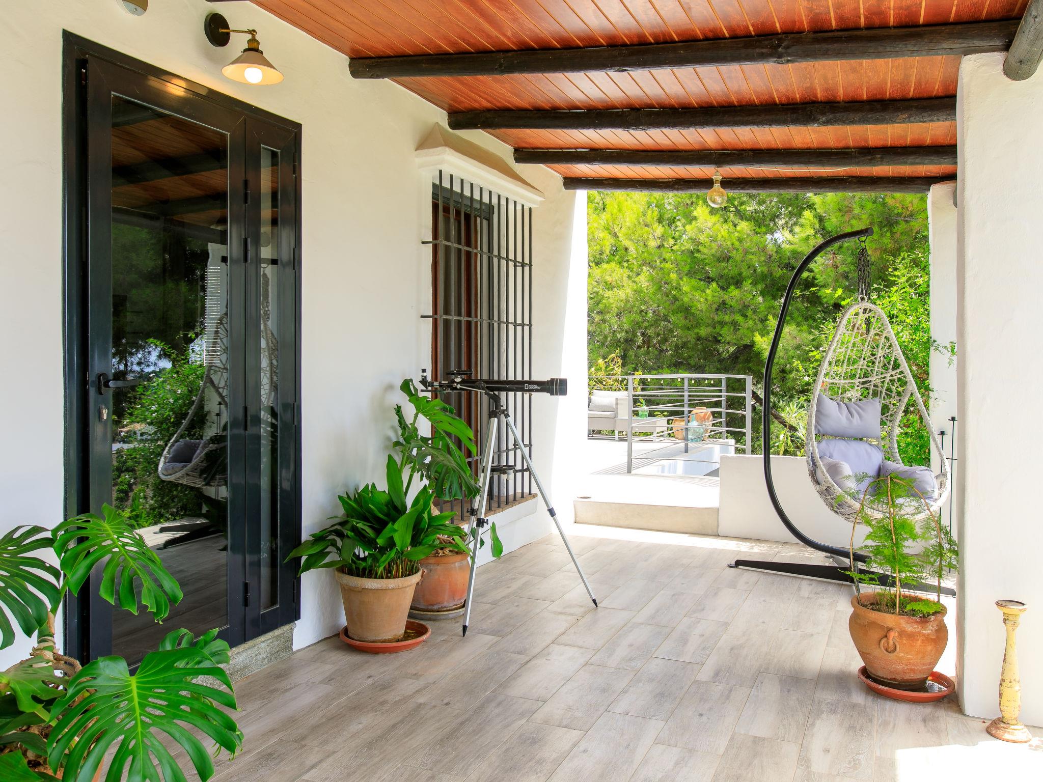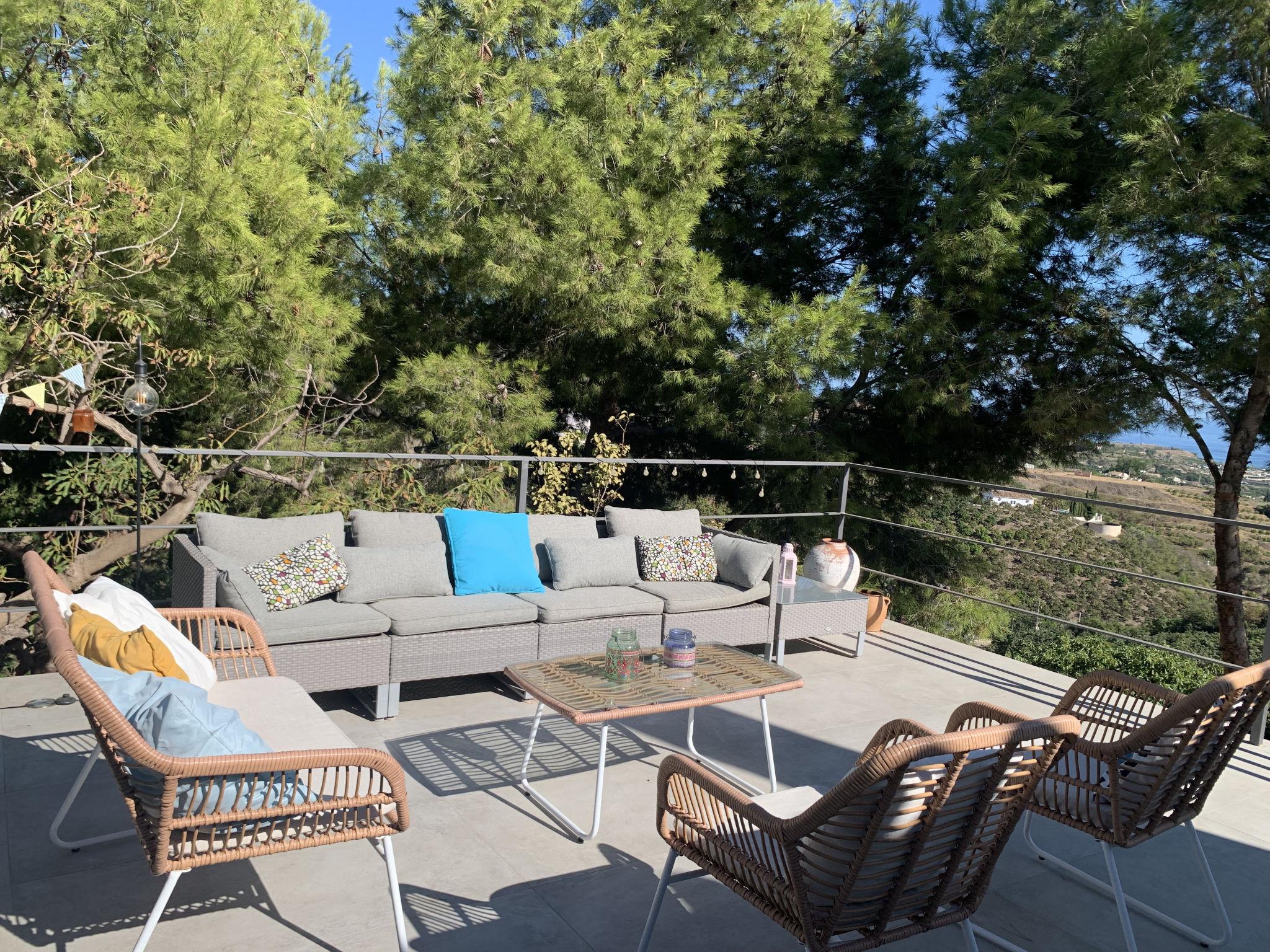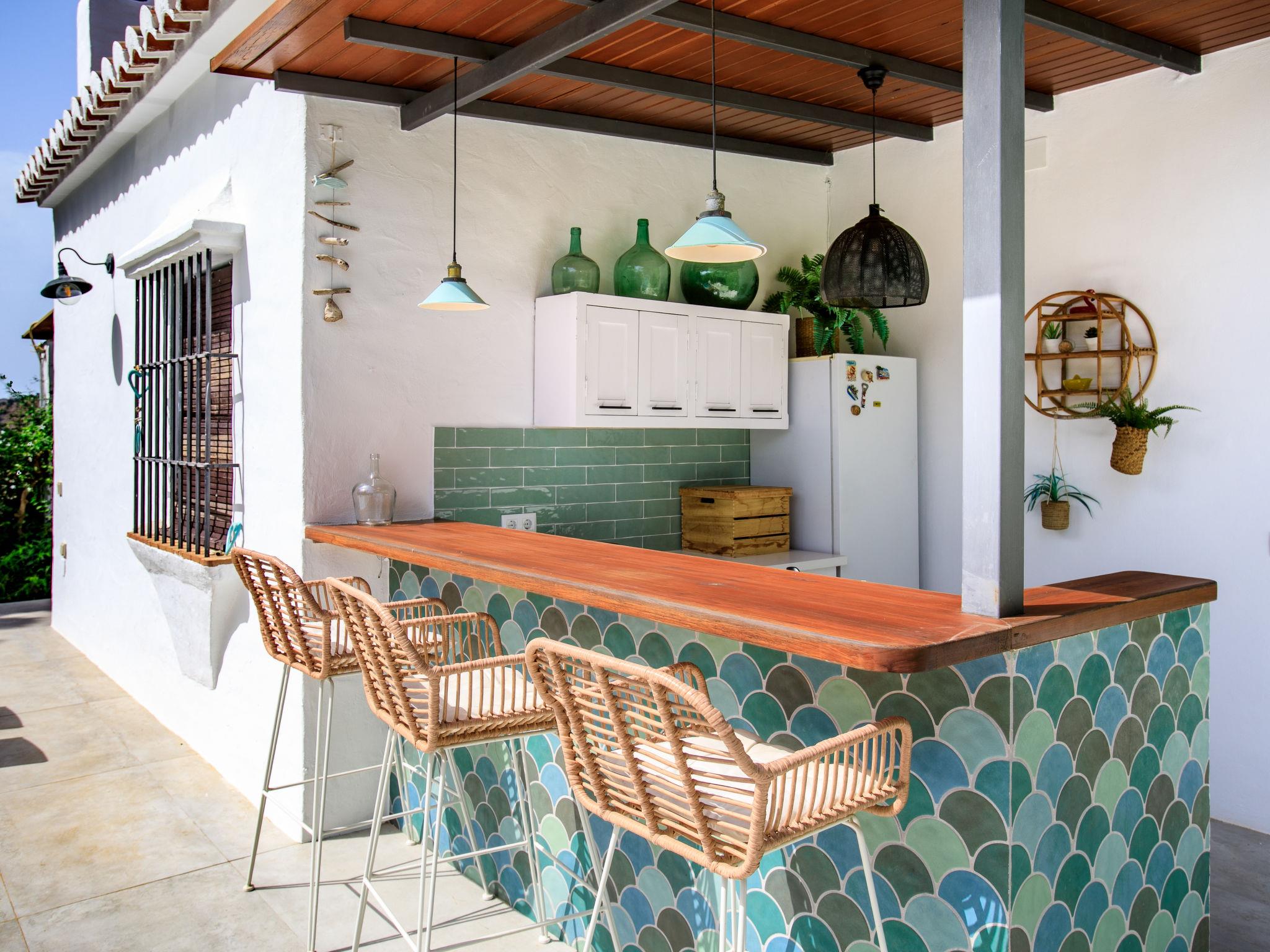 "Villa Mar y Luna", 3-room cottage 85 m2 on 2 levels. Spacious and bright, comfortable and beautiful furnishings: living/dining room with dining table, TV, air conditioning and forced-air heating. Exit to the garden, to the terrace. 1 room with 2 beds (90 cm, length 190 cm), fan with shower/WC. Open kitchen (dishwasher, 4 ceramic glass hob hotplates, toaster, kettle, microwave, electric coffee machine). Exit to the terrace. Upper floor: 1 room with 1 french bed (150 cm, length 200 cm), bath/WC, air conditioning and forced-air heating. 3 large terraces, porch. Terrace furniture, barbecue, deck chairs (4), sitting area. Very beautiful panoramic view of the sea and the mountains. Facilities: washing machine, iron, mosquito net, children's high chair, baby cot for up to 2 year olds, hair dryer. Internet (WiFi, free). Parking at the house. Please note: smoke alarm, fire extinguisher. VTAR/MA/04862 // Reg. Nr.: ESFCTU000029013000688746000000000000000VTAR/MA/48623