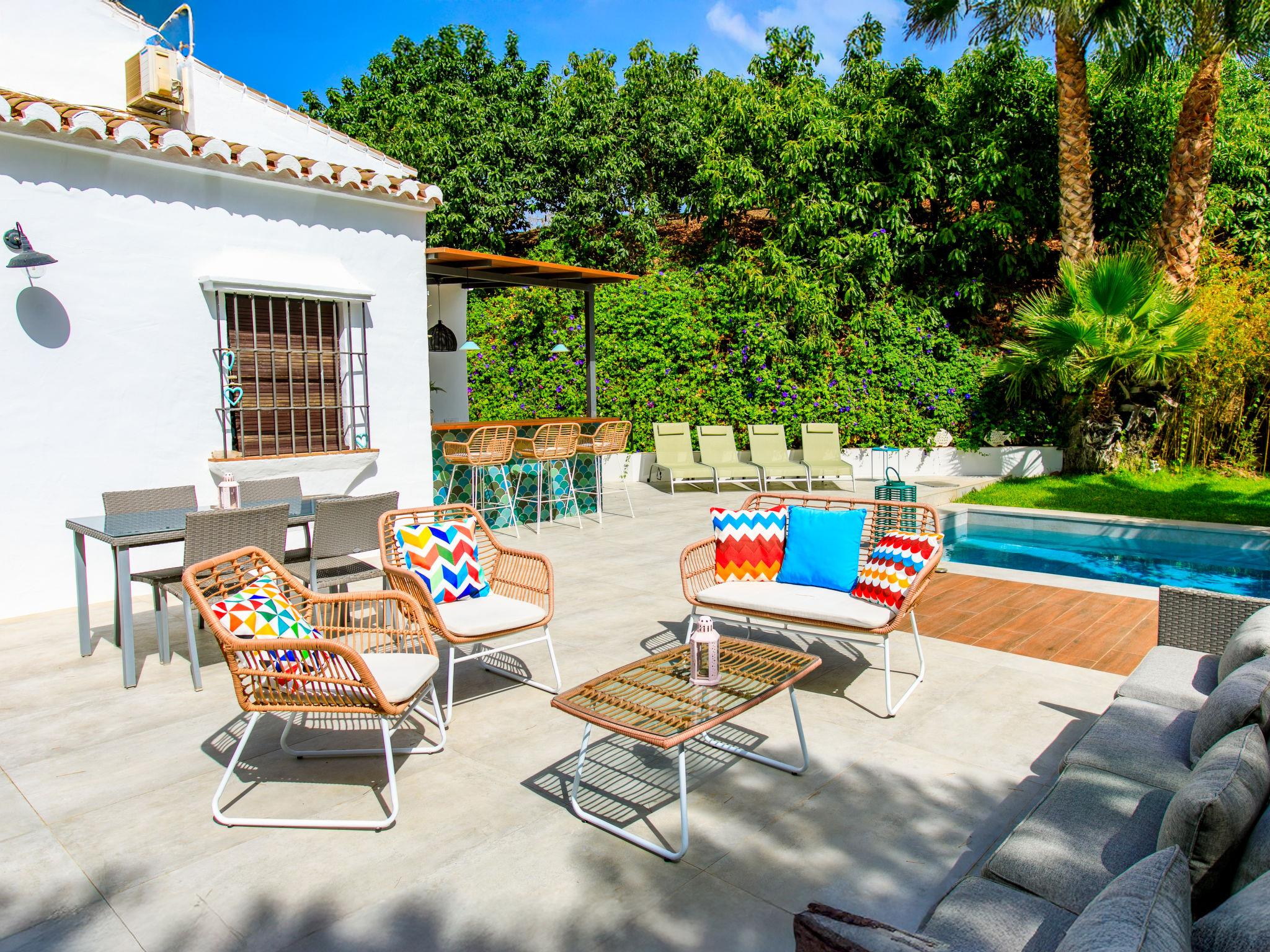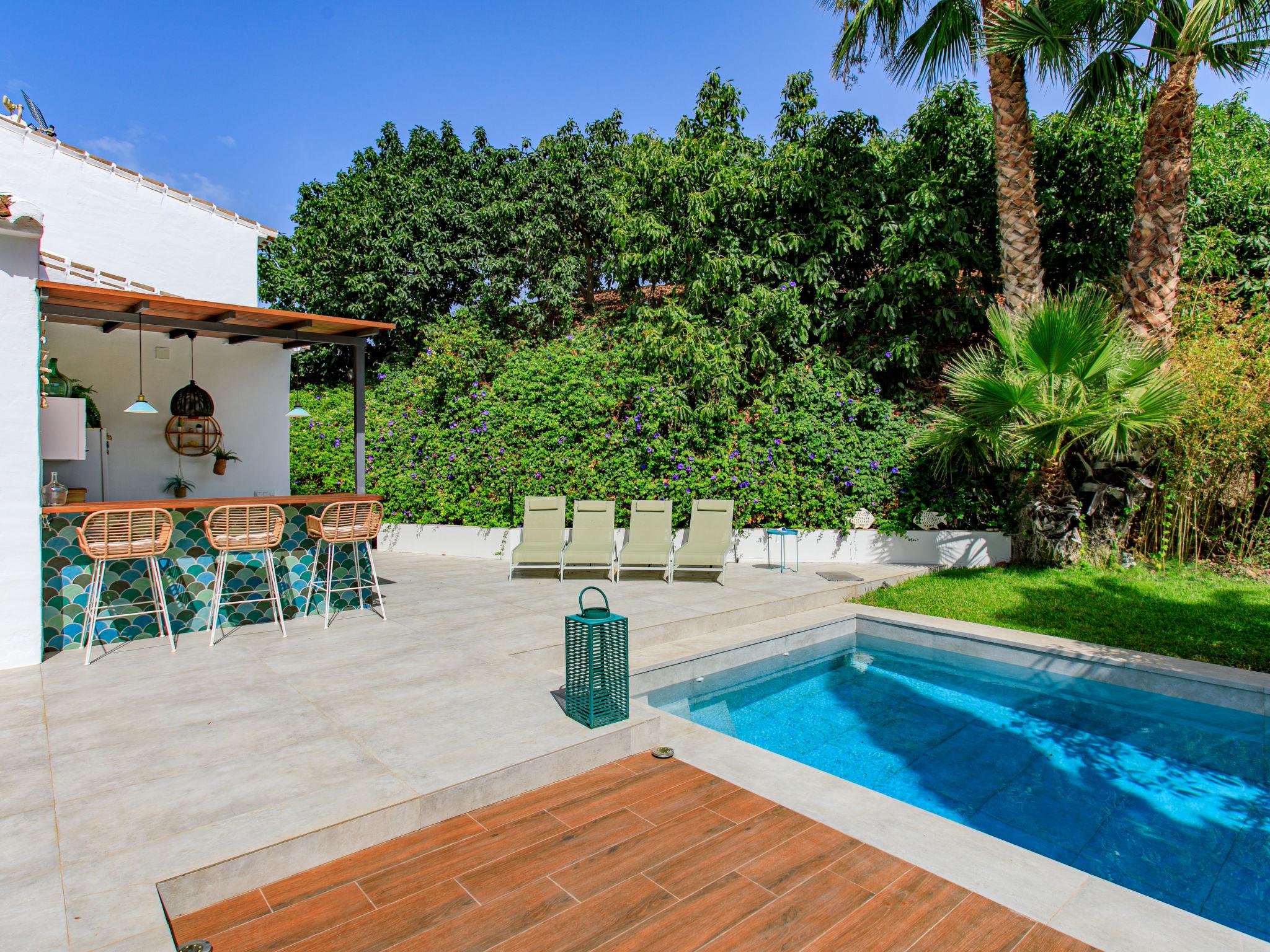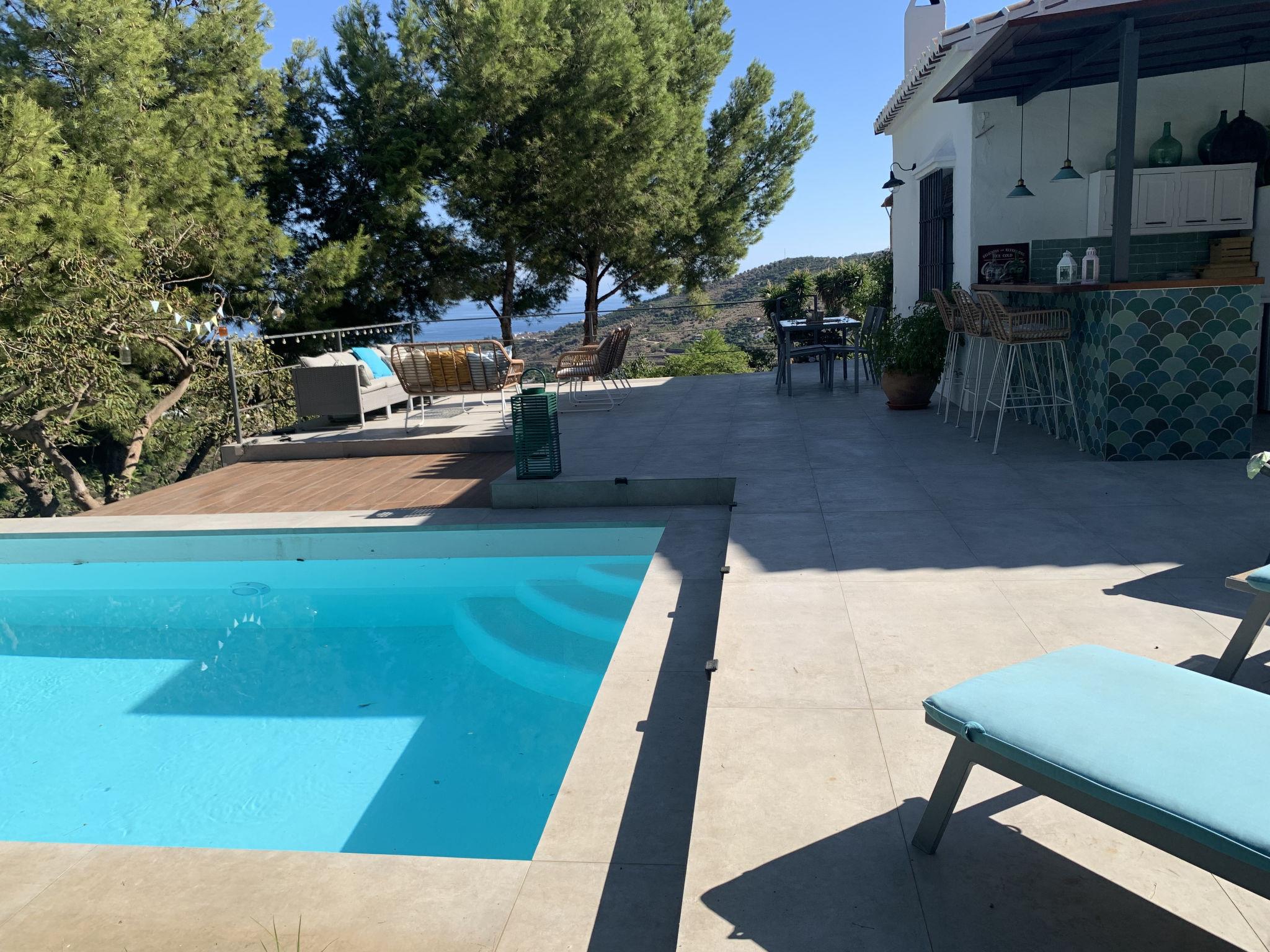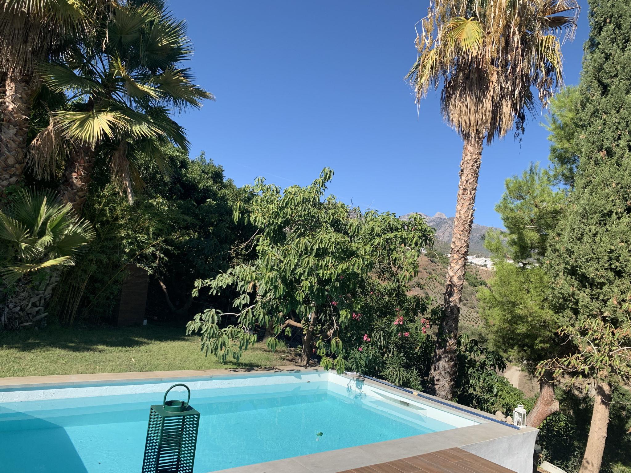 Beautiful, comfortable country house "Villa Mar y Luna", 2 storeys, surrounded by trees and fields. Outside the resort, 5 km from the centre of Frigiliana, in a secluded, quiet position, traffic calmed area, 9 km from the sea, 9 km from the beach, 3 km from the river. Private: terraced garden, swimming pool angular (4 x 6 m, depth 150 - 150 cm, seasonal availability: 01.Mar. - 31.Oct.). Outdoor shower. In the house: washing machine. Motor access (200 m via unmade road). Parking at the house. Shop 4 km, supermarket 4 km, shopping centre 25 km, restaurant 3 km, bar 3 km, bakery 4 km, café 3 km, bus stop "Frigiliana" 3 km, railway station "Maria Zambrano" 61 km, pebble beach "Torrecilla" 9 km. Sports harbour 17 km, golf course (18 hole) 17 km, tennis 9 km, slopes 129 km. Nearby attractions: Frigiliana 4 km, Nerja 8 km, Granada 100 km, Málaga 60 km, Cuevas de Nerja 10 km, Aquavelis 17 km. Well-known ski regions can easily be reached: Sierra Nevada 129 km. Hiking paths: Sierra Tejeda, Sierra Almijara, Las Alpujarras. Please note: car recommended. Groups of teenagers on request only. The owner does not accept any youth groups. Loading and unloading of baggage is possible at the holiday house.