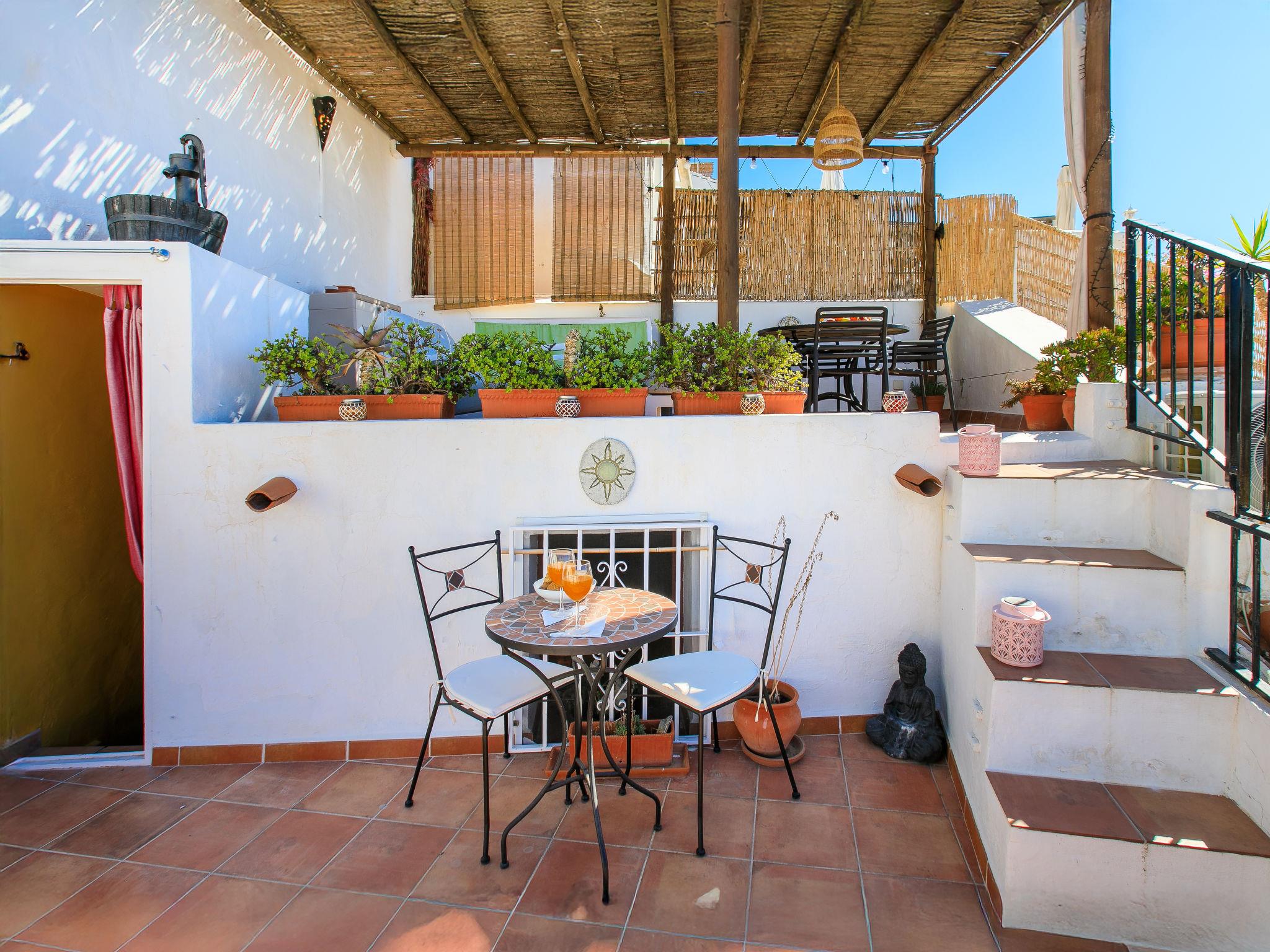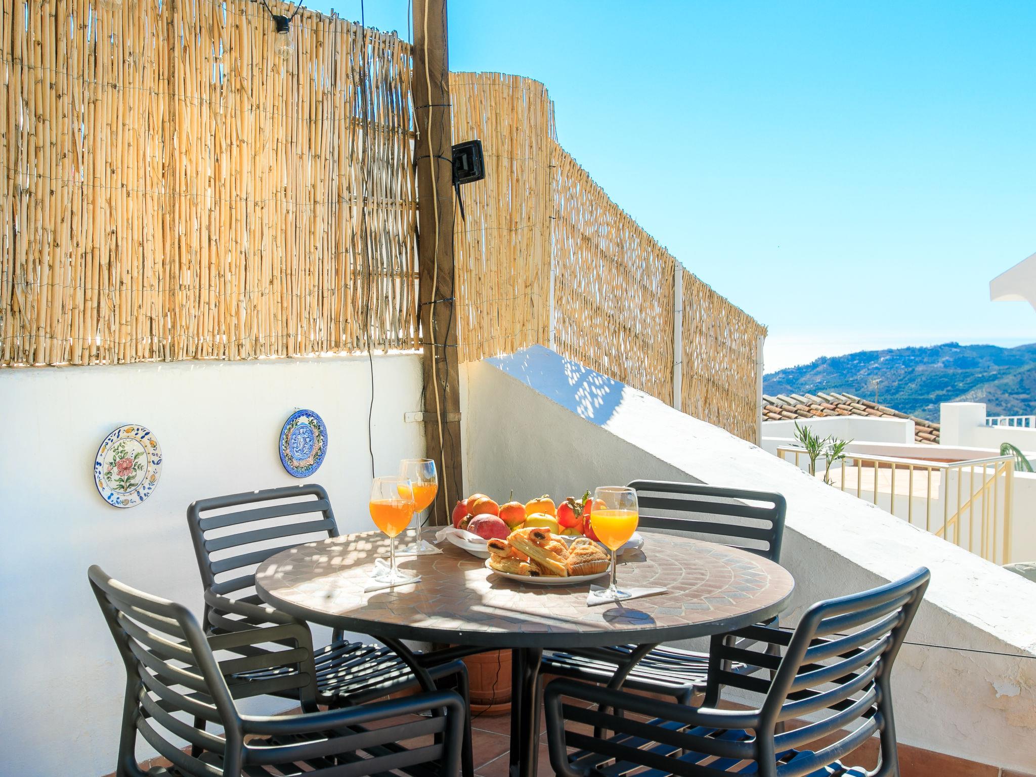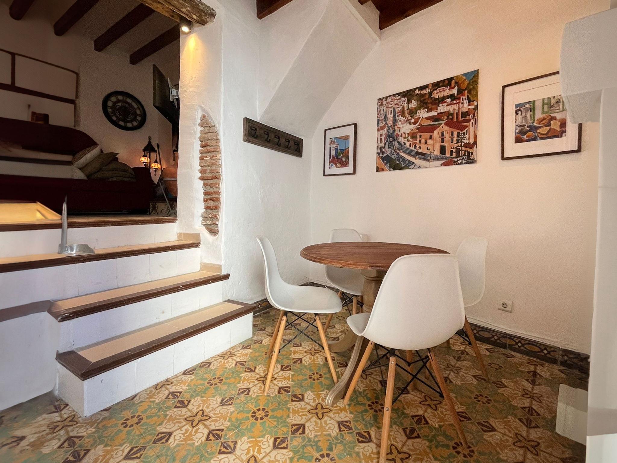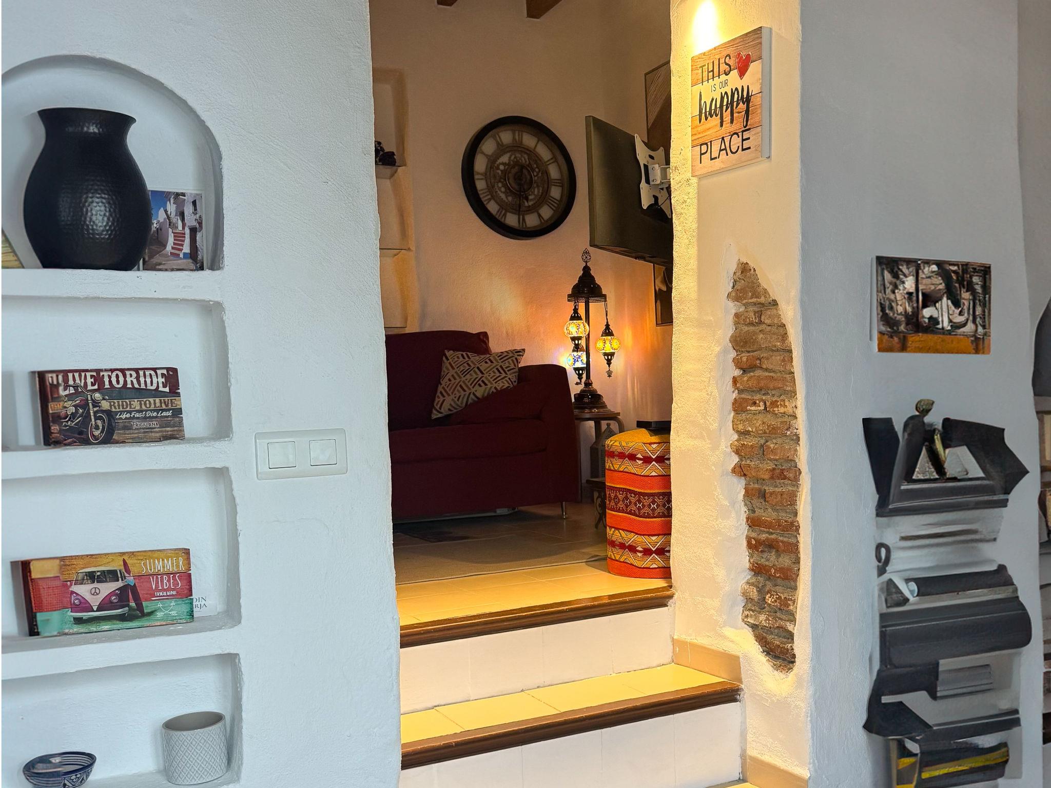 Beautiful, cosy, rustic house "Zacatin", 3 storeys. In the centre of Frigiliana, in a central position, traffic calmed area, 5 km from the beach. Steep motor access to the house. Stepped path (40 steps) to the house. Shop 50 m, restaurant, bar 2 m, bakery, café 50 m, pub garden 10 m, bus stop, outdoor swimming pool 200 m. Sports harbour 17 km, marina 17 km, golf course (18 hole) 23 km, sailing school 17 km, riding stable 5 km, cycle lane 500 m. Nearby attractions: Málaga, Museo de Nerja, Acantilados de Maro, Cuevas de Nerja, La Alhambra, Cómpeta. Well-known ski regions can easily be reached: Sierra Nevada. Hiking paths: Sierra Tejeda, Sierra Almijara, Las Alpujarras. Please note: not suitable for small children. The owner does not accept any youth groups.