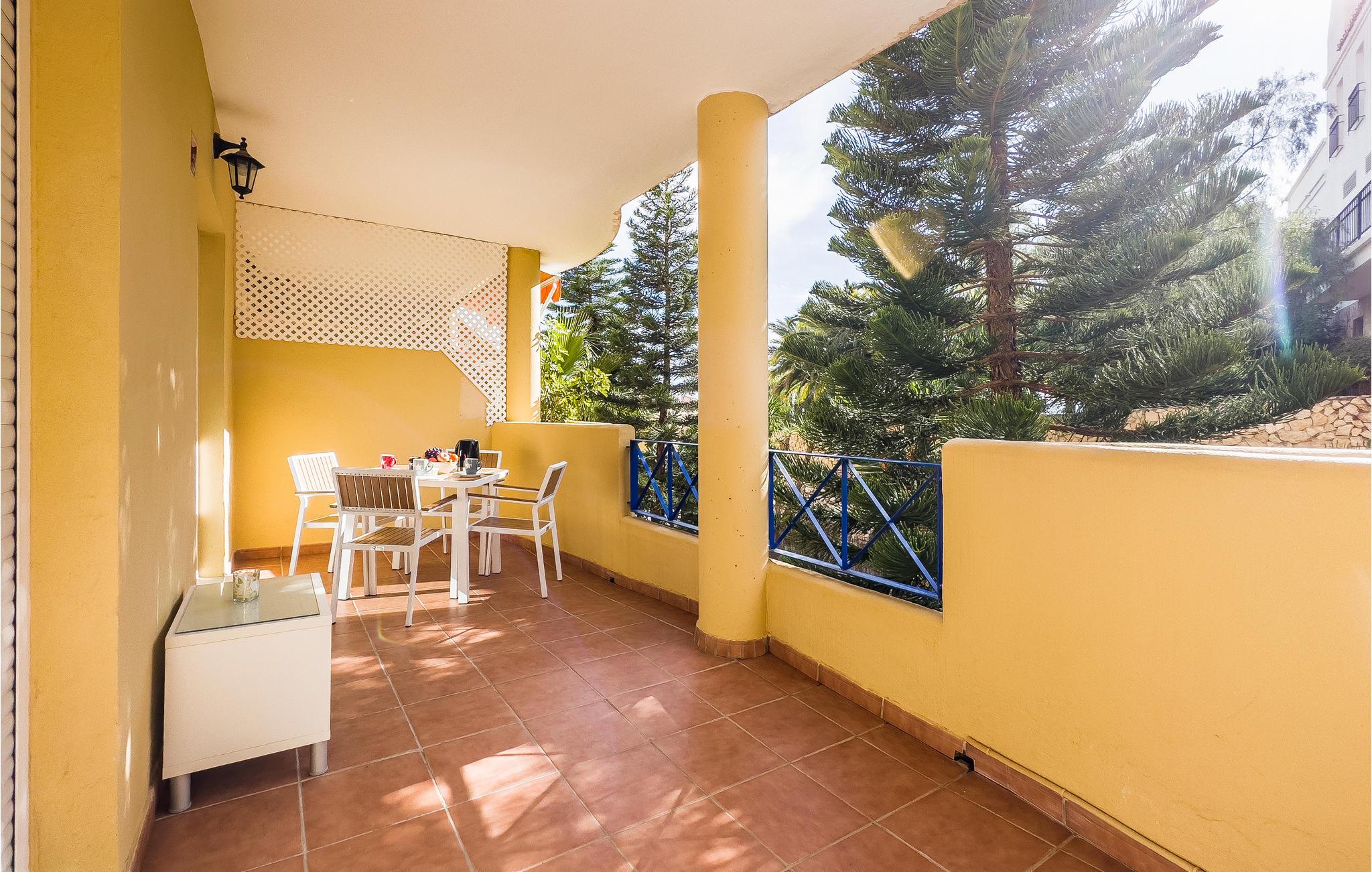 Træd fra opholdsområdet og ud på terrassen, nyd dagens første solstråler og den skønne udsigt over en kop kaffe. Senere kan I køle ned i den fælles pool.