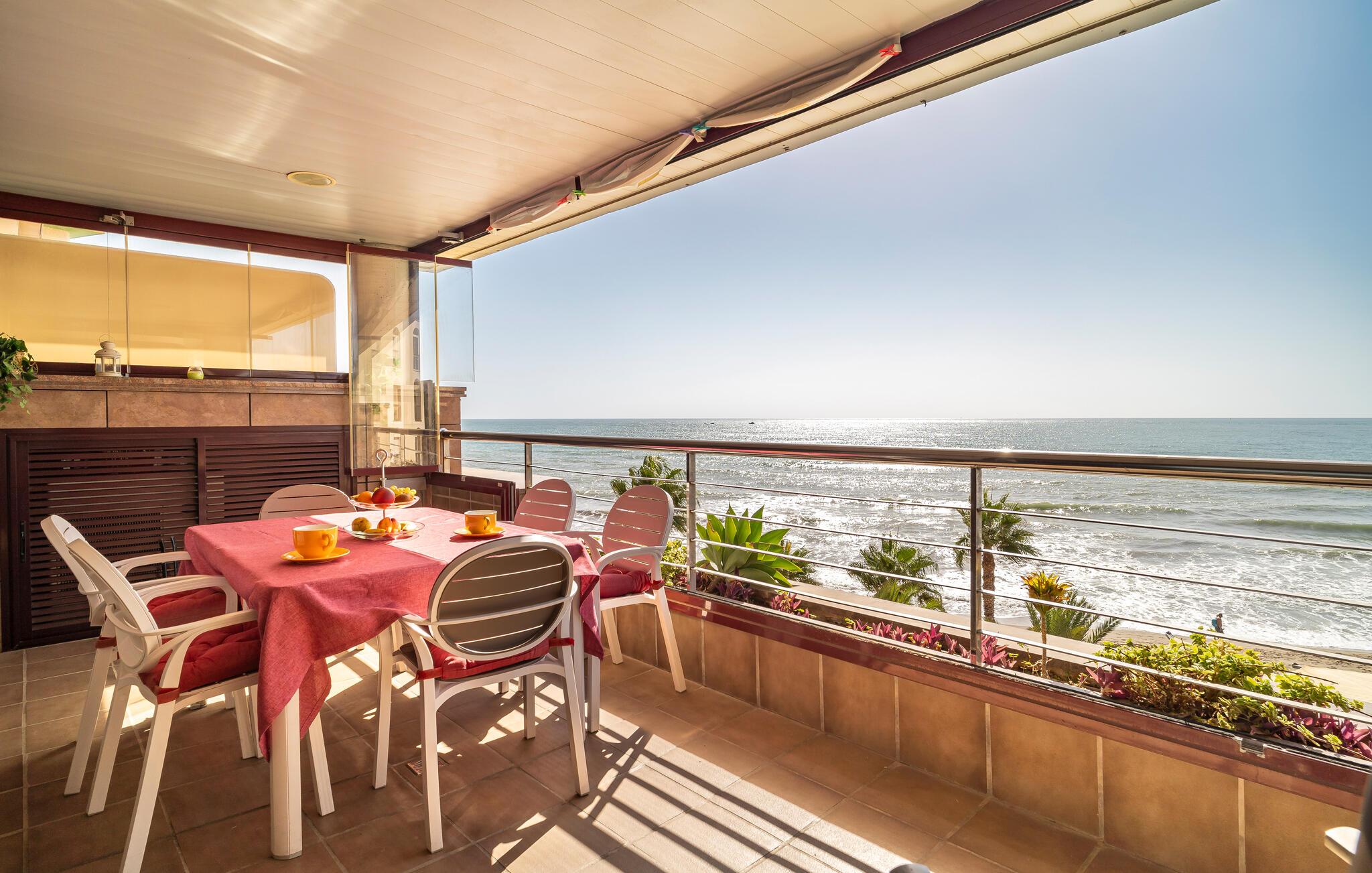 Ideelt beliggende ved sandstranden og med udsigt over havet byder denne komfortable ferielejlighed jer velkommen.