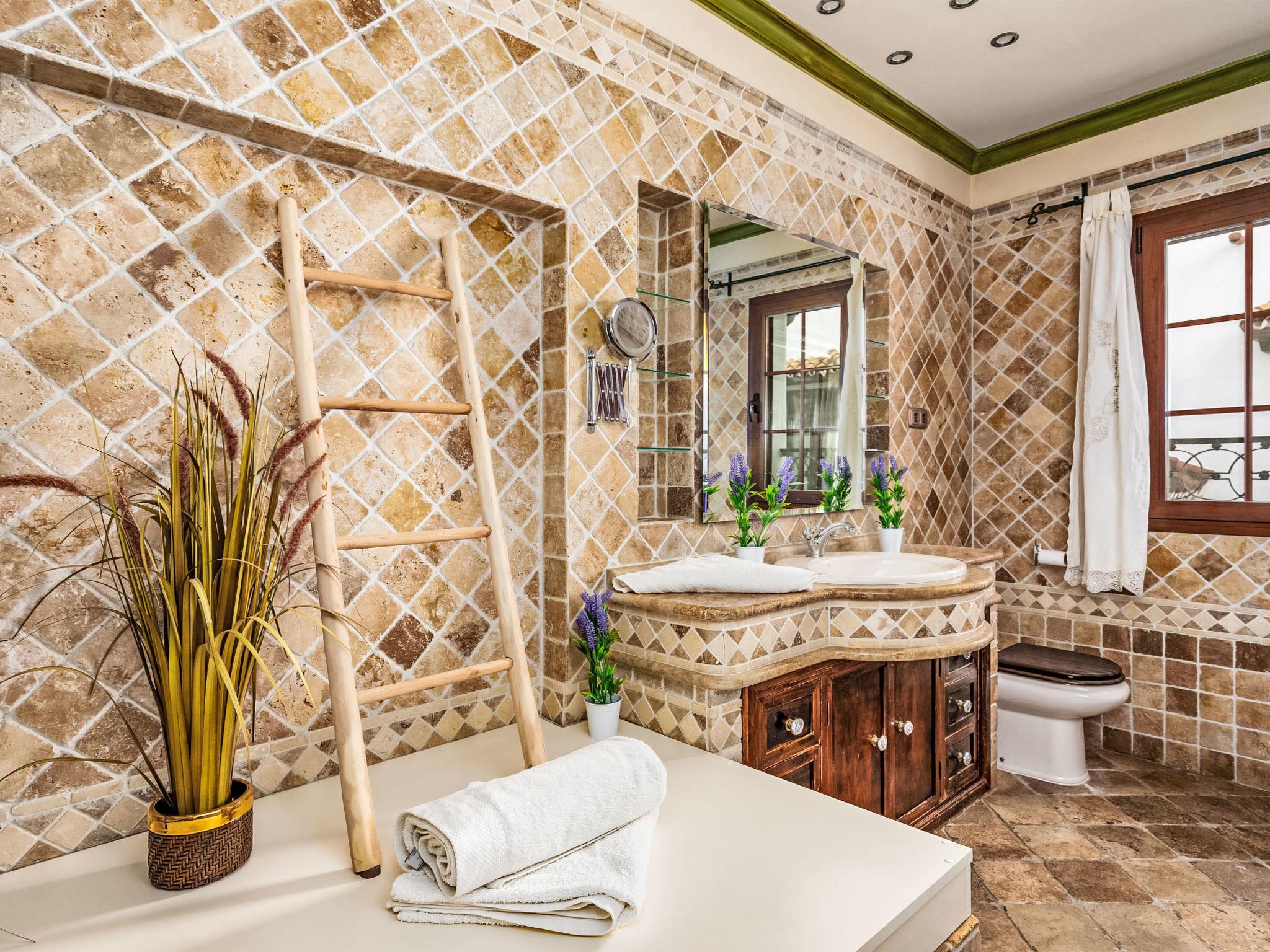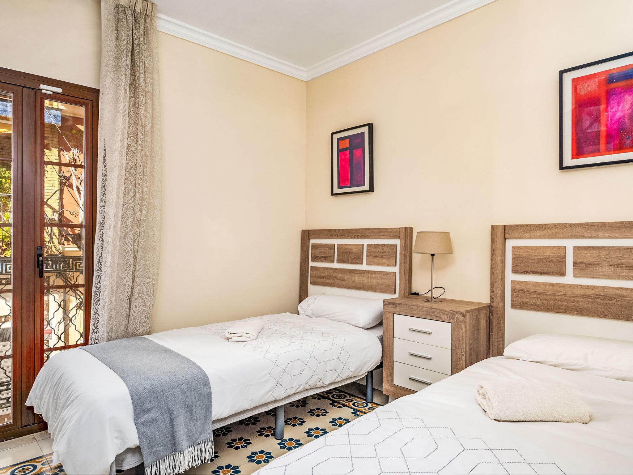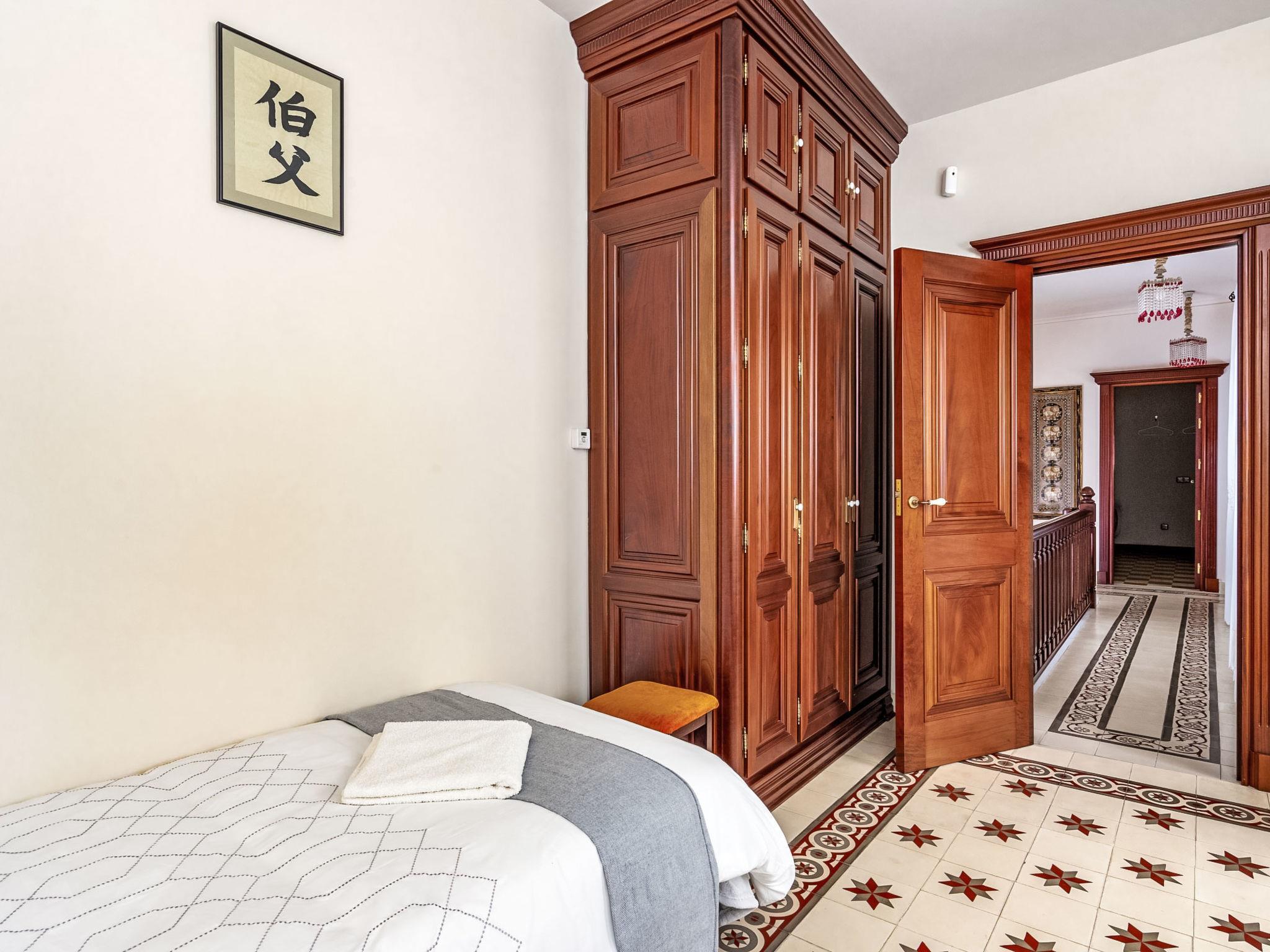 "El patio de Lazaro", 6-room terraced house 257 m2 on 3 levels. Beautiful and stylish furnishings: living/dining room with digital TV. Large kitchen (oven, dishwasher, toaster, kettle, microwave, electric coffee machine, Capsules for coffee machine (Nespresso) extra). Sep. WC. Air-conditioning, forced-air heating. Upper floor: 1 room with 1 french bed (160 cm, length 200 cm), shower/WC. 1 room with 1 french bed (135 cm, length 200 cm). 1 room with 2 beds (90 cm, length 200 cm). Shower/WC. 2nd upper floor: 2 rooms, each room with 2 beds (90 cm, length 200 cm). Bath/WC. Facilities: washing machine, dryer, iron, children's high chair, baby cot, hair dryer. Internet (WiFi, free). Please note: non-smoking house. Smoke alarm, no lift. VUT/MA/81267 // Reg. Nr.: ESFCTU0000290380000065810000000000000000VUT/MA/812675