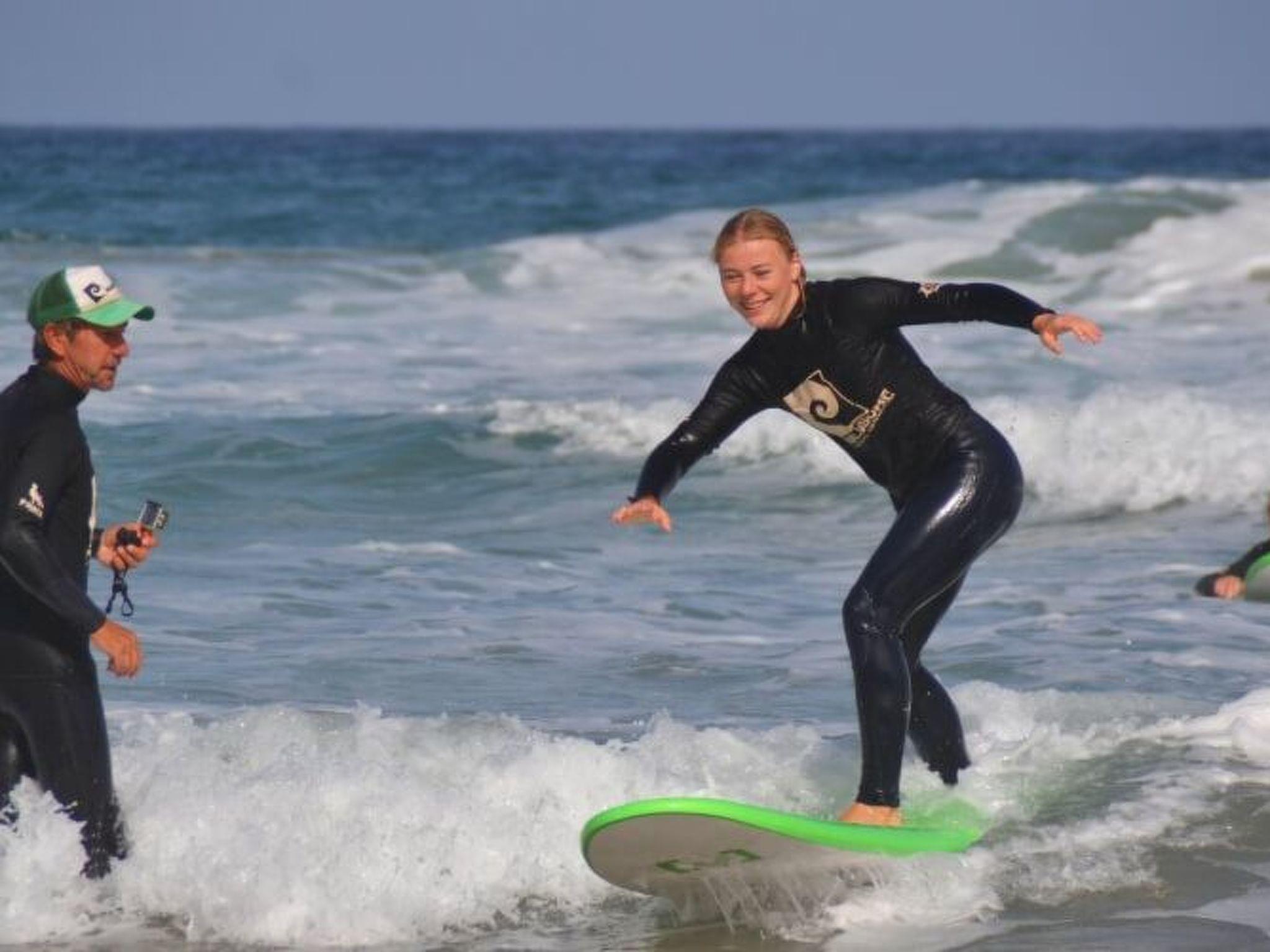 The flat has a living and dining room with integrated kitchen, a hallway with wardrobe and mirror, a spacious shower room and a separate bedroom with large built-in wardrobe and double bed (180x200), window with fly screen, the bright living room has a large floor-to-ceiling sliding door to the huge terrace, a cosy sofa with the possibility for a third person to sleep (140x200). There is a SAT-TV and a stereo system, dining table with 4 chairs. The kitchenette is fully equipped with cooking utensils and crockery. Mini oven, 3 ceramic hobs, fridge with freezer compartment, toaster, coffee machine, kettle. The bathroom has a shower, washbasin and WC as well as a cupboard for storing personal items, a hairdryer is available and the terrace has 2 sun loungers and a table with 3 chairs. At this flat there is a water hose for cleaning surfboards and storage facilities for surfing equipment.there is a barbecue for all 3 terraces for common use and a washing machine in a separate room.fast home office suitable wifi is available free of charge.