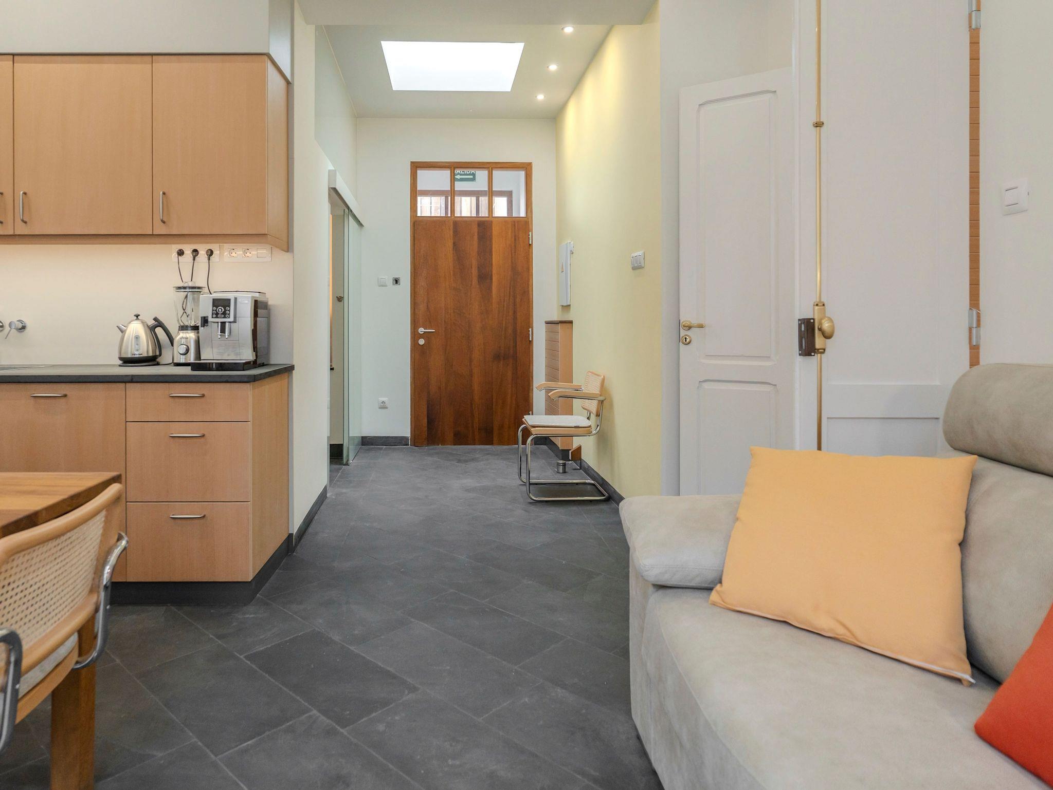 Folgen Sie dem liebevoll renovierten, zentralen Treppenhaus in den 1. Stock zum Apartamento Amarillo: Ein kleiner Flur führt in den luxuriös ausgestatteten Wohnraum mit Küche. Das gemütliche Schlafzimmer ist mit einer Tür vom Wohnraum abgetrennt ? ideal, wenn Sie die Schlafcouch als zweite Schlafmöglichkeit nutzen möchten.
