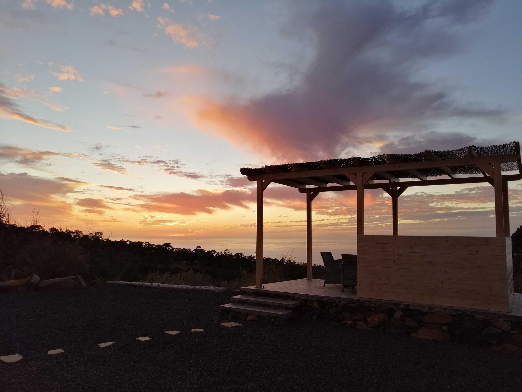 Der große Aussenbereich bietet zahlreiche Möglichkeiten. Am Vormittag zum Frühstück gibt es direkt seitlich vor dem Haus eine gemütliche Bank mit Tisch und gegen Nachmittag bietet der Garten schöne Plätze für ein Sonnenbad. Eine schöne Holzpergola möbliert mit Sofa und Sesseln ist der perfekte Ort um sich in Mitten der Natur zu entspannen und die Sterne zu beobachten. Die Sonnenuntergänge mit Blick aufs Meer und die grünen Schluchten des Nordwestens sind einzigartig. Ein kleiner Kugelgrill steht den Gästen für ein Barbecue zur Verfügung.