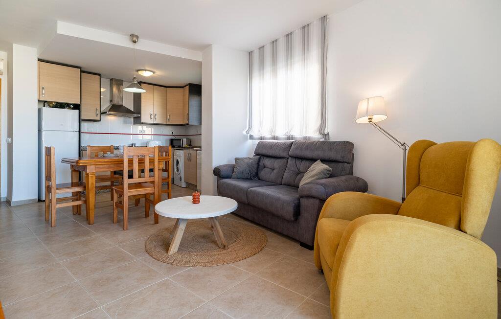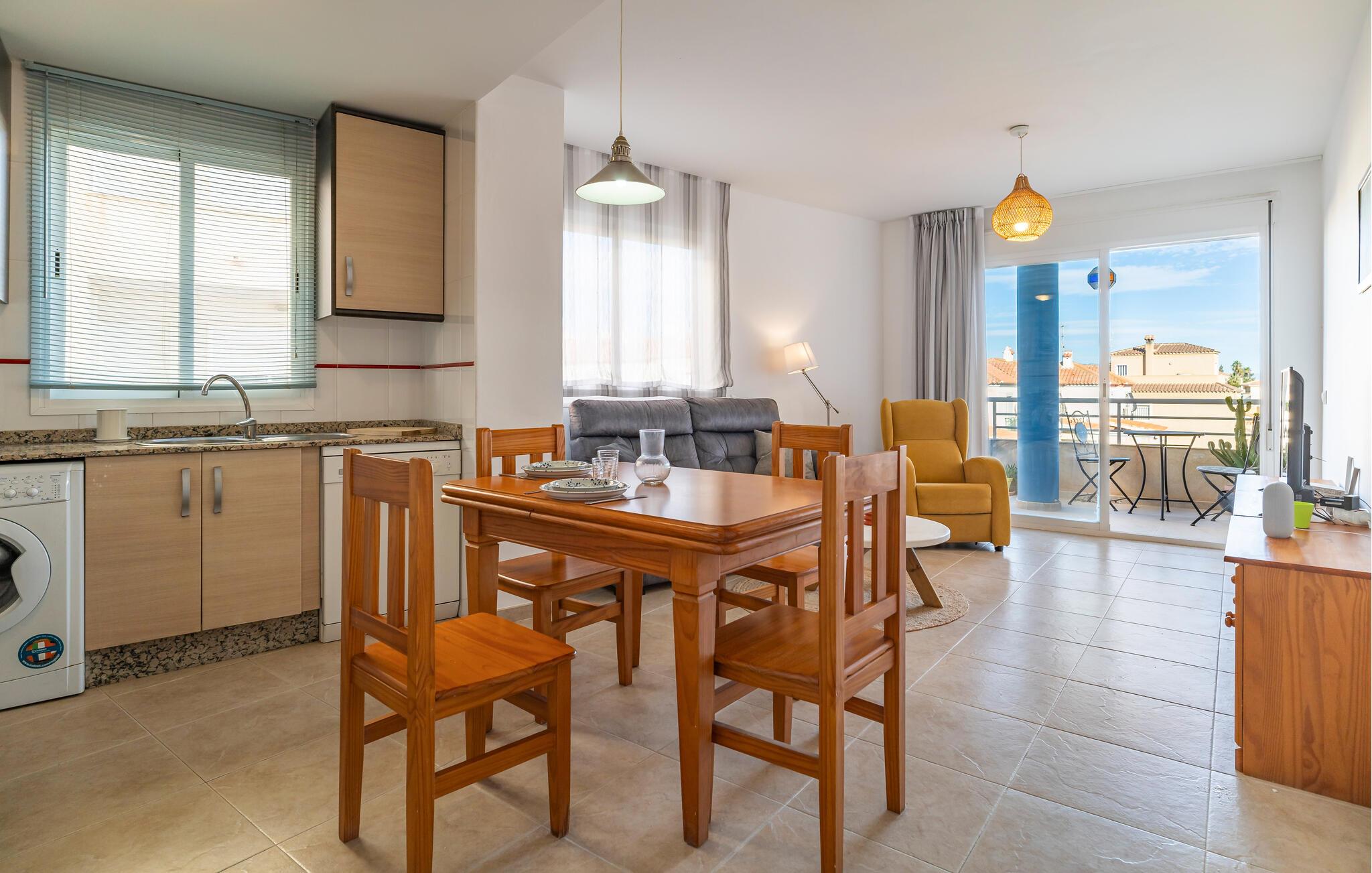 Jeres stilfuldt indrettede ferielejlighed i Garrucha tilbyder jer alt, hvad I skal bruge til en afslappende ferie på Costa de Almeria. Begynd jeres morgen på balkonen, hvor I kan nyde jeres morgenmad med en vidunderlig udsigt over området. Havet funkler i baggrunden og lægger op til en varm dag på stranden. Den lyse opholdsstue lover ren afslapning takket være de komfortable siddepladser, mens det veludstyrede køkken giver jer mulighed for at tilberede lækre måltider. Brug den elegante spiseplads til sociale aftener eller slap af med en bog på den komfortable sofa.