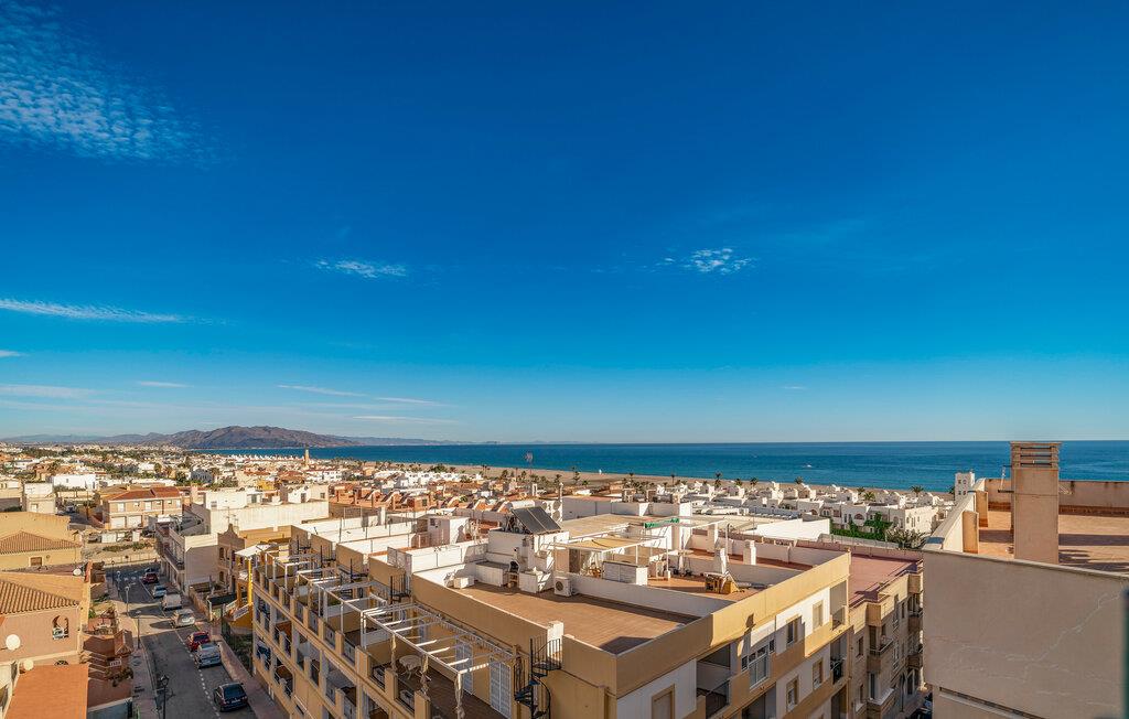 Højdepunktet i komplekset er den store fælles pool på tagterrassen, som byder på en spektakulær udsigt over Garrucha og havet. Svøm et par omgange eller nyd solen på liggestolene, mens I mærker den friske havbrise.