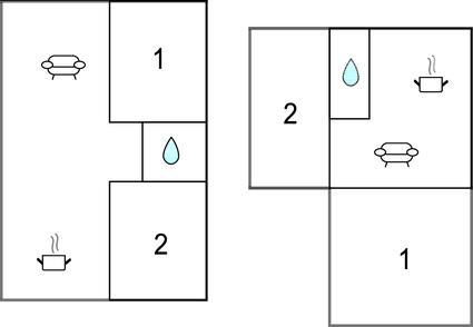 Badeværelse 3m2 (nr. 1) - WC. Varmt og koldt vand. Bruser