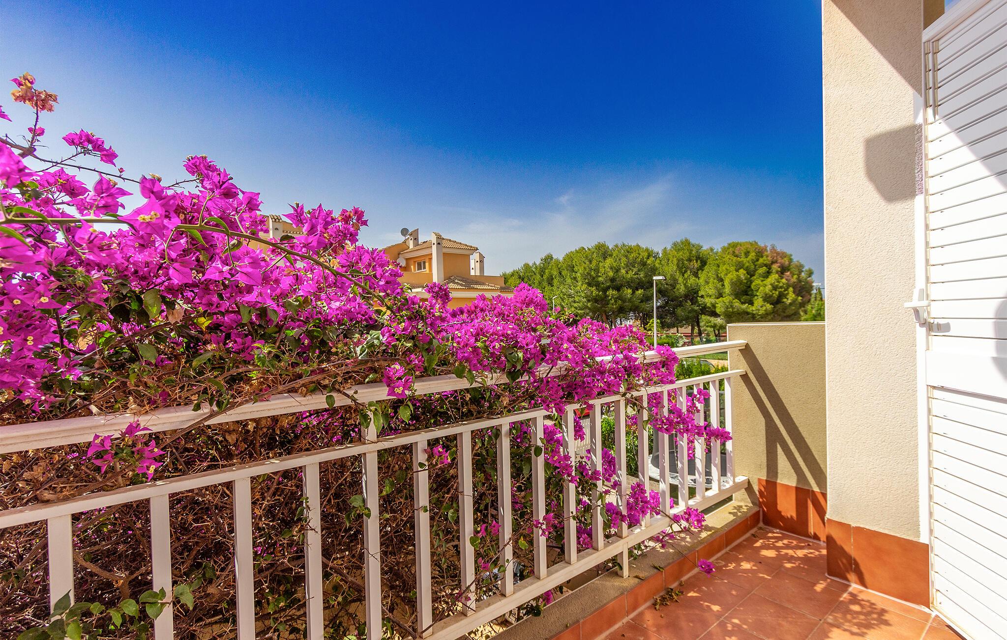 Velkommen til dette feriehus i Gran Alacant, lige syd for Alicante, hvor den bedste måde at begynde dagen på er med en afslappet morgenmad på terrassen, som er omgivet af blomstrende planter. Her kan I glæde jer til den kommende feriedag og planlægge dagens aktiviteter over en kop kaffe i ro og mag. Den farverige indretning og den fine opholdsstue lægger op til hyggestunder med hele familien. Det veludstyrede køkken lader intet tilbage at ønske.