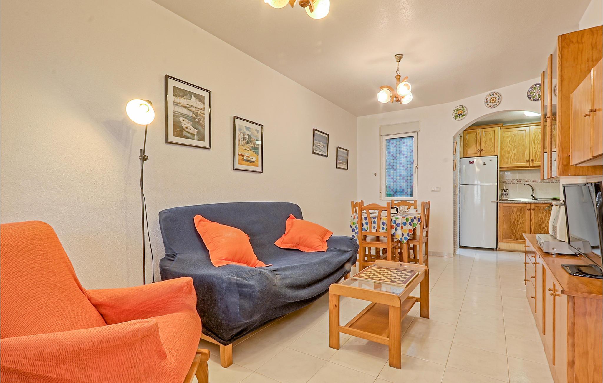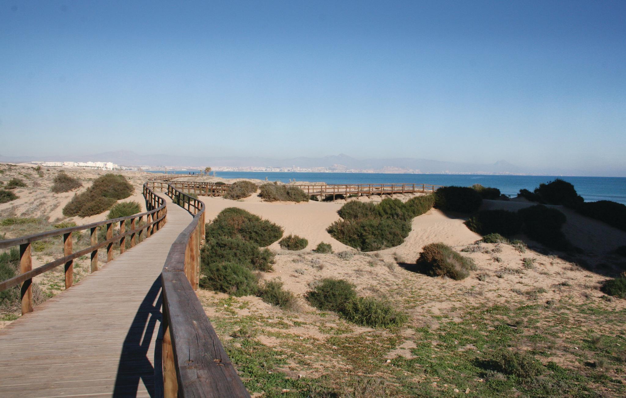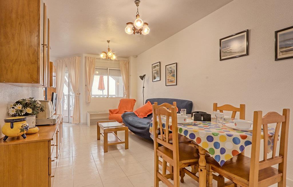 Det lukkede boligkompleks har en frodig vegetation og ligger kun få meter fra det fredede naturområde "Clot de Galvany" og de gyldne klitter på Carabassi Beach. Santa Pola er en hyggelig lille fiskerby, med en dejlig marina, hvorfra der også sejler færge til den nærliggende ø Tabarca som er en udflugt værd. Smag frisk fisk og skaldyr i byens gode restauranter og vælg mellem et stort udvalg af is, i de mange iscafeer, hvor isen bl.a. er lavet af områdets frugter og bær. Barneseng og højstol til rådighed mod forespørgsel.