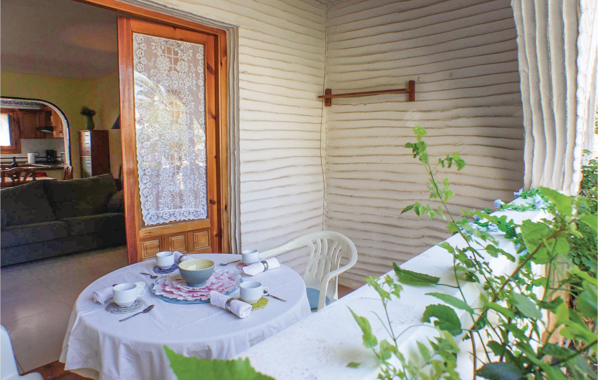 Dette rustikke ferierækkehus der ligger i et ferieanlæg med fælles have og pool, er fordelt på to etager og ligger i det dejlige boliganlæg Costa Hispania ved naturparken Clot de Galvany og den smukke sandstrand Carabassi med klitter ud til det rene, klare og lune Middelhav. Anlæggets velplejede have er anlagt helt egnstypisk og giver en autentisk atmosfære med små stier gennem den grønne vegetation. Her er det perfekt at holde badeferie for såvel en familie eller to par, der gerne vil tilbringe opholdet med solbad og ture i vandet i poolen eller i havet.