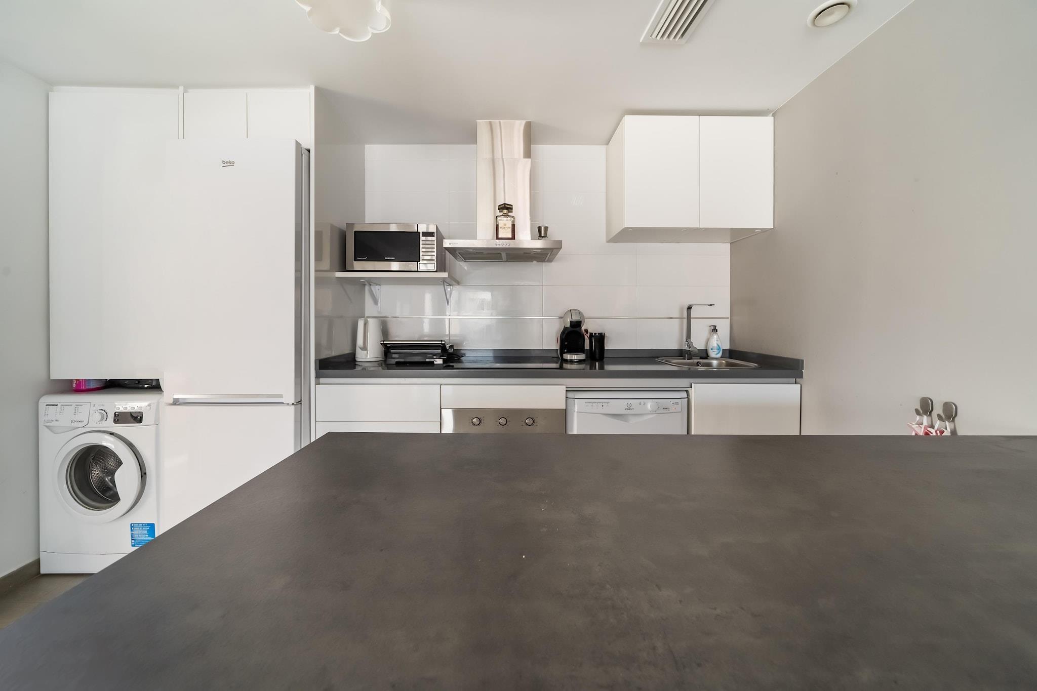 Afslapning ved poolen Træd ind i denne indbydende villa i Gran Alacant, hvor en privat swimmingpool tilbyder et forfriskende tilflugtssted under den spanske sol. Med fire soveværelser, der kan rumme op til otte gæster, er den ideel til familier eller grupper, der leder efter plads og komfort. Nyd solrige morgener ved poolen eller slap af i den møblerede have med en kølig drink efter en dag med udforskning. Nærliggende strande og spisning Kun 5 km væk, Carabassi Beach giver blødt sand og blide bølger til en perfekt stranddag. Santa Pola er også inden for rækkevidde for yderligere kysteventyr. Til hverdagens behov er det nærmeste supermarked og lokale restauranter kun 900 meter væk, hvilket gør friske måltider og forsyninger let tilgængelige uden at miste dyrebar ferietid. Komfortabelt interiør Indvendigt har villaen en rummelig opholdsstue med aircondition med tv og et fuldt udstyret køkken klar til hjemmelavede måltider. Tøjvask er nemt med to vaskemaskiner, og familievenlige faciliteter omfatter en barneseng og høj stol. Parkering er tilgængelig på selve ejendommen, og Alicante Lufthavn ligger kun 10 km væk, hvilket giver mulighed for en jævn ankomst og afgang.