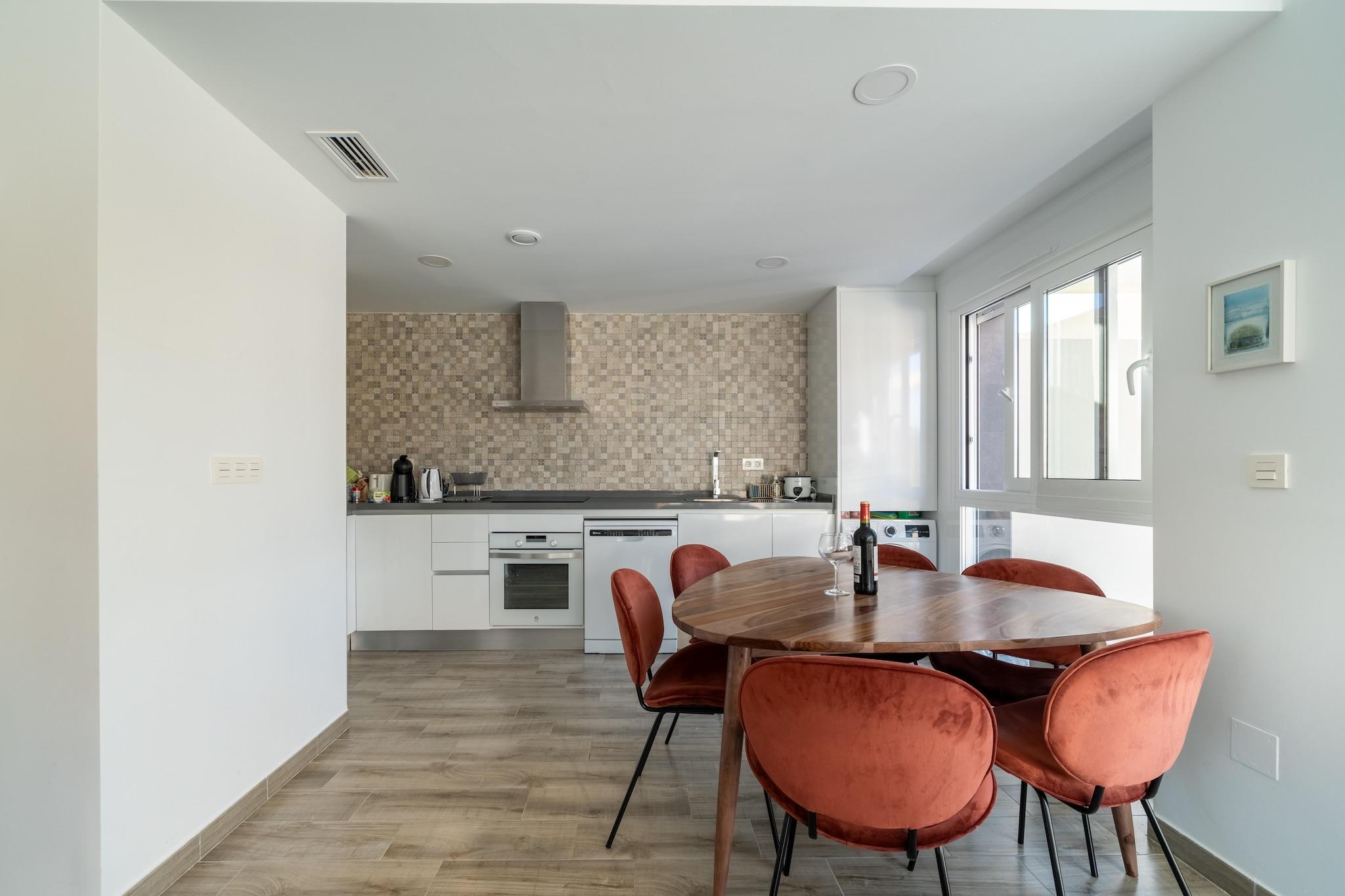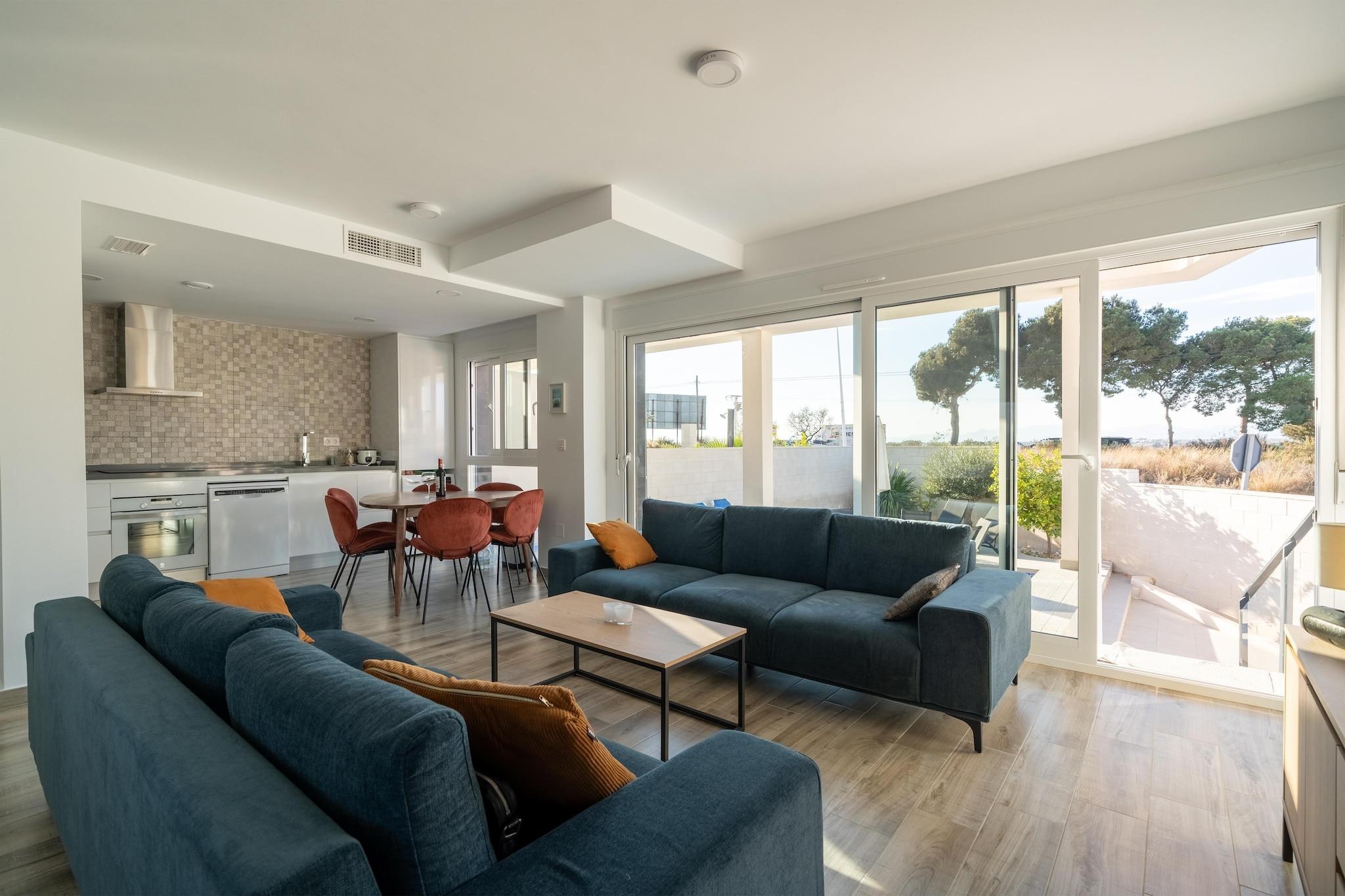 Forfriskende privat pool Træd ind i din Gran Alacant-ferie med en privat swimmingpool perfekt til en morgendukkert eller en eftermiddag med solbadning. Villaen rummer komfortabelt op til 8 gæster fordelt på tre soveværelser, hvilket gør den ideel til to familier eller en gruppe venner. Udenfor inviterer den møblerede have dig til at nyde alfresco-måltider eller slappe af med en bog under solen. Aircondition holder villaen komfortabel, mens parkering er tilgængelig for nemheds skyld. Kysteventyr i nærheden Kun 5 km væk byder Carabassi Beach på blødt sand og klart vand til solbadning, svømning eller strandspil. Til hverdagens behov ligger et supermarked kun 900 meter væk, og en række lokale restauranter tilbyder lækre spanske retter og afslappet spisning. Santa Pola-stranden ligger 7,4 km derfra, perfekt til dagsture eller udforskning af kysten. Alicante lufthavn ligger kun 10 km væk, hvilket sikrer nem adgang for rejsende. Komfort og bekvemmelighed Indenfor har villaen et fuldt udstyret køkken, en stue med tv og vaskefaciliteter, herunder to vaskemaskiner. Soveværelserne har dobbeltsenge med aircondition, og barneseng og høj stol er tilgængelige for familier, der rejser med små børn. Med sin pool, have og nærhed til strande og spisesteder tilbyder denne villa et afbalanceret tilflugtssted, der kombinerer afslapning og bekvemmelighed, perfekt til at nyde livsstilen på Costa Blanca.