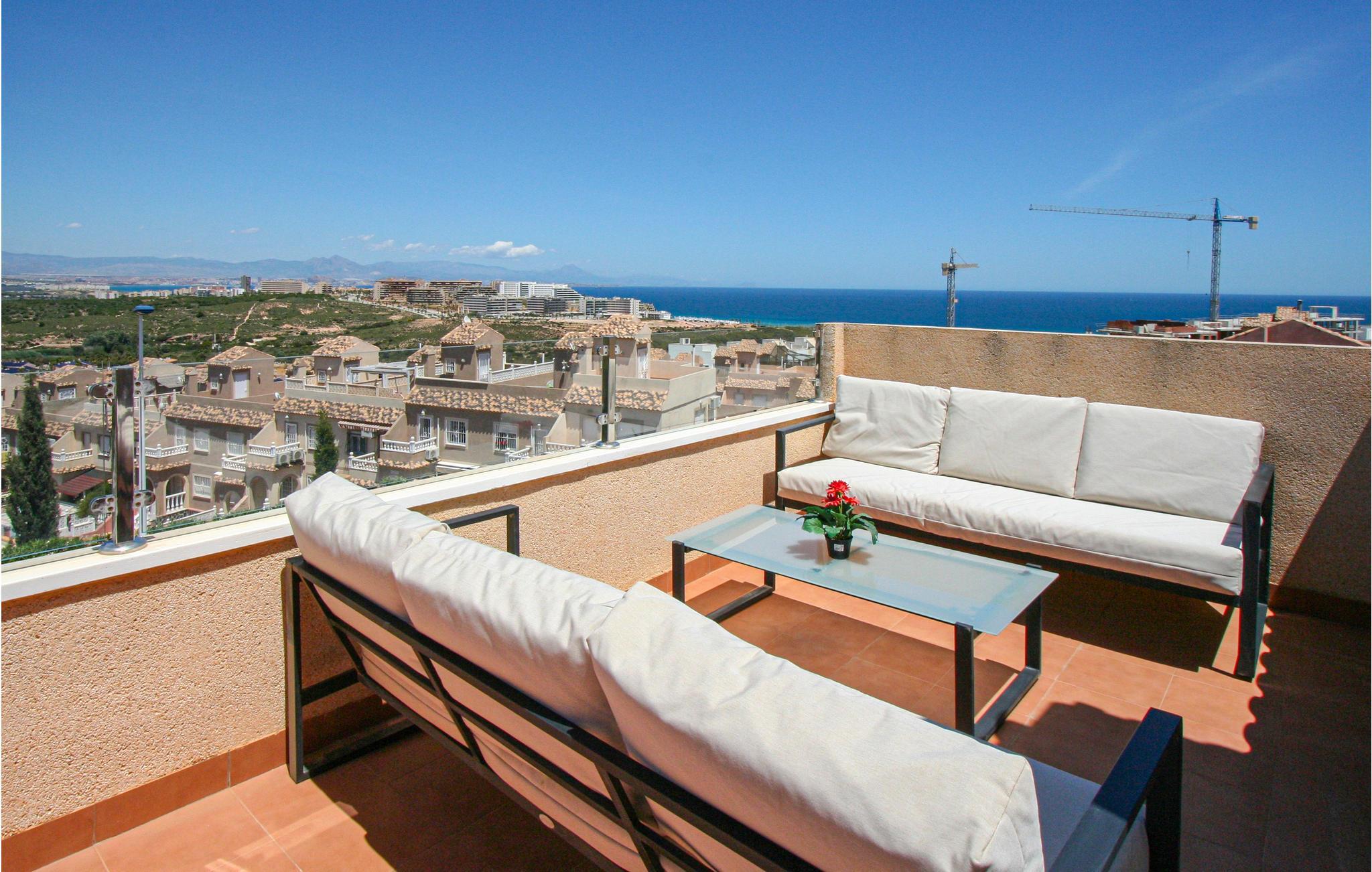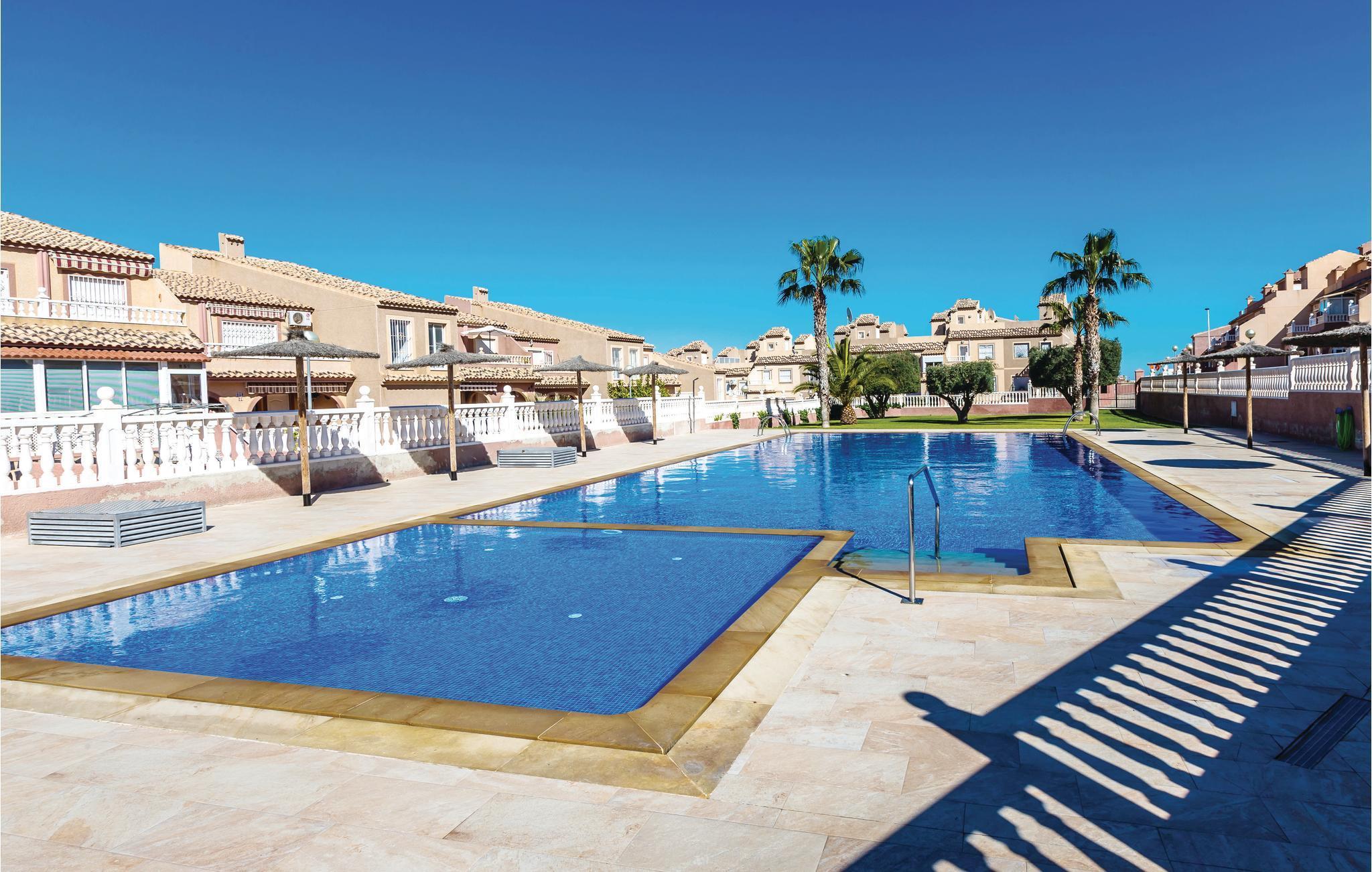 Dette charmerende ferierækkehus med terrasse, balkon og tre soveværelser ligger ikke langt fra den paradisiske strand Carabassí, som er en af de skønneste strande langs Costa Blanca. Nyd at gå ture i strandkanten langs klitter og pinjeskove, dyrk vandsport på og i vandet og nyd en drink eller en kop kaffe på en af de mange strandbarer. I kan også hoppe en tur i den fælles pool og bagefter tage solbad i en behagelig solstol. Holder I af natur, så er der meget at se og opleve: Det smukke naturlandskab Clot de Galvany med sin unikke flora og fauna er ikke langt væk. Gå også ture hvor I måske kan opleve en af bunkerne, med historie tilbage til den spanske borgerkrig.