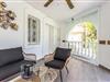 Det grønne, indhegnede udendørsområde med flere terrasser og hyggelige hjørner bliver jeres skønne oase på ferien. Læn jer tilbage under parasollen med en iskold forfriskning og tag en dukkert i poolen, når I føler for det. Senere kan I samles på den store veranda med grill og nyde aftenen i godt selskab.
