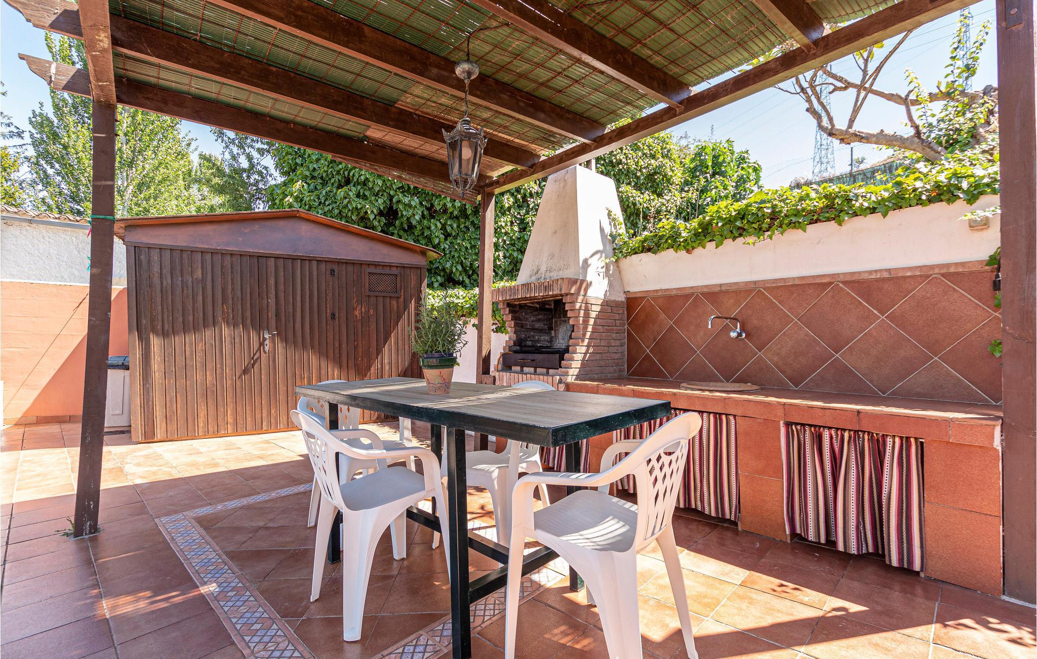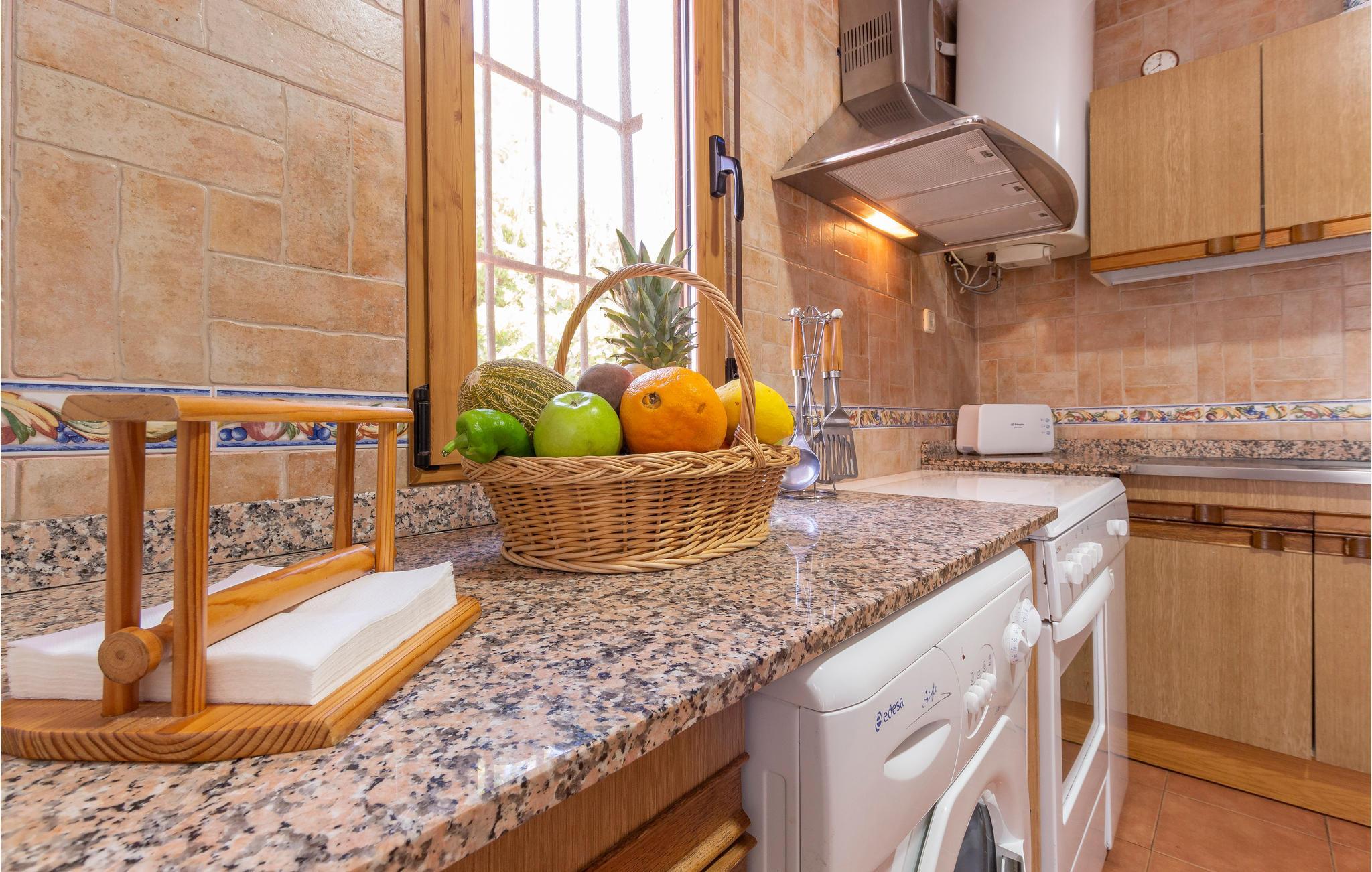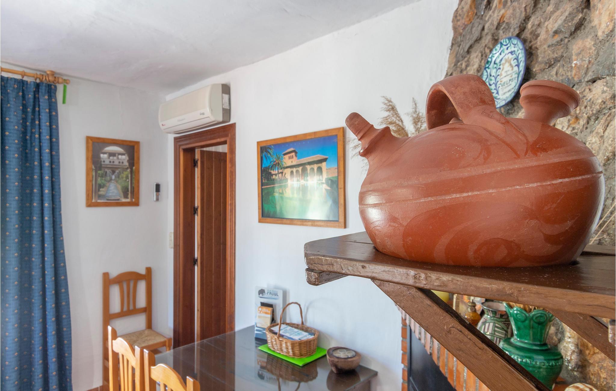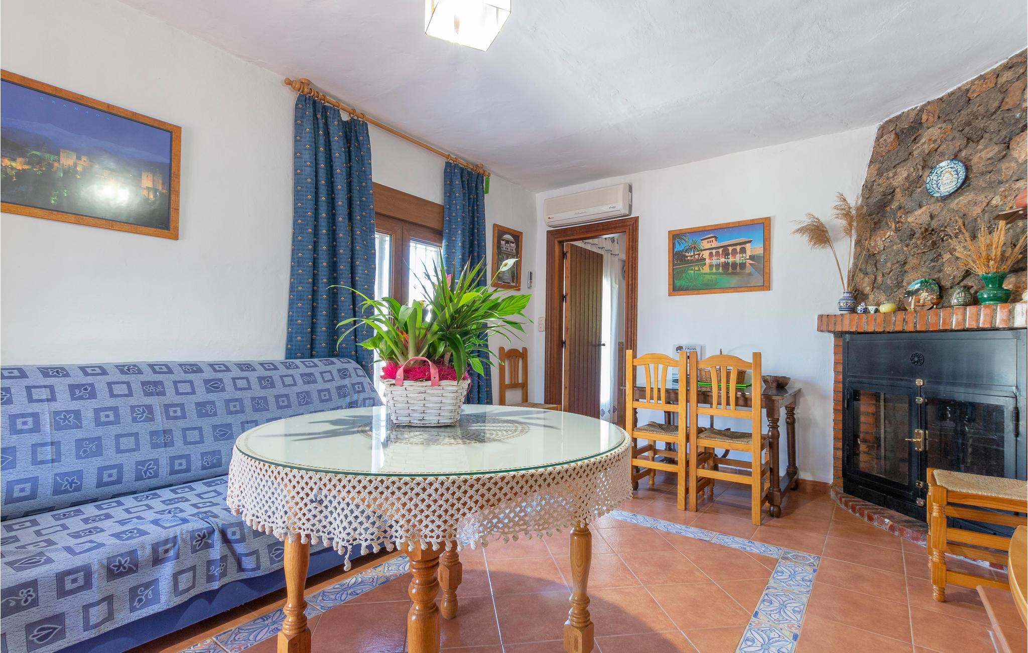 Dette hus er hyggeligt indrettet, så her finder I alt, hvad I behøver til et vellykket ophold. Feriehuset har to soveværelser og plads til 4fire personer. På kølige aftener kan I sætte jer til rette sammen foran pejsen. Klimaanlægget sørger for en behagelig temperatur, selv på varme sommerdage.