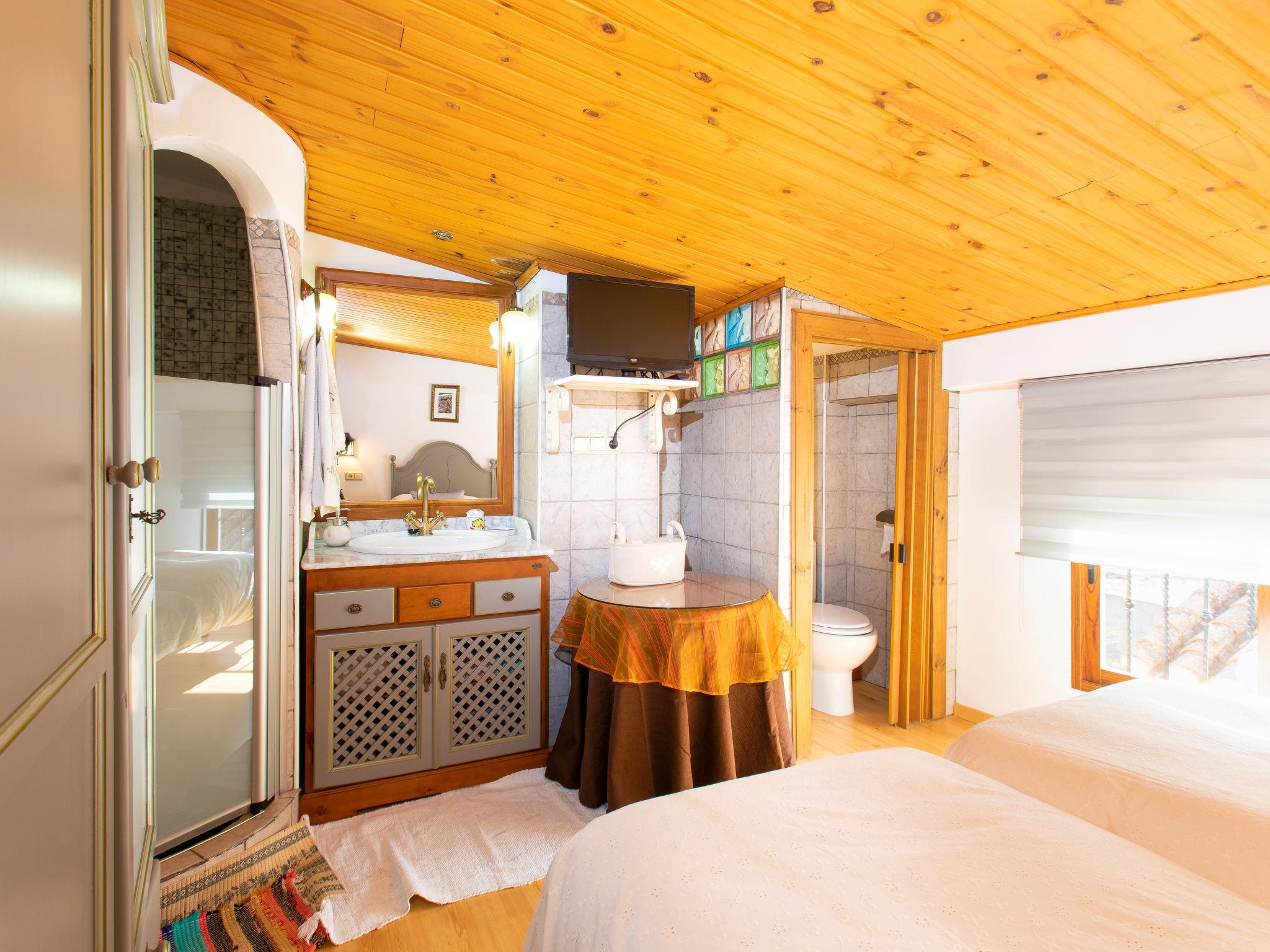 "Elvira", 4-room house 100 m2. Spacious and bright, comfortable and tasteful furnishings: living/dining room with TV, digital TV and wood-burning stove. Exit to the terrace with shower/WC, TV and wood-burning stove. Kitchen (oven, dishwasher, 3 gas rings, toaster, kettle, microwave, freezer, electric coffee machine). 3 showers/WC, sep. WC. Heating. Upper floor: 1 room with 2 beds (90 cm, length 190 cm), shower/WC and electric heating. 1 room with 1 french bed (135 cm, length 190 cm), bath/shower/WC and electric heating. 1 room with 2 beds (90 cm, length 190 cm), bath/shower/WC and electric heating. View of the mountains. Facilities: washing machine, iron, children's high chair, baby cot, hair dryer. Internet (WiFi, free). CTC2022255458 // Reg. Nr.: ESFCTU000018011000882793000000000000000VTAR/GR/026606