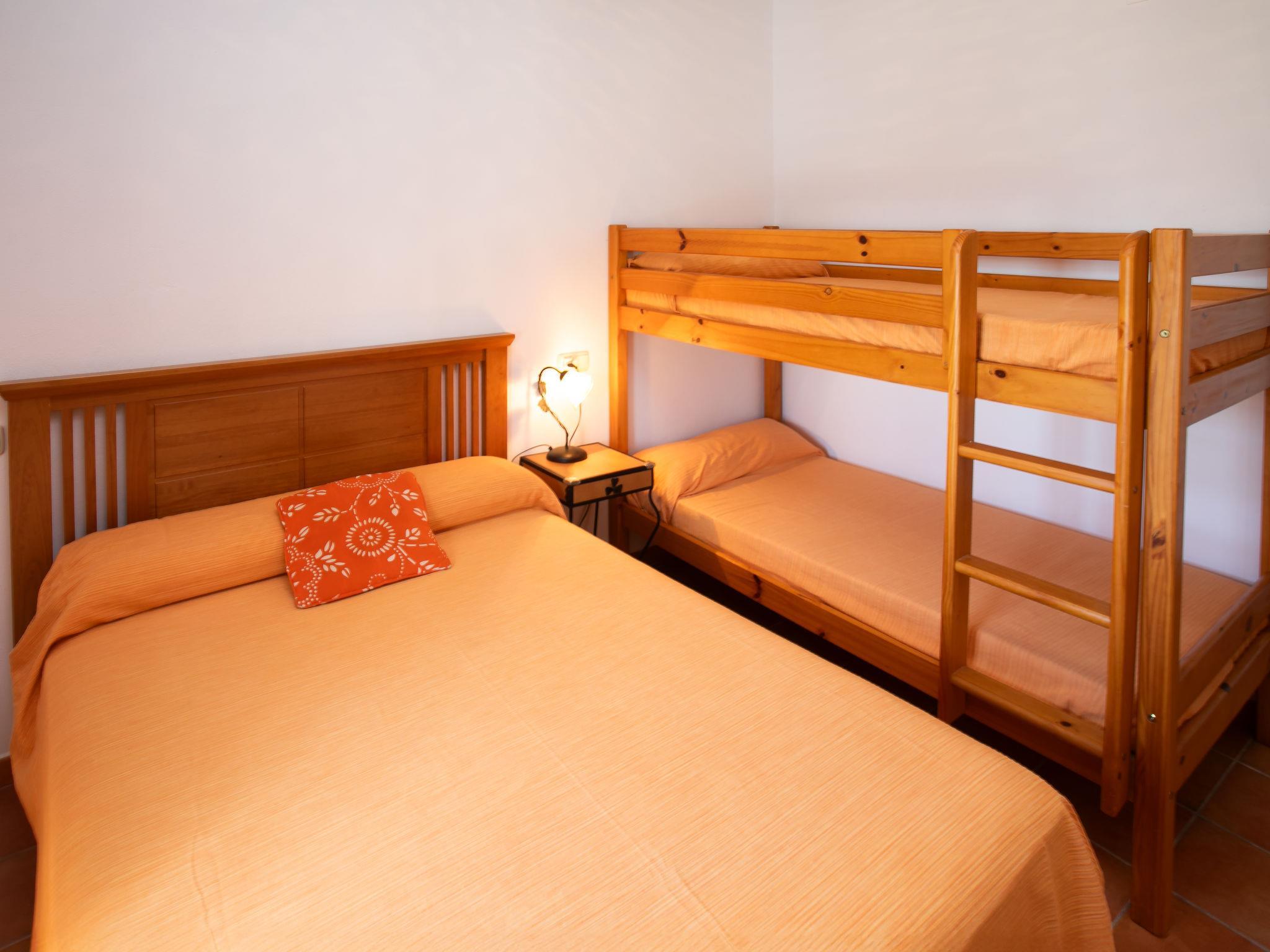 "Isabel", 3-room house 60 m2, on the ground floor. Practical and comfortable furnishings: living/dining room with open-hearth fireplace, dining table, digital TV and flat screen. 1 room with 1 x 2 bunk beds (90 cm, length 190 cm), 1 french bed (135 cm, length 190 cm). 1 room with 1 french bed (135 cm, length 190 cm). Open kitchen (dishwasher, 4 ceramic glass hob hotplates, toaster, kettle, microwave, freezer, grill, electric coffee machine, Capsules for coffee machine (Nespresso) extra). Shower/WC. Terrace. Terrace furniture, barbecue, deck chairs. View of the mountains. Facilities: washing machine, iron, hair dryer. Internet (WiFi, free). Suitable for families. Maximum 1 pet/ dog allowed. VTAR/GR/03211