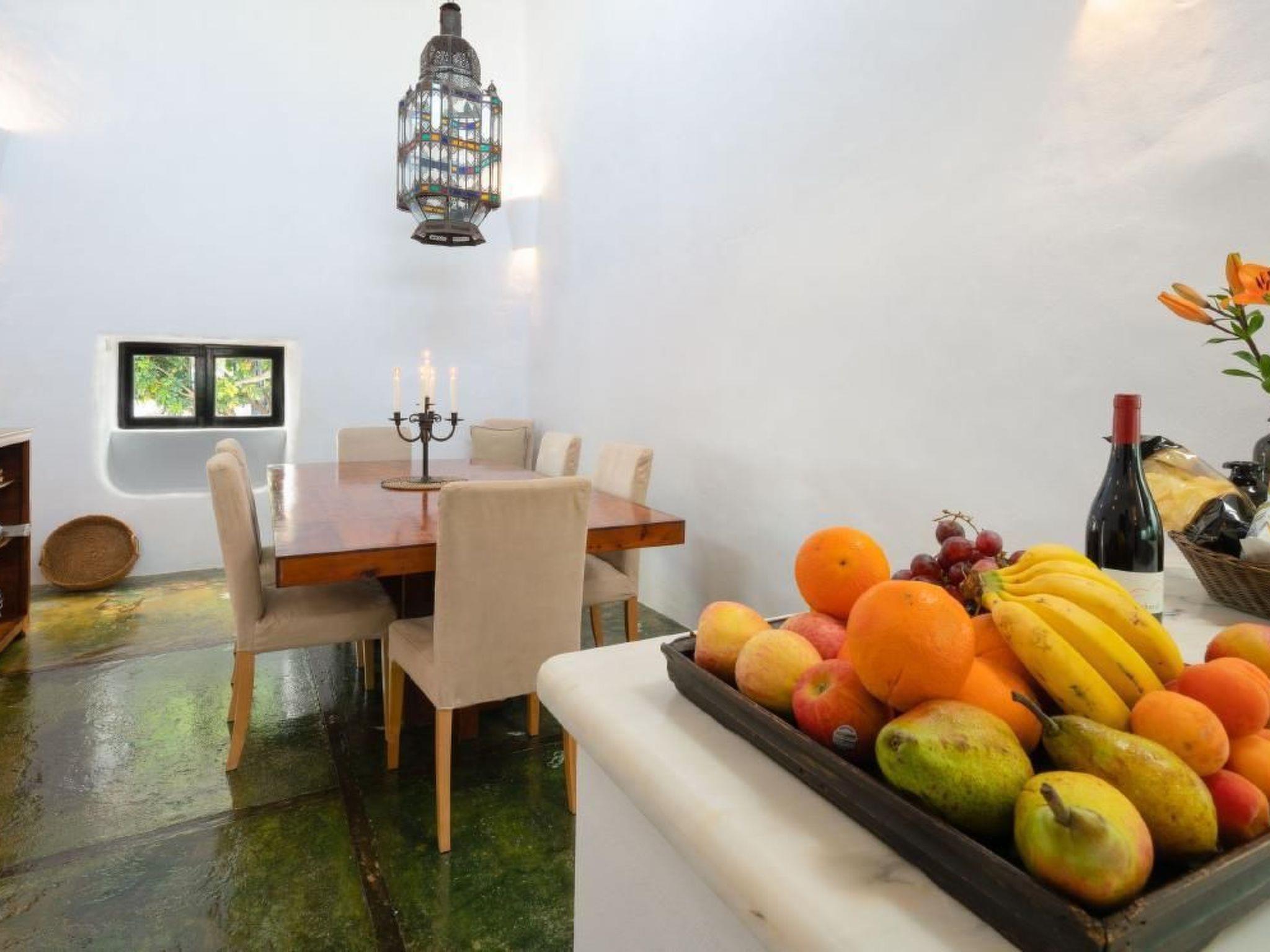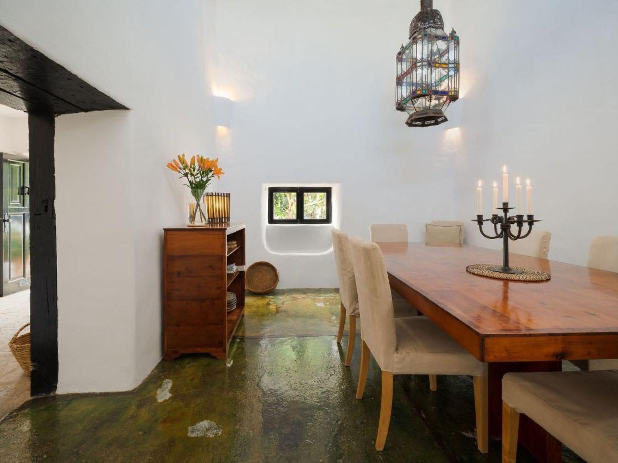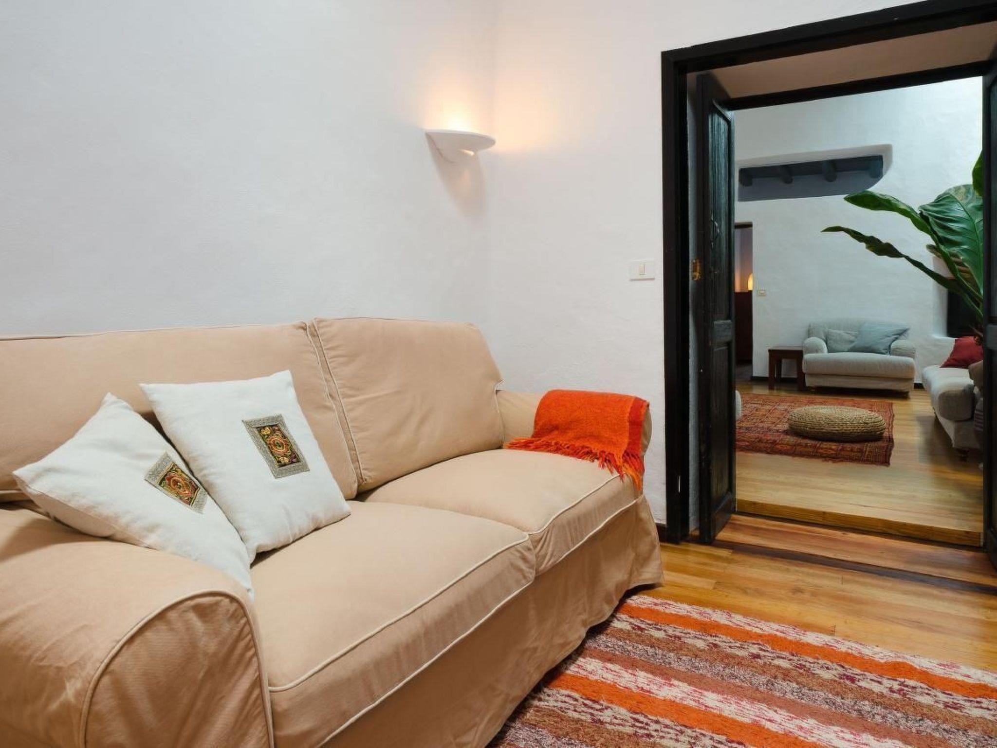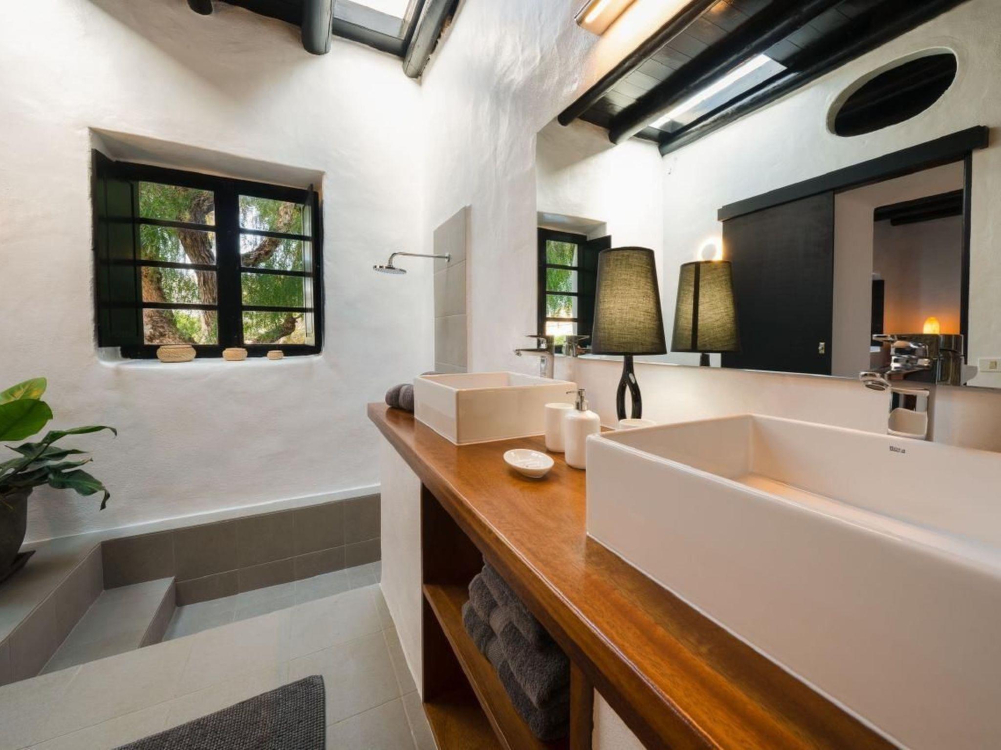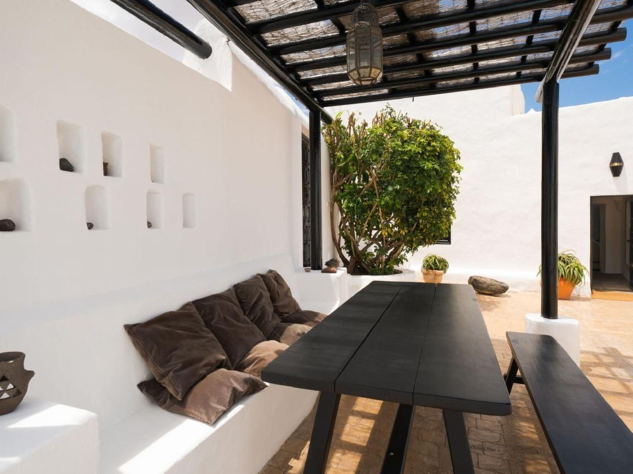 The 200-year-old farmhouse is situated on a 7,500 m2 finca (plot of land). Despite a complete remodelling, the charm and original character of this old house has been preserved. The mature garden surrounding the house is planted with Canary palms and Mediterranean plants and trees, a heated pool is located in the very private part of the second terrace and provides space for total relaxation.Guatiza is a small old village with about 400 inhabitants, which nestles harmoniously in a valley with its white houses. It is located in the lower northern part of the island and forms the backdrop for the 200-year-old, completely renovated farmhouse. The artist Cesar Manrique planned and designed an interesting cactus garden in Guatiza, making the small village famous. The villa is located somewhat off the main village road (a well-stocked supermarket is a 5-minute walk away), embedded in the typical rural everyday life of the village, and the kitchen and dining room are very spacious and laid out in one area. The green-pigmented cement floor, the large stainless steel cooker and the bright country-style kitchen offer the perfect blend of modern quality of life and original country style with a Moroccan influence. Eight people can sit comfortably at the handmade cedar wood table and the spacious living room with an integrated fireplace is very inviting. The wooden beamed ceilings in the living room are around 8 metres high. Sofas and armchairs come from Italy. There are Moroccan carpets in all rooms. The very high ceilings of the individual rooms with their original plastered walls create an open and pleasant ambience and emphasise the harmoniously designed interior. You will find a successful, stylish and comfortable feel-good atmosphere.in the front area is a patio with heated pool. This area is not visible from the outside and therefore creates a very private atmosphere. An old olive tree, planted tubs and a pergola with a wooden table and seating complete the picture. There are also four wooden sun loungers and a gas barbecue. At the rear is a large garden with mature trees, an exotic mix of flowers and wonderful views of the volcanic mountains. You can also admire unique sunsets from the spacious wooden terrace. There are also additional sun loungers and seating here. The exclusive villa with its harmonious integrity of old and modern provides the perfect setting for a peaceful, relaxing and comfortable holiday. The double garage with automatic garage door contains mountain bikes, a surfboard and a boogie board as well as tennis rackets and 2 sets of golf clubs. In addition to a sauna, there is a fully equipped fitness room. In the adjoining laundry room there is a washing machine and ironing equipment. Beach towels are also stored there. The following baby items are also provided at no extra cost: