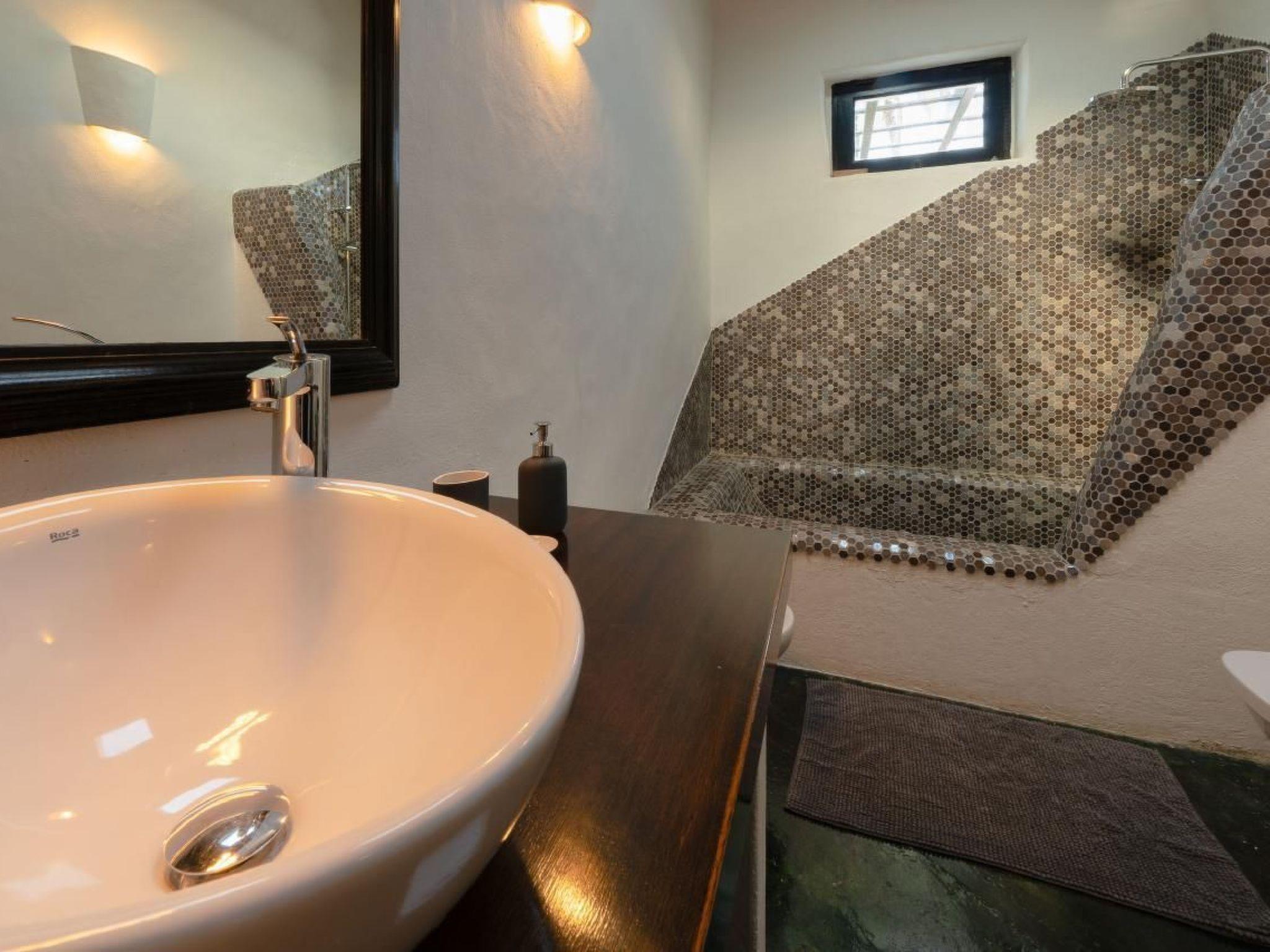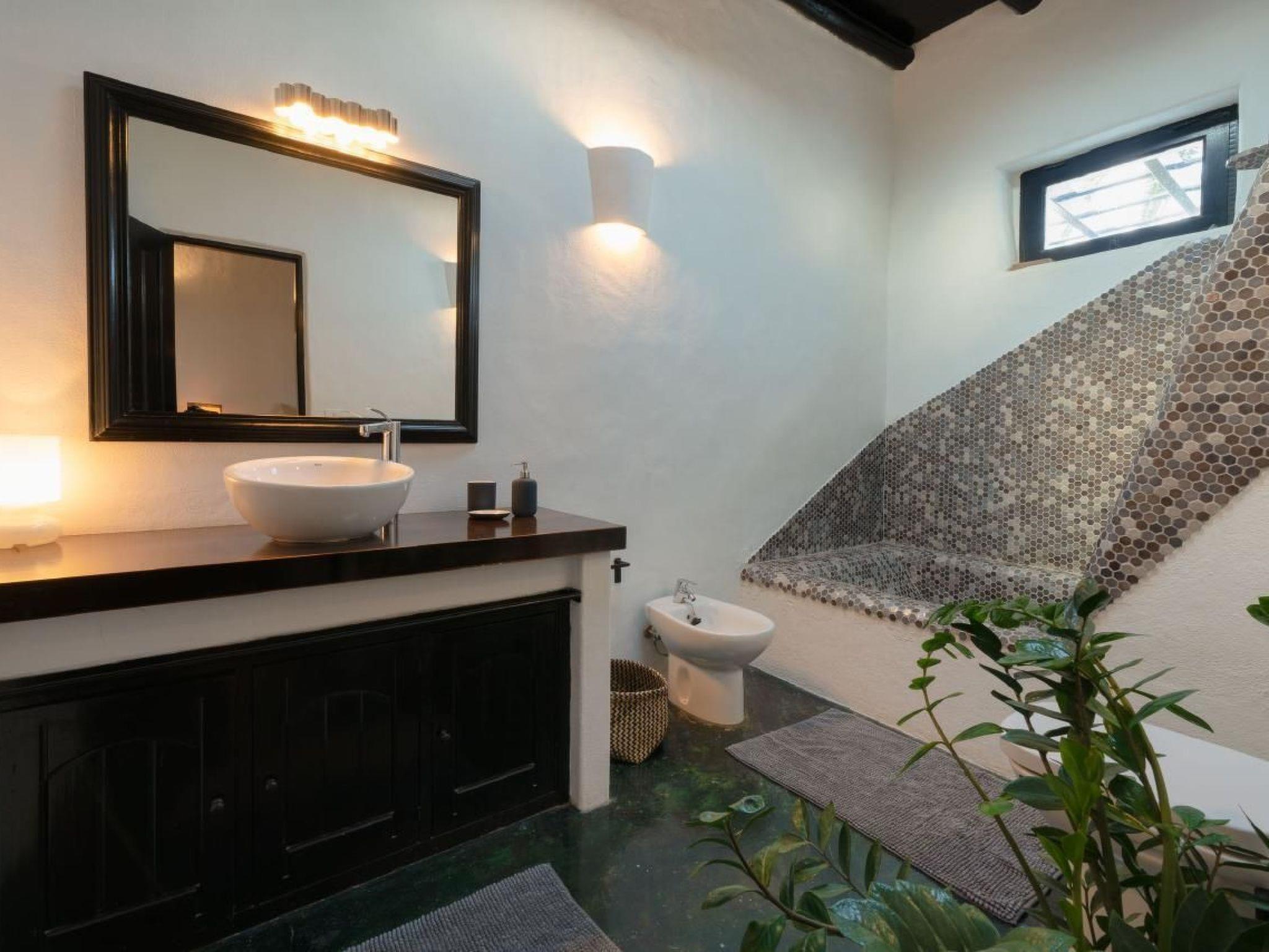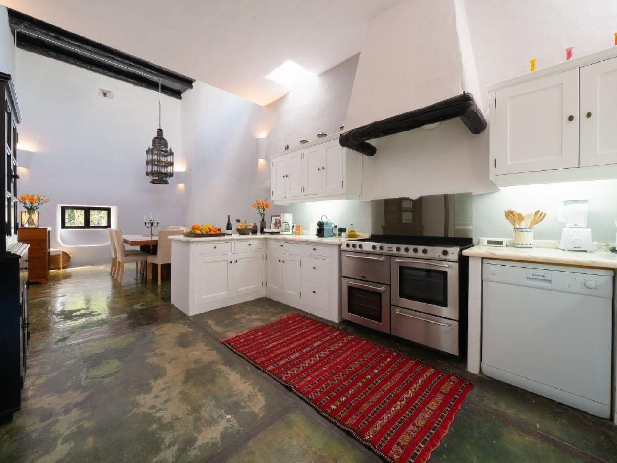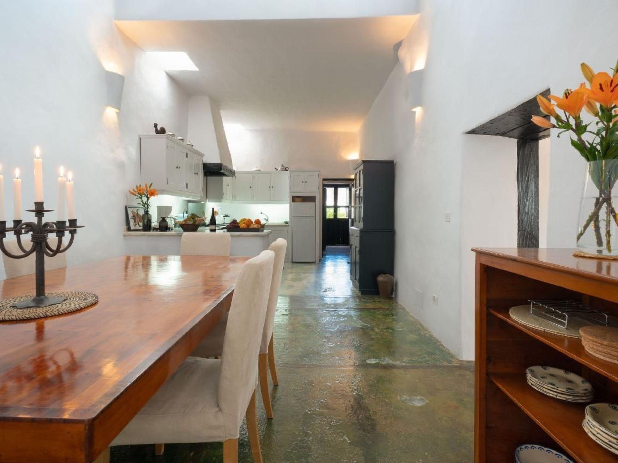 The 200-year-old farmhouse is situated on a 7,500 m2 finca (plot of land). Despite a complete remodelling, the charm and original character of this old house has been preserved. The mature garden surrounding the house is planted with Canary palms and Mediterranean plants and trees, a heated pool is located in the very private part of the second terrace and provides space for total relaxation.Guatiza is a small old village with about 400 inhabitants, which nestles harmoniously in a valley with its white houses. It is located in the lower northern part of the island and forms the backdrop for the 200-year-old, completely renovated farmhouse. The artist Cesar Manrique planned and designed an interesting cactus garden in Guatiza, making the small village famous. The villa is located somewhat off the main village road (a well-stocked supermarket is a 5-minute walk away), embedded in the typical rural everyday life of the village, and the kitchen and dining room are very spacious and laid out in one area. The green-pigmented cement floor, the large stainless steel cooker and the bright country-style kitchen offer the perfect blend of modern quality of life and original country style with a Moroccan influence. Eight people can sit comfortably at the handmade cedar wood table and the spacious living room with an integrated fireplace is very inviting. The wooden beamed ceilings in the living room are around 8 metres high. Sofas and armchairs come from Italy. There are Moroccan carpets in all rooms. The very high ceilings of the individual rooms with their original plastered walls create an open and pleasant ambience and emphasise the harmoniously designed interior. You will find a successful, stylish and comfortable feel-good atmosphere.in the front area is a patio with heated pool. This area is not visible from the outside and therefore creates a very private atmosphere. An old olive tree, planted tubs and a pergola with a wooden table and seating complete the picture. There are also four wooden sun loungers and a gas barbecue. At the rear is a large garden with mature trees, an exotic mix of flowers and wonderful views of the volcanic mountains. You can also admire unique sunsets from the spacious wooden terrace. There are also additional sun loungers and seating here. The exclusive villa with its harmonious integrity of old and modern provides the perfect setting for a peaceful, relaxing and comfortable holiday. The double garage with automatic garage door contains mountain bikes, a surfboard and a boogie board as well as tennis rackets and 2 sets of golf clubs. In addition to a sauna, there is a fully equipped fitness room. In the adjoining laundry room there is a washing machine and ironing equipment. Beach towels are also stored there. The following baby items are also provided at no extra cost: