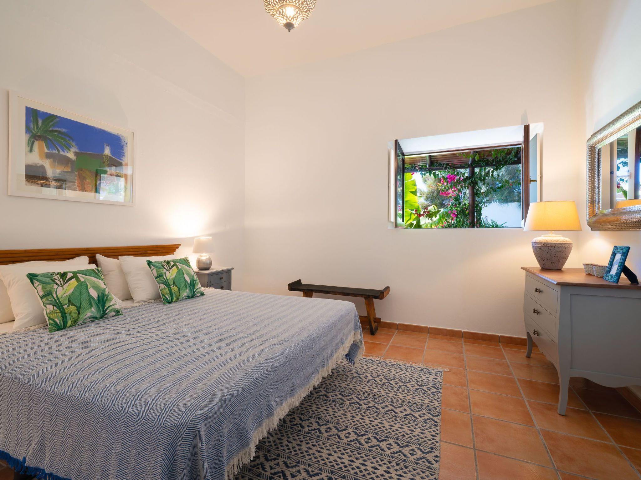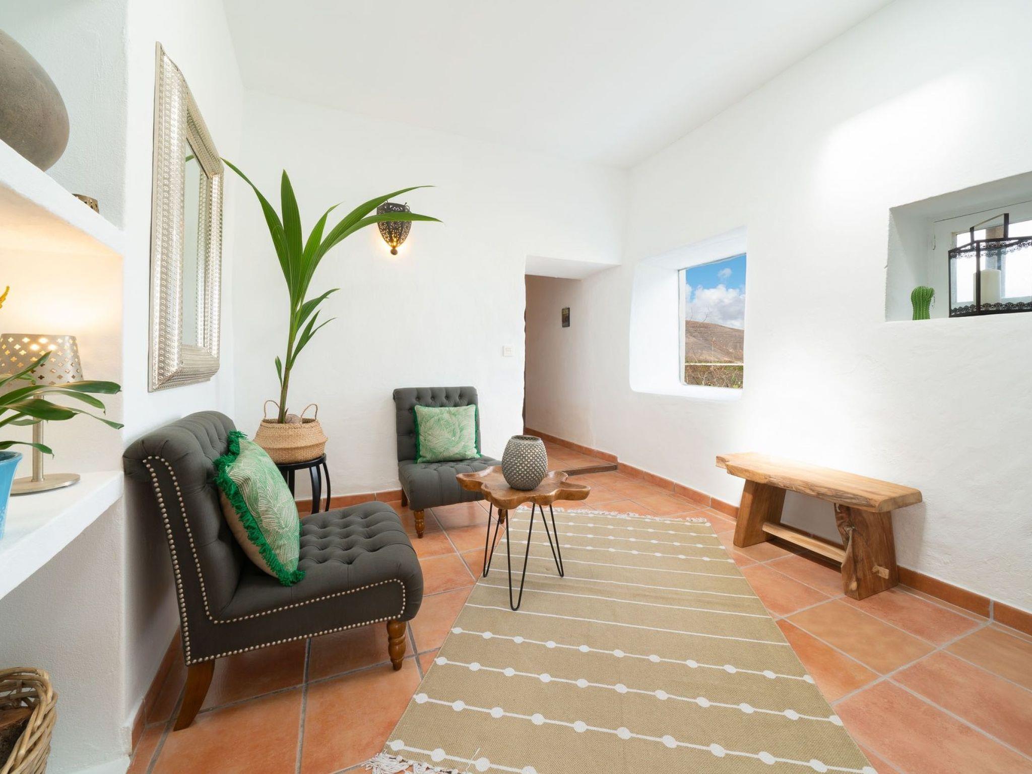Part of a 300 year old former farmhouse, the Garden Villa has been fully renovated and offers stylish and comfortable accommodation for four people in an idyllic and tranquil edge of village location, just a short drive from the beach at Arrieta and just five minutes’ stroll from Cesar Manrique´s world famous Cactus Garden.The Garden Villa is ideal for plant lovers as it boasts a large, lush and mature tropical courtyard garden featuring a wide array of palms, trees and shrubs. The Garden Villa offers guests total privacy and is divided into a number of different zones and chill out spaces, including a beautiful outdoor eating area with large built in BBQ and outdoor spa shower with sun loungers. Enabling guests to relax in style and enjoy a real feeling of outdoor living.Internally the property has been furnished and decorated to a high standard, offering guests free high-speed fibre optic Wi-Fi, Internet TV system and two wood burners for winter nights.The fully equipped kitchen has a dishwasher, microwave, washing machine, coffee maker and large fridge freezer, along with marble work surfaces gas hob and oven. The fully tiled bathroom has a large walk in shower and a separate dressing area with vanity table and chair, heated towel holders and floor to ceiling mirrors.There are two double bedrooms - the master is very large and has a large king size bed 180x200, wardrobe and chest of drawers. The second smaller bedroom has a king size bed and wardrobe. Beach towels are provided as well as bath towels and linen.The focal point of the Finca is an enormous kitchen/diner that has five-metre wide floor to ceiling sliding glass doors which open directly into the garden, offering amazing views, blending the indoors with the outdoors. This garden rooms houses a big kitchen/lounge/dining area and has a wood burner and Internet TV system. There is also a second lounge area which offers great, unspoiled views of the countryside and a wood burner.