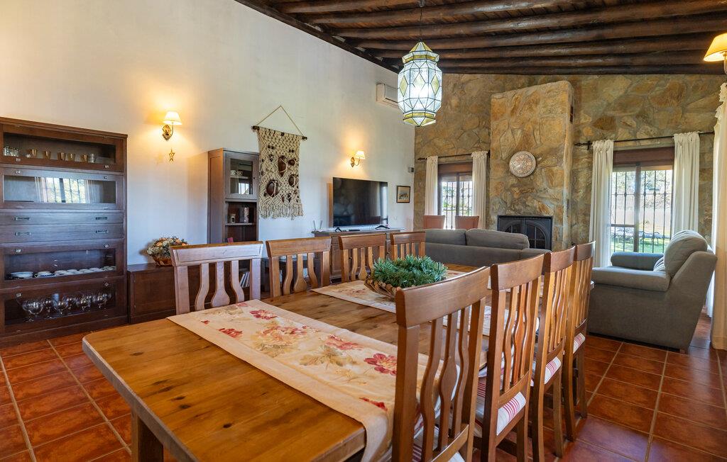 Huset ligger i naturskønne omgivelser og er det helt perfekte udgangspunkt for en ferie med fred, ro og masser af god komfort. Her kan I rejse som en større flok og nyde godt af indretningen, der byder på et vellykket samspil mellem rustikke detaljer og moderne faciliteter, der gør det nemt at slappe af her efter dagens udflugter. Lad amatørkokkene kræse om livretterne i køkkenet, mens andre dækker op til den store middag ved spisebordet. Senere kan I tænde op i pejsen og udfordre hele flokken til et bræt- eller kortspil eller sætte jer godt til rette i sofaen med en god film.