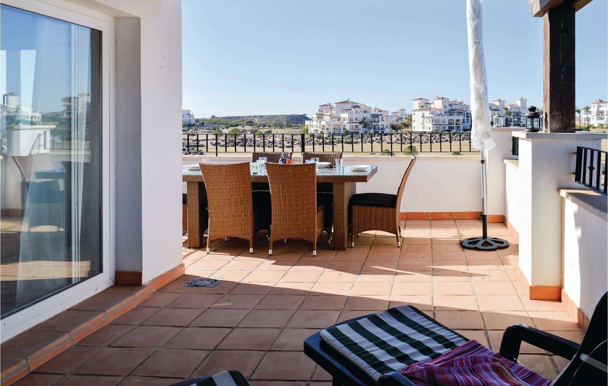 Denne skønne penthouselejlighed med stor L-formet terrasse har en fantastisk udsigt til golfresortet Hacienda Riquelme og en af områdets pools.