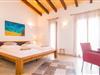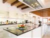 Det indre af huset afslører mange skatte. Og der er mange. Som for eksempel det professionelle "højglans" køkken, der ser ud som om det kom ud af en Miele-annonce: hvid maling, bordplader, hvor du kan se dig selv, det lange spisebord, der er perfekt til arbejdsmøder, eksklusivt tilbehør som en Miele kaffemaskine - her er der tænkt på alt. Sofaer i stilfuld grå eller varm hindbærrød inviterer dig til at slappe af, tage en kort siesta eller se fodbold på tv. Minimalistiske accenter og træelementer giver den enkle elegance den rigtige indstilling. Fra indgangen til venstre fører en lang gang dig til de første, kørestolsvenlige soveværelser, hver med et topmoderne badeværelse (hvoraf det ene har badekar), elegante træsenge og direkte adgang til terrassen . Stænk af farve fremhæver perfekt de subtile møbler. Ovenpå er der yderligere fem soveværelser med badeværelser, alle en-suite, og tre med udgang til en stor terrasse. Huset har yderligere to lejligheder på poolniveau, hver med to soveværelser og ensuite badeværelser til otte ekstra personer. Disse enheder kan bookes yderligere - yderligere information på forespørgsel. Mod et eventuelt gebyr kan du også holde fester af enhver art såsom bryllupper og andre arrangementer i villaen, men disse kræver forudgående samtykke og godkendelse fra ejeren.