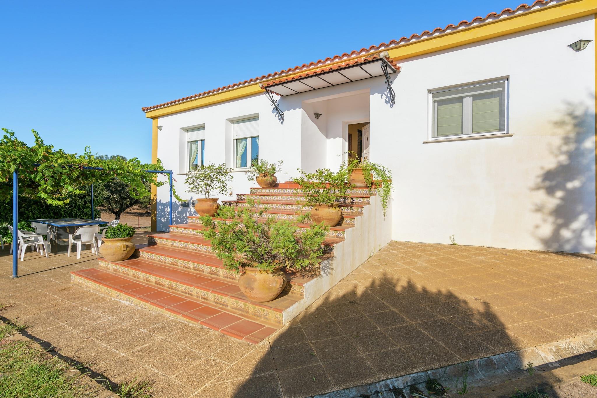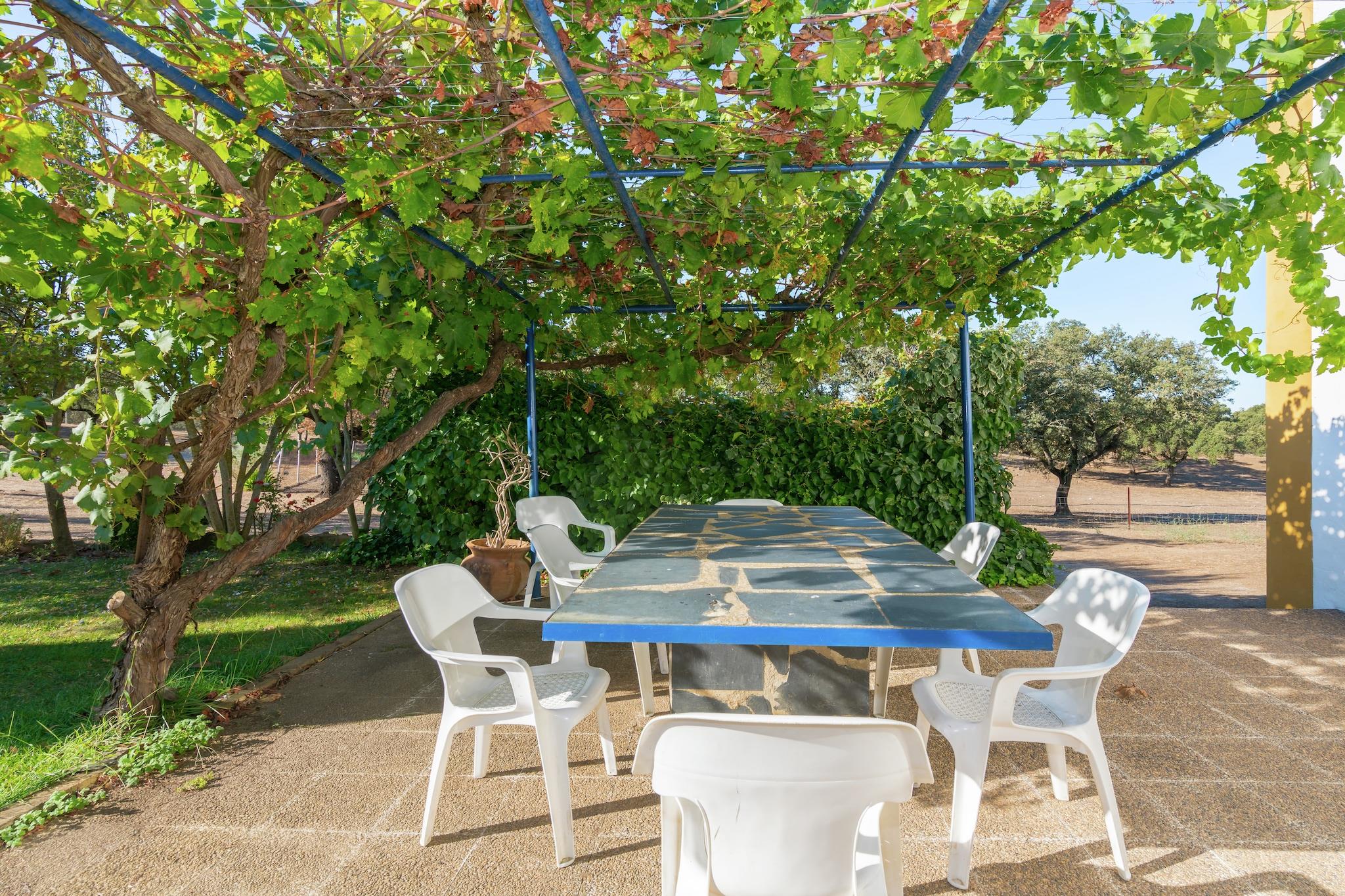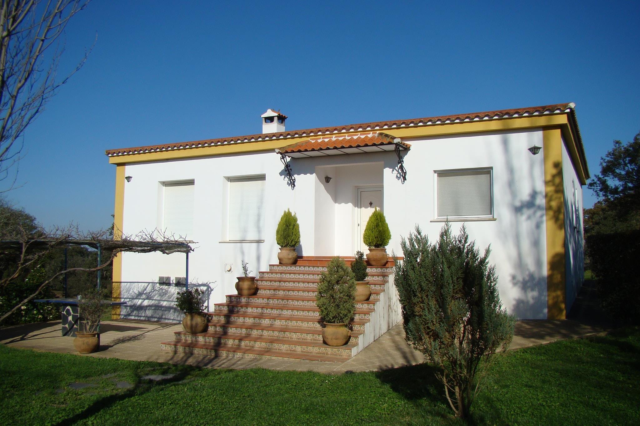 Dette 3-værelses feriehus ligger i Herrera de Alcántara ved floden Tajo. Hjemmet er udstyret med centralvarme og en fælles swimmingpool. Små familier og grupper på 6 vil bo her i komfort. Herrera de Alcántara ligger i hjertet af naturreservatet Tajo Internacional, i et beskyttet fugleområde. Ferieboligen er omgivet af lokal vegetation, jordbærtræer og rosmarinbuske. Der er forskellige aktiviteter som vandreture, cykling, ridning, jagt og fiskeri at nyde i området. Søen på 5 km er fantastisk til en dagstur. Restauranter ligger 9 km, mens supermarkeder ligger 10 km. Alle tre soveværelser har dobbeltsenge. Pejsen i stuen spreder varmen. På terrassen med grill kan du nyde sommeraftener. I haven kan du ligge med en bog og spille boldspil. 2 badeværelser står til din rådighed.