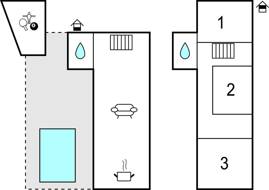 Soveværelse 12m2 (nr. 1) - 1 Soveplads. (Enkeltseng(e)). 2 Sovepladser. (Dobbeltseng(e)).