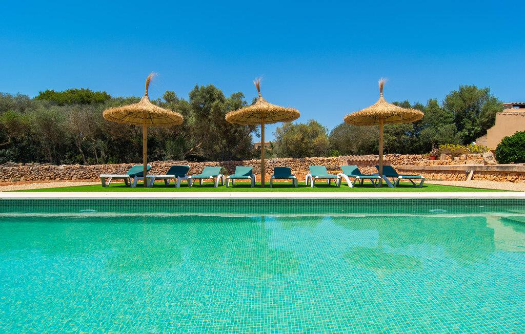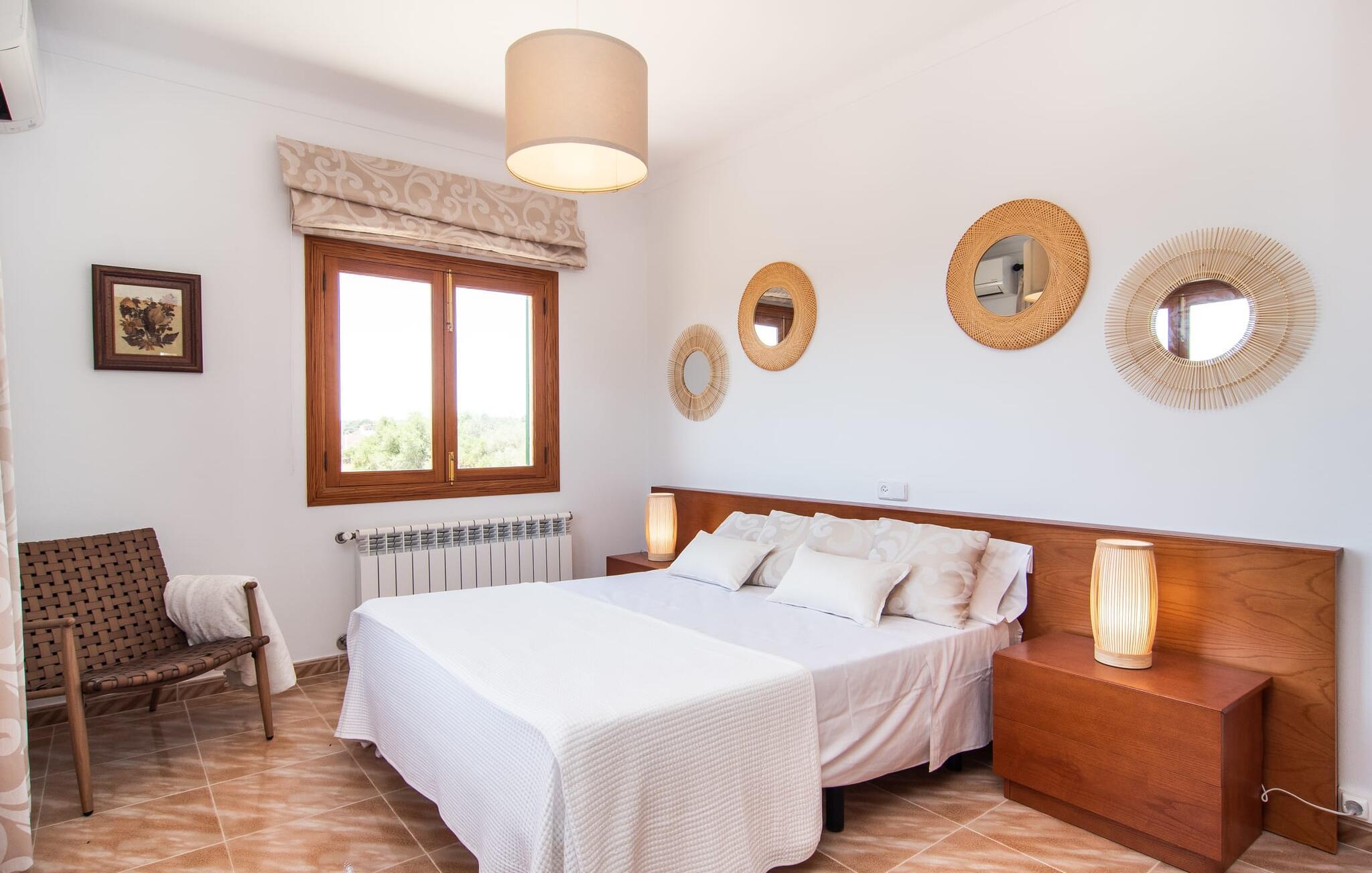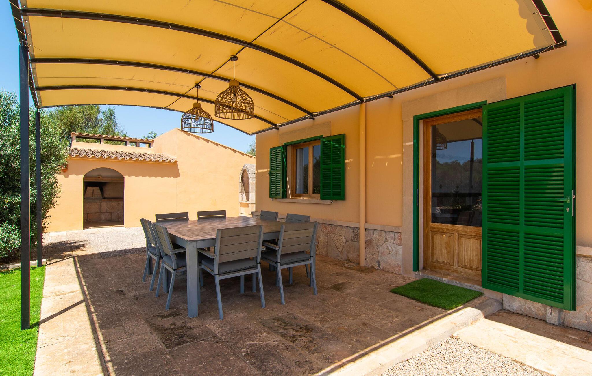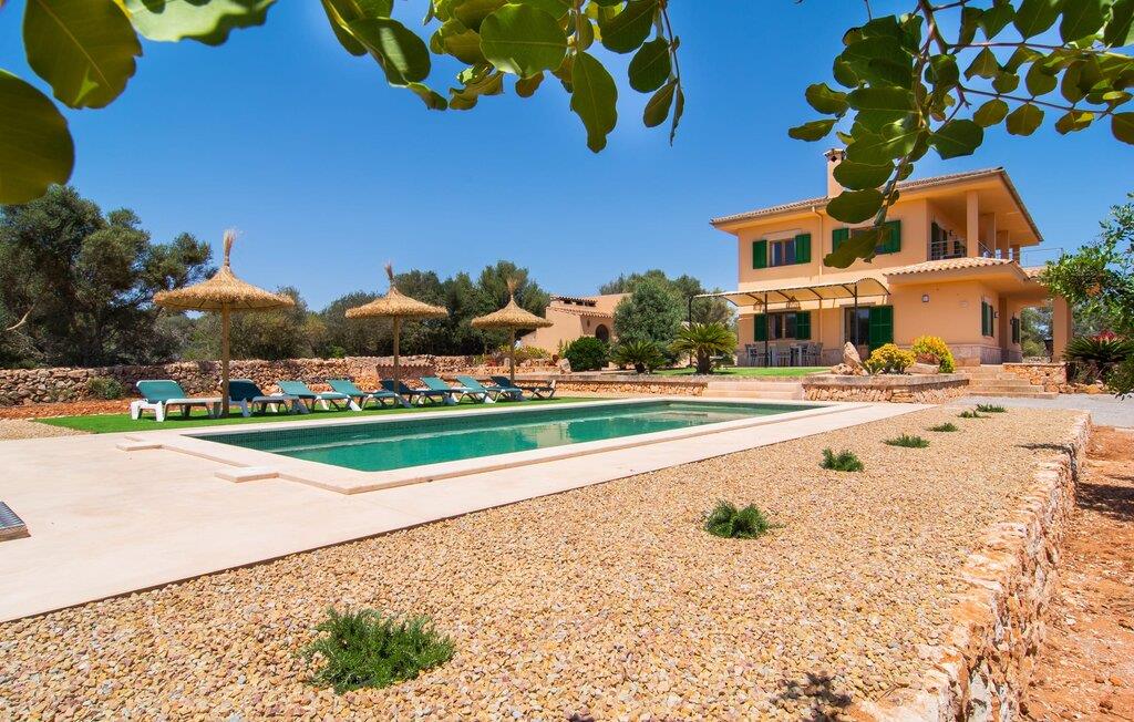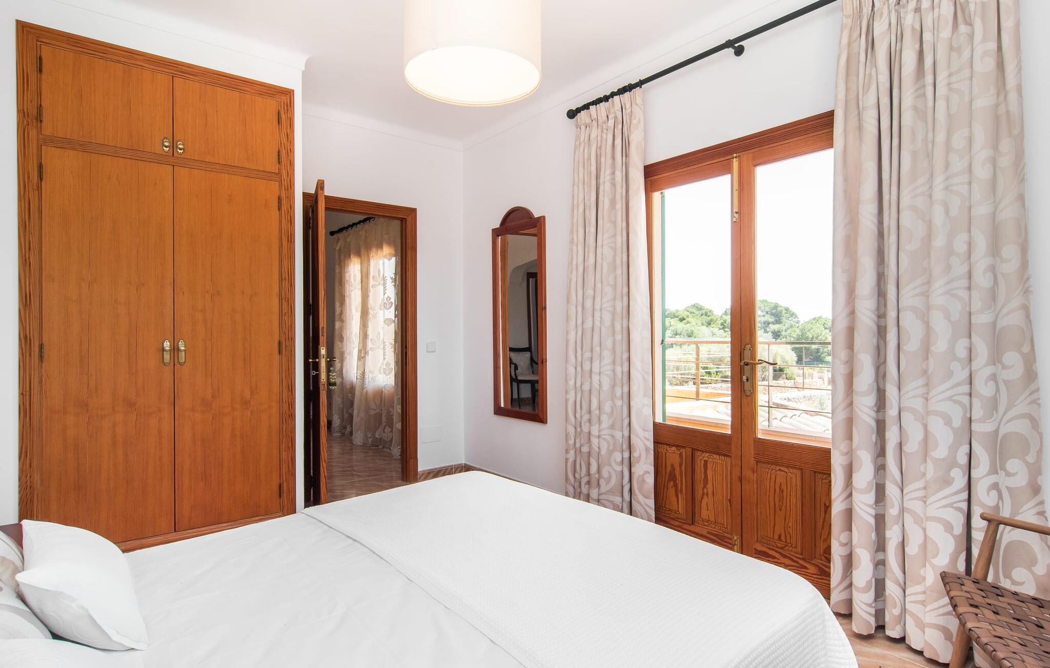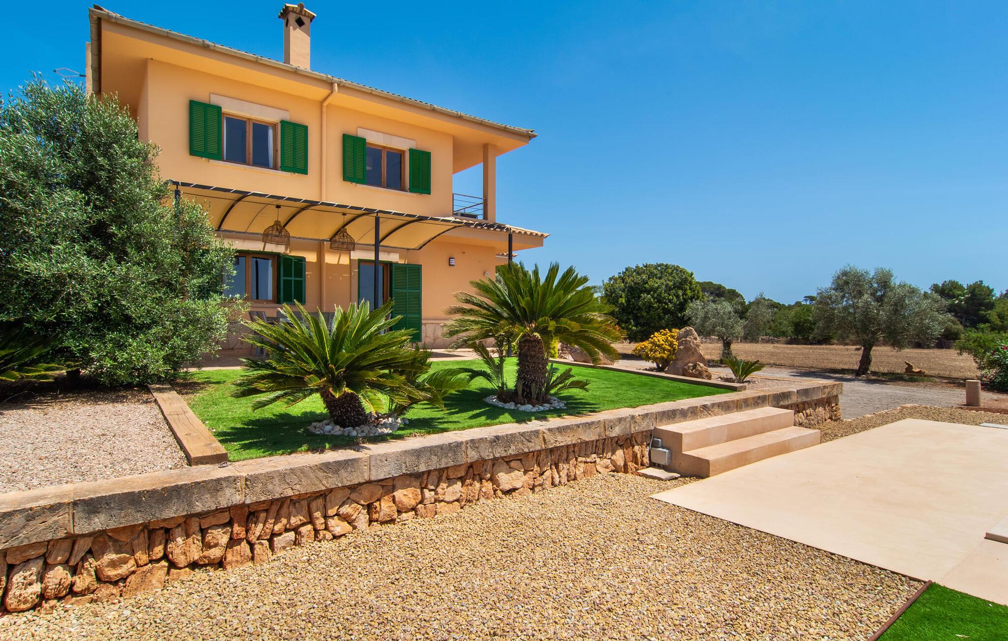 Hvis I værdsætter stort set uberørt og mangfoldig natur, men samtidig ikke vil gå glip af en badeferie, så er den familievenlige bondegård "Hort de Can Rafalet" lige noget for jer. På ejendommen omgivet af middelhavsflora vil I opleve absolut fred. Grønt så langt øjet rækker, med de imponerende saltmarker og megastranden Es Trenc ikke langt væk. Ferieejendommen byder på masser af udendørs plads, herunder en smuk mosaikbeklædt pool med tilhørende solterrasse. Her generer I ingen naboer, og I vil være fuldstændig uovervåget. Nyd aftenen på terrassen i skyggen af Toldo med dens rummelige spiseplads. Uanset om I er tidligt op eller sent op – den runde, delvist overdækkede veranda foran huset med traditionelle gyngestole inviterer jer til fuldt ud at nyde det hyggelige og indbydende feriehus på det sydlige Mallorca og lade blikket vandre. I kan også finde denne afslapning inde i den majestætiske feriegård. Kombinationen af mallorcansk landhusstil med moderne indretningsdetaljer kan betegnes som yderst vellykket. Et rummeligt indgangsparti med middelhavskarakter inviterer jer til at gå på opdagelse i huset. I stueplan finder I den hyggelige tv-stue, det dejligt store køkken-alrum med hyggelig spiseplads og et af de klimatiserede afslapningsrum. Et trendy badeværelse med brusekabine fuldender denne etage. Attraktivt boligtilbehør i landhusstil sætter også dygtige accenter på øverste etage. Det vidner de øvrige tre soveværelser også om, hvoraf to har direkte udgang til solbeskinnede altaner med fortryllende udsigt. To ekstra komfortable badeværelser (med bruser eller badekar) er en del af de forkælende grundfaciliteter i dette smukt beliggende feriehus. Den indvendige indretning af det rummelige feriehus er ideel til flere konstellationer med op til otte rejsende - altså to familier eller flere vennepar. Alle er velkomne på Hort de Can Rafalet! Den indbydende poolgård "Hort de Can Rafalet" imponerer med sin landlige ro mellem oliventræer og en historisk vindmølle, kombineret med den mest moderne komfort. Ejendommen har en førsteklasses beliggenhed i det sydlige Mallorca mellem den lille by Ses Salines og kystbyen Colònia de Sant Jordi. Stedets tiltrækningskraft ligger ikke kun i naturlige vidundere som saltmarkerne, men også i dets nærhed til drømmestranden Es Trenc. Dette er kun 10 minutter væk i bil. Aircondition er tilgængeligt i denne ejendom, men dets brug er begrænset til kl. 21.00 til 09.00. Ellers afregnes gebyret kontant på stedet.