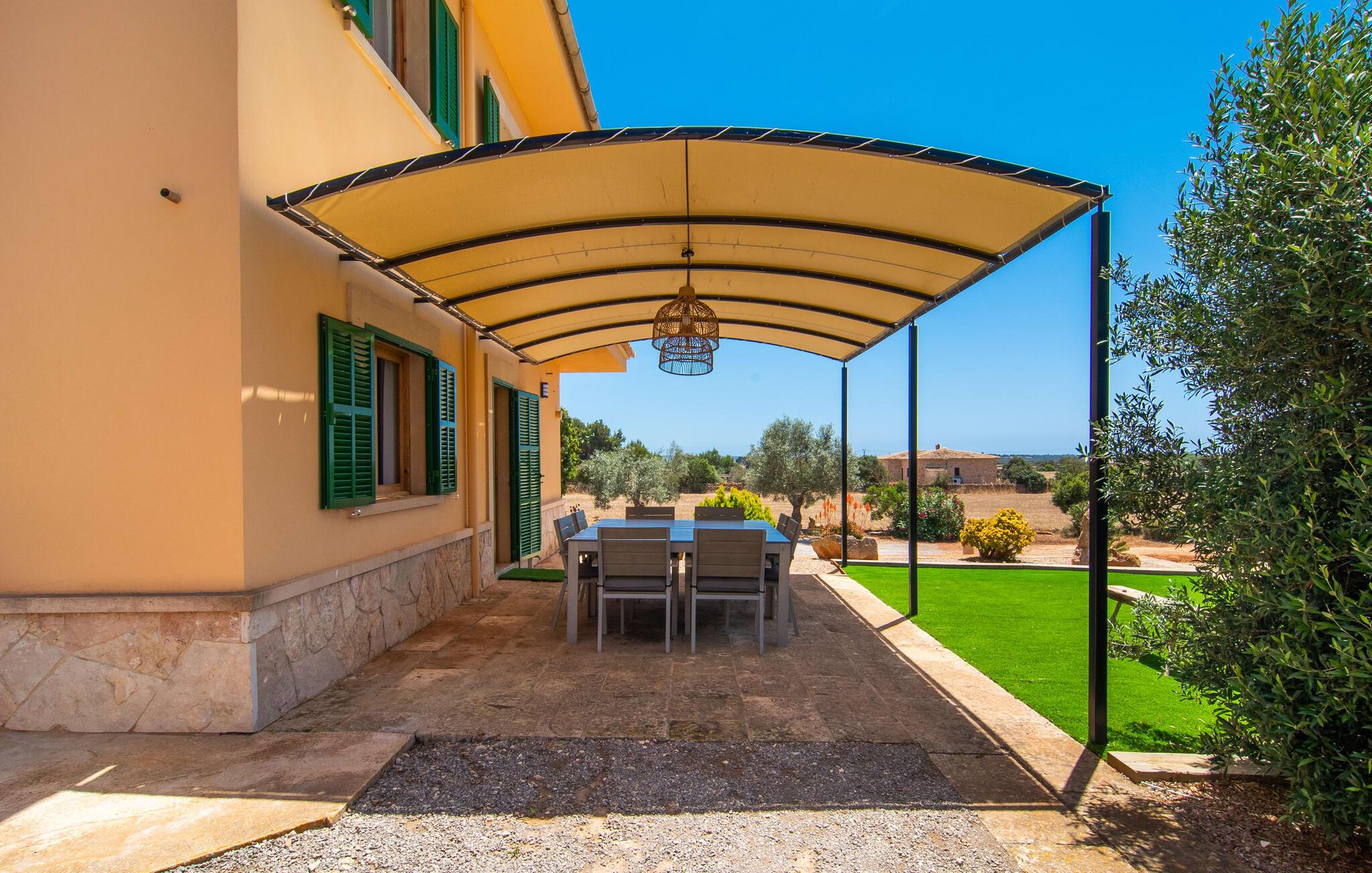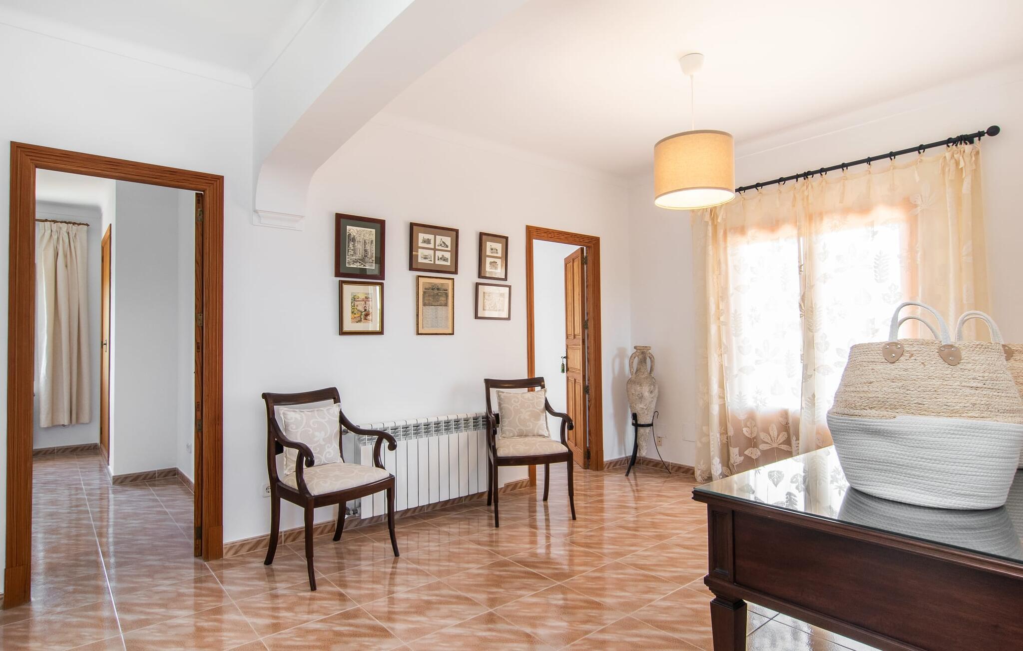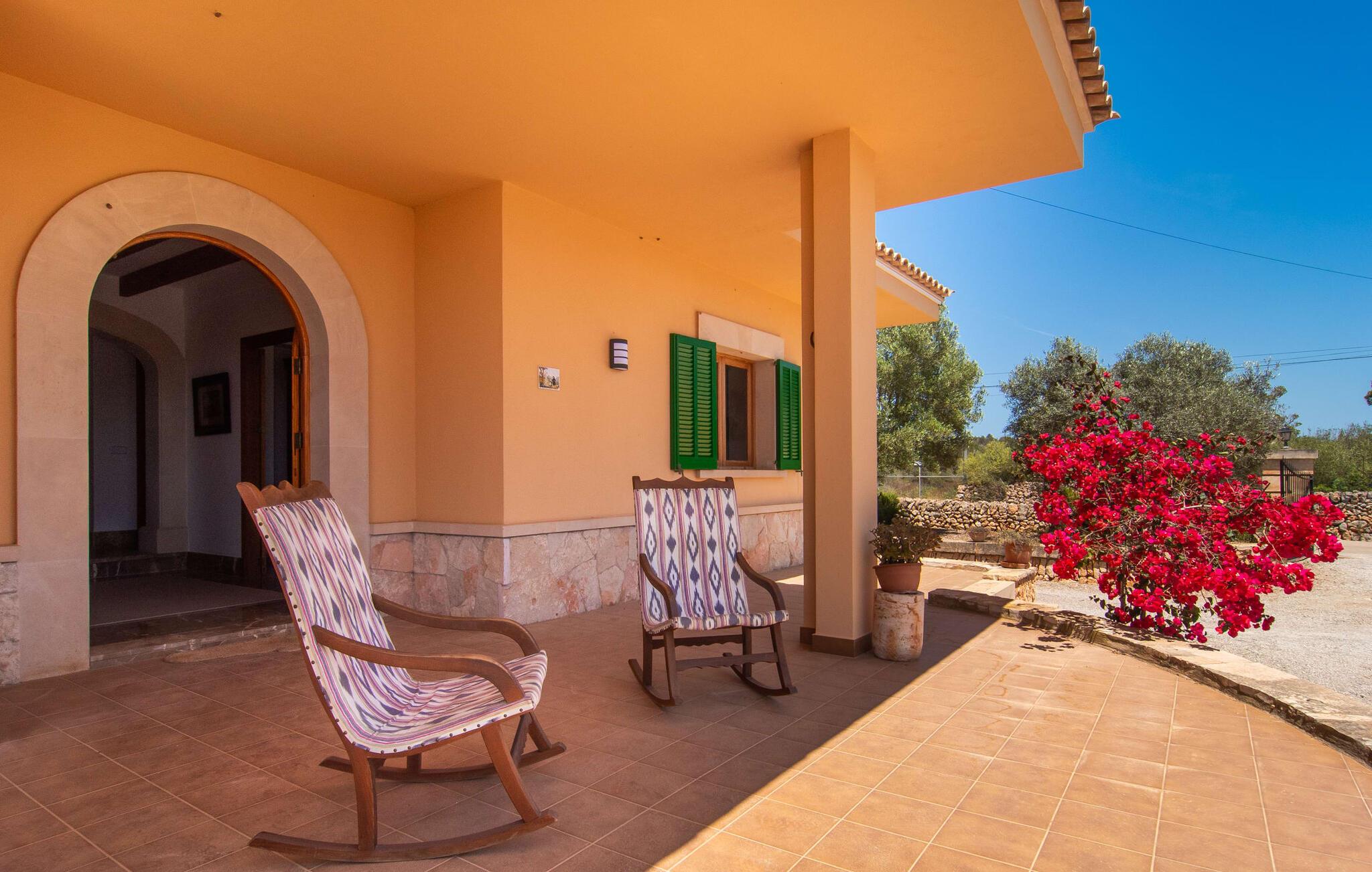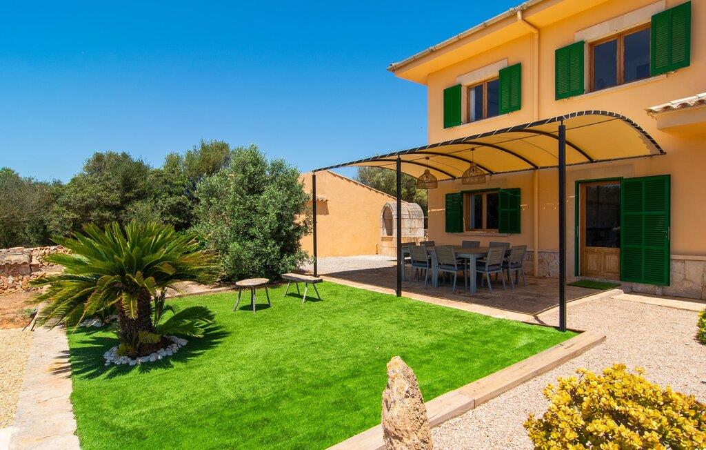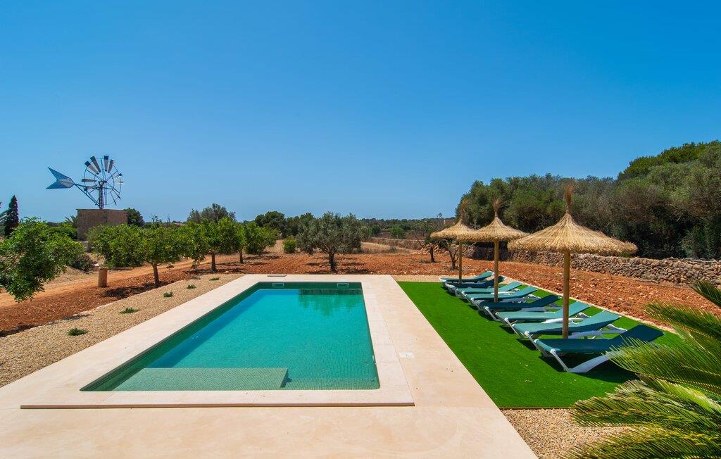 Hvis I værdsætter stort set uberørt og mangfoldig natur, men samtidig ikke vil gå glip af en badeferie, så er den familievenlige bondegård "Hort de Can Rafalet" lige noget for jer. På ejendommen omgivet af middelhavsflora vil I opleve absolut fred. Grønt så langt øjet rækker, med de imponerende saltmarker og megastranden Es Trenc ikke langt væk. Ferieejendommen byder på masser af udendørs plads, herunder en smuk mosaikbeklædt pool med tilhørende solterrasse. Her generer I ingen naboer, og I vil være fuldstændig uovervåget. Nyd aftenen på terrassen i skyggen af Toldo med dens rummelige spiseplads. Uanset om I er tidligt op eller sent op – den runde, delvist overdækkede veranda foran huset med traditionelle gyngestole inviterer jer til fuldt ud at nyde det hyggelige og indbydende feriehus på det sydlige Mallorca og lade blikket vandre. I kan også finde denne afslapning inde i den majestætiske feriegård. Kombinationen af mallorcansk landhusstil med moderne indretningsdetaljer kan betegnes som yderst vellykket. Et rummeligt indgangsparti med middelhavskarakter inviterer jer til at gå på opdagelse i huset. I stueplan finder I den hyggelige tv-stue, det dejligt store køkken-alrum med hyggelig spiseplads og et af de klimatiserede afslapningsrum. Et trendy badeværelse med brusekabine fuldender denne etage. Attraktivt boligtilbehør i landhusstil sætter også dygtige accenter på øverste etage. Det vidner de øvrige tre soveværelser også om, hvoraf to har direkte udgang til solbeskinnede altaner med fortryllende udsigt. To ekstra komfortable badeværelser (med bruser eller badekar) er en del af de forkælende grundfaciliteter i dette smukt beliggende feriehus. Den indvendige indretning af det rummelige feriehus er ideel til flere konstellationer med op til otte rejsende - altså to familier eller flere vennepar. Alle er velkomne på Hort de Can Rafalet! Den indbydende poolgård "Hort de Can Rafalet" imponerer med sin landlige ro mellem oliventræer og en historisk vindmølle, kombineret med den mest moderne komfort. Ejendommen har en førsteklasses beliggenhed i det sydlige Mallorca mellem den lille by Ses Salines og kystbyen Colònia de Sant Jordi. Stedets tiltrækningskraft ligger ikke kun i naturlige vidundere som saltmarkerne, men også i dets nærhed til drømmestranden Es Trenc. Dette er kun 10 minutter væk i bil. Aircondition er tilgængeligt i denne ejendom, men dets brug er begrænset til kl. 21.00 til 09.00. Ellers afregnes gebyret kontant på stedet.