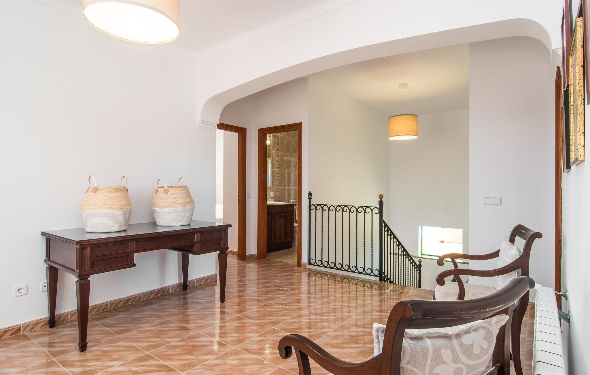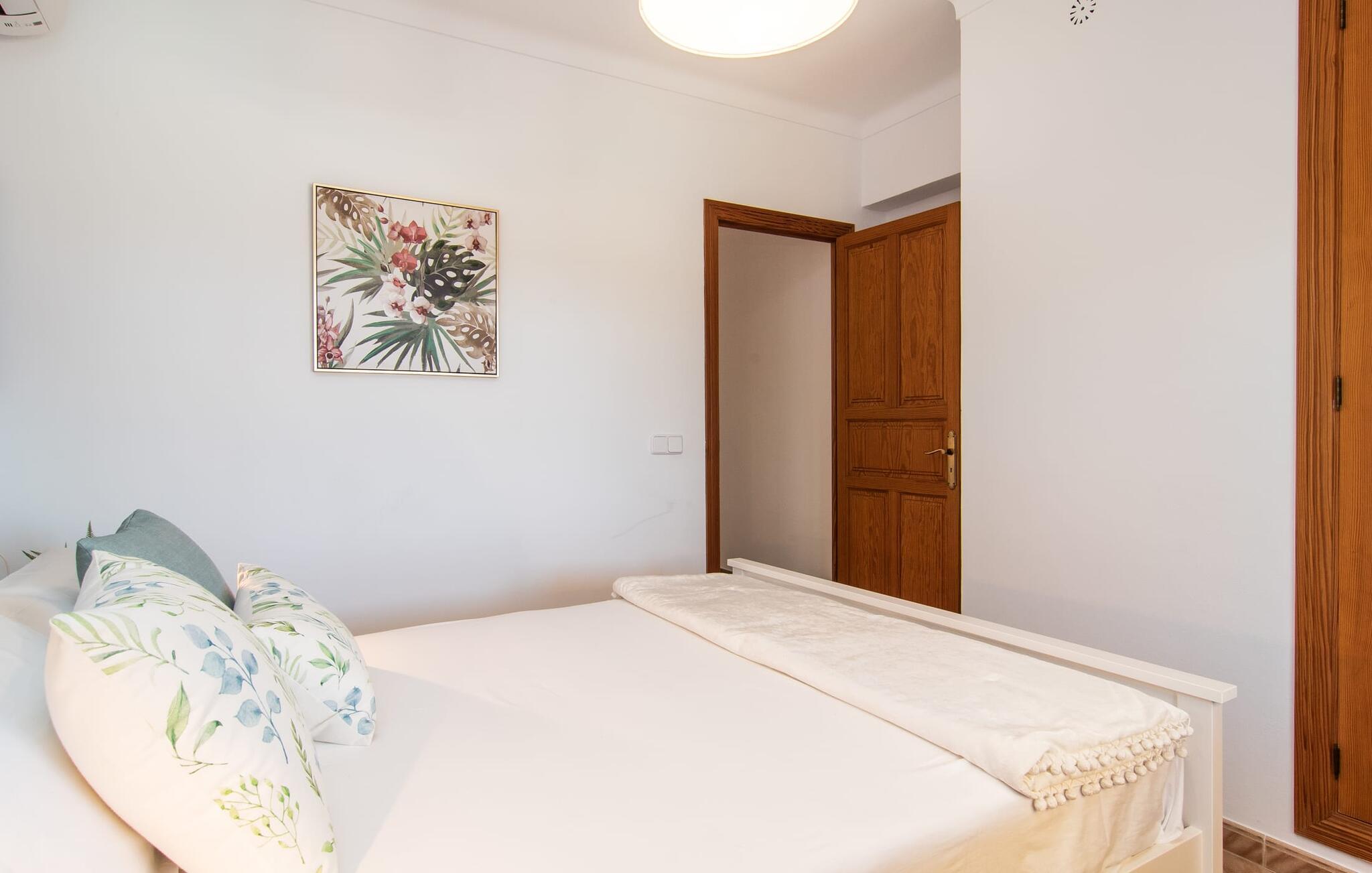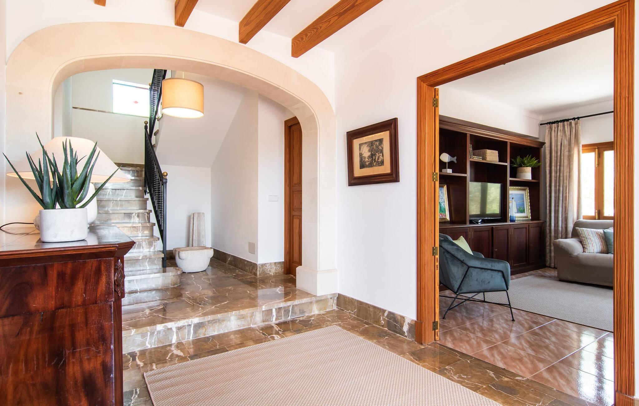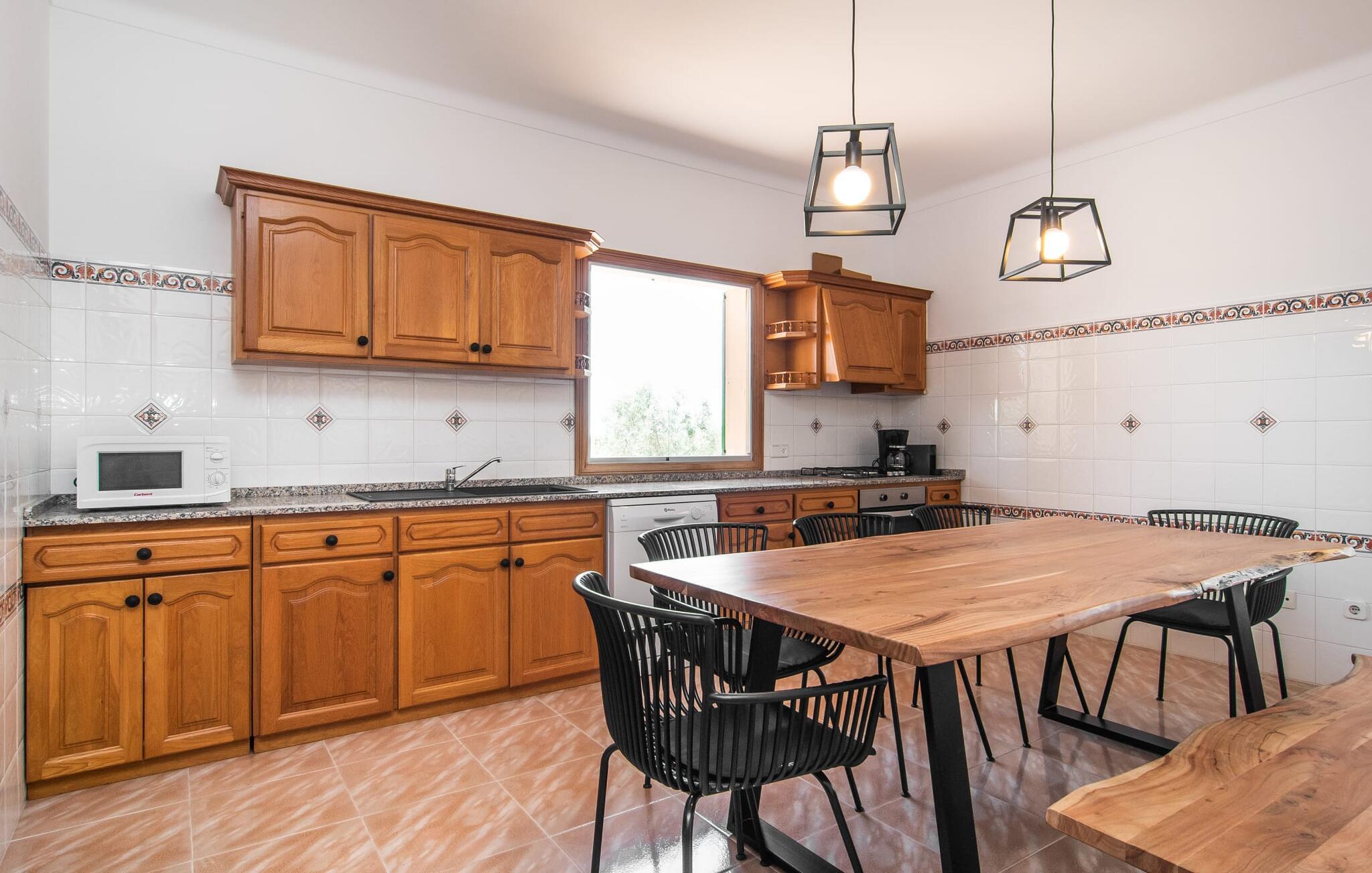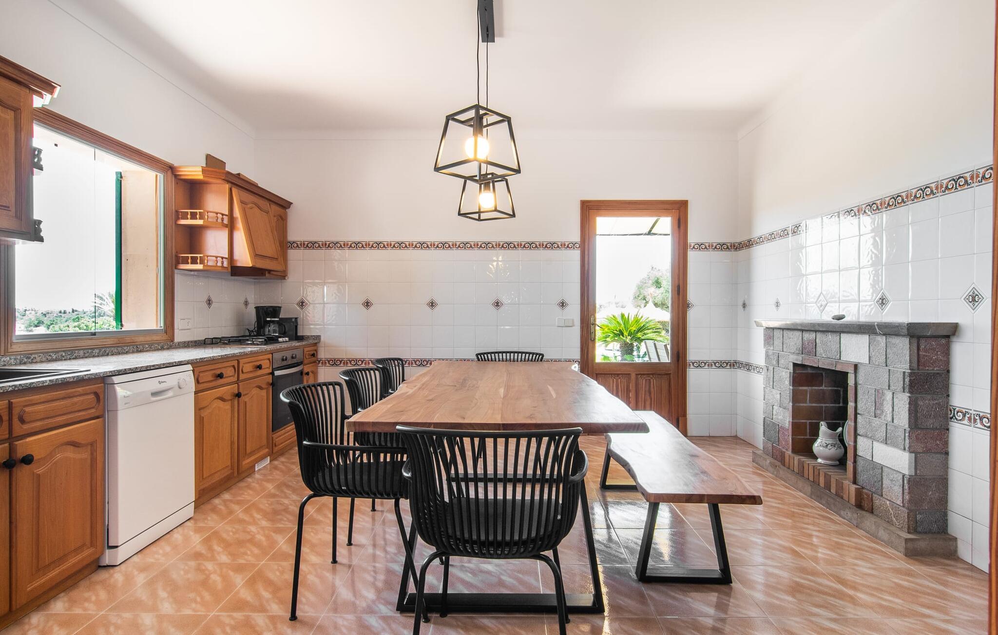 Hvis I værdsætter stort set uberørt og mangfoldig natur, men samtidig ikke vil gå glip af en badeferie, så er den familievenlige bondegård "Hort de Can Rafalet" lige noget for jer. På ejendommen omgivet af middelhavsflora vil I opleve absolut fred. Grønt så langt øjet rækker, med de imponerende saltmarker og megastranden Es Trenc ikke langt væk. Ferieejendommen byder på masser af udendørs plads, herunder en smuk mosaikbeklædt pool med tilhørende solterrasse. Her generer I ingen naboer, og I vil være fuldstændig uovervåget. Nyd aftenen på terrassen i skyggen af Toldo med dens rummelige spiseplads. Uanset om I er tidligt op eller sent op – den runde, delvist overdækkede veranda foran huset med traditionelle gyngestole inviterer jer til fuldt ud at nyde det hyggelige og indbydende feriehus på det sydlige Mallorca og lade blikket vandre. I kan også finde denne afslapning inde i den majestætiske feriegård. Kombinationen af mallorcansk landhusstil med moderne indretningsdetaljer kan betegnes som yderst vellykket. Et rummeligt indgangsparti med middelhavskarakter inviterer jer til at gå på opdagelse i huset. I stueplan finder I den hyggelige tv-stue, det dejligt store køkken-alrum med hyggelig spiseplads og et af de klimatiserede afslapningsrum. Et trendy badeværelse med brusekabine fuldender denne etage. Attraktivt boligtilbehør i landhusstil sætter også dygtige accenter på øverste etage. Det vidner de øvrige tre soveværelser også om, hvoraf to har direkte udgang til solbeskinnede altaner med fortryllende udsigt. To ekstra komfortable badeværelser (med bruser eller badekar) er en del af de forkælende grundfaciliteter i dette smukt beliggende feriehus. Den indvendige indretning af det rummelige feriehus er ideel til flere konstellationer med op til otte rejsende - altså to familier eller flere vennepar. Alle er velkomne på Hort de Can Rafalet! Den indbydende poolgård "Hort de Can Rafalet" imponerer med sin landlige ro mellem oliventræer og en historisk vindmølle, kombineret med den mest moderne komfort. Ejendommen har en førsteklasses beliggenhed i det sydlige Mallorca mellem den lille by Ses Salines og kystbyen Colònia de Sant Jordi. Stedets tiltrækningskraft ligger ikke kun i naturlige vidundere som saltmarkerne, men også i dets nærhed til drømmestranden Es Trenc. Dette er kun 10 minutter væk i bil. Aircondition er tilgængeligt i denne ejendom, men dets brug er begrænset til kl. 21.00 til 09.00. Ellers afregnes gebyret kontant på stedet.
