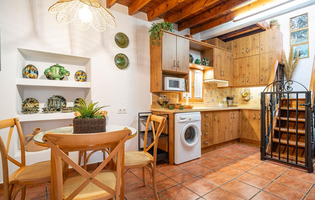 Denne kompakte og funktionelt indrettede lejlighed ligger i dejlige, rolige omgivelser med en fantastisk beliggenhed til en smuk ferie med familien. Indretningen fremtræder flot og rustikt med mørke træbjælker, dekorativ murstensbrændeovn og pæn kunst på væggene, der gør det nemt at sænke skuldrene og bare slappe af. Rund en begivenhedsrig dag af i sofaerne med brætspil, snacks og en god film, mens I lægger planer for de kommende dage.
