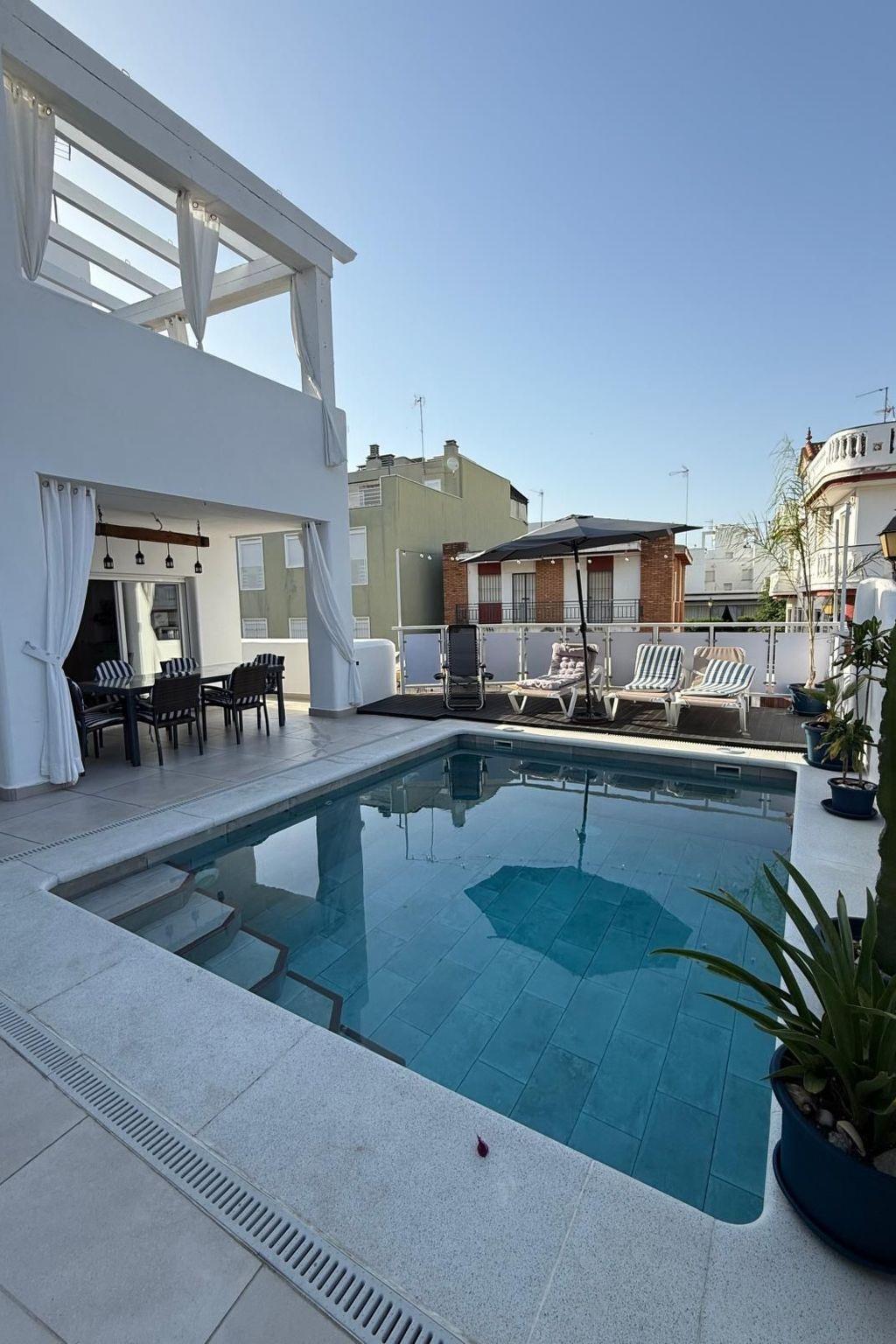 The exterior is, without a doubt, one of the strong points of this property, highlighting its large terrace and a refreshing swimming pool for exclusive use, completely fenced off for your pet's safety. The private roof terrace is the ideal place for relaxing moments, where you can sunbathe or read a book in complete privacy. The garden, also for exclusive use, envelops the house in an aura of tranquillity, perfect for unwinding.