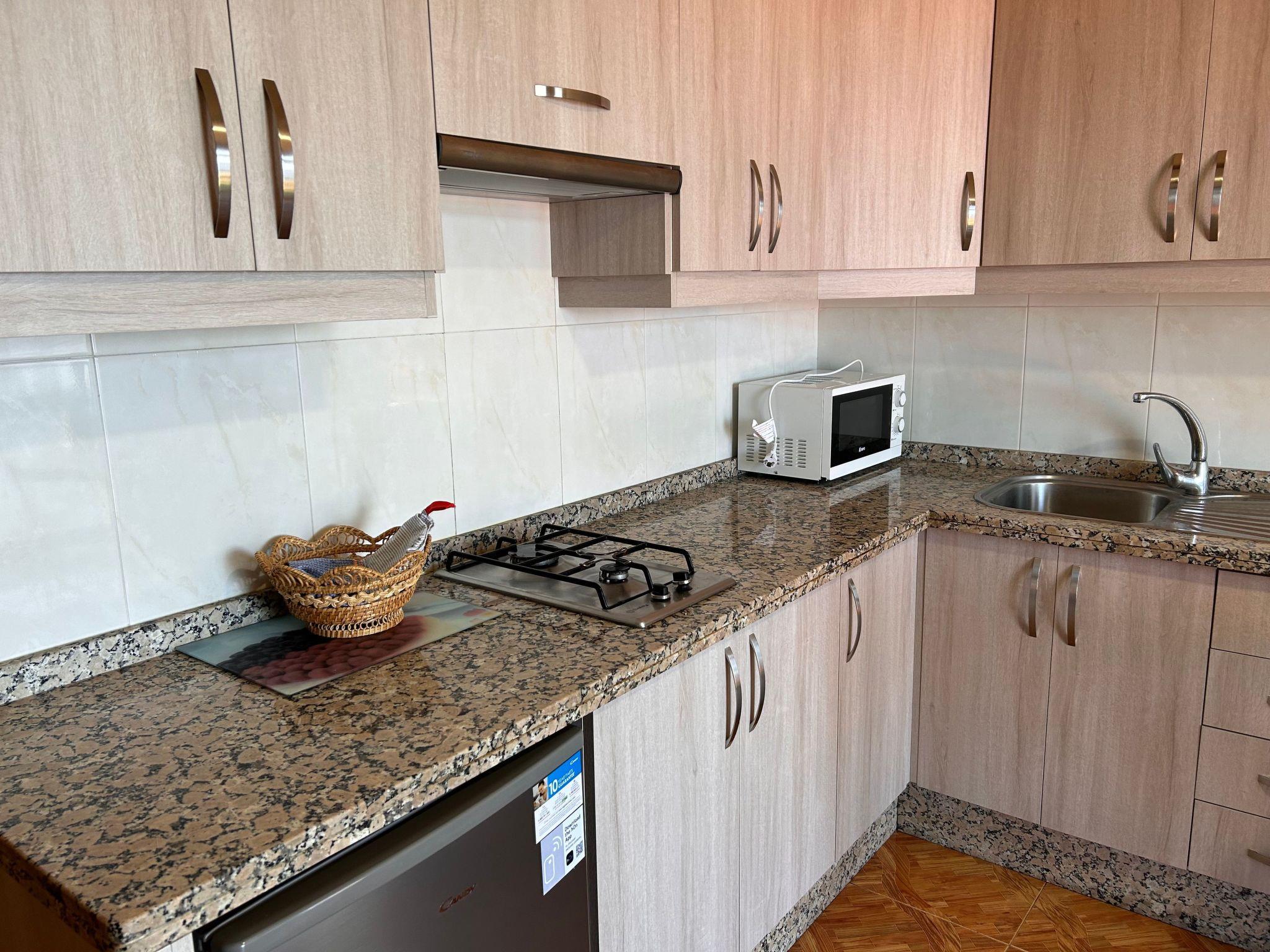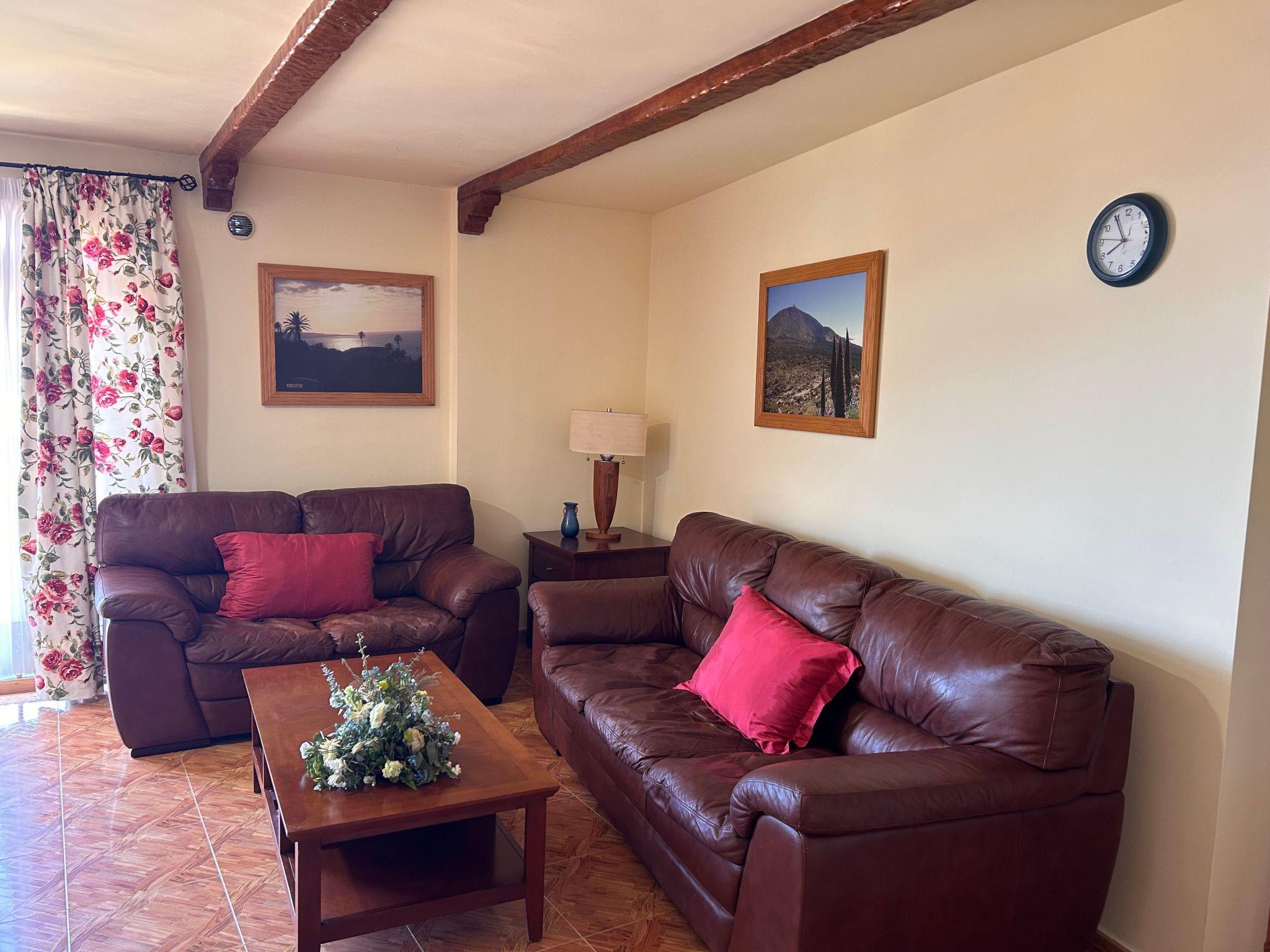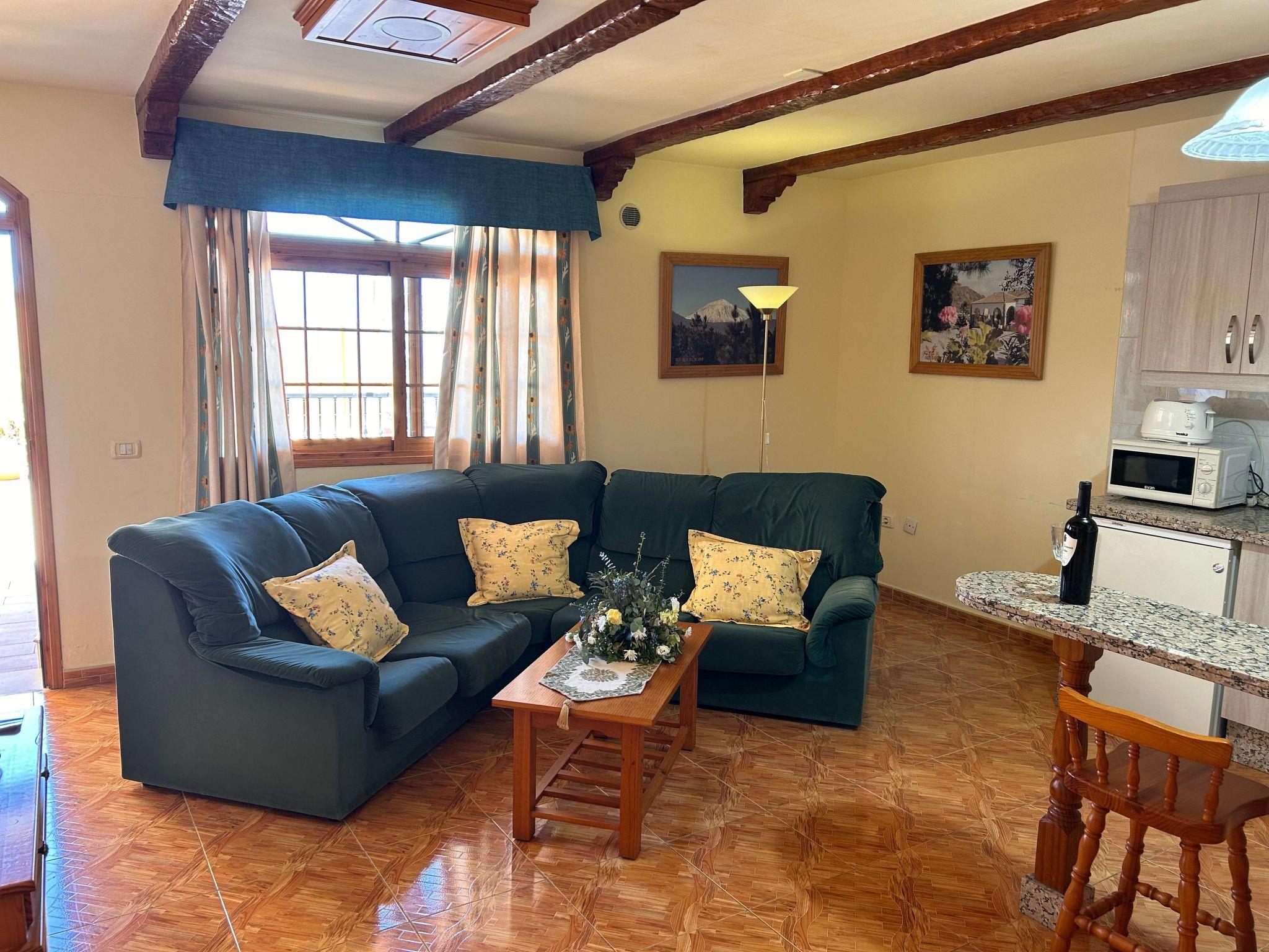 This beautiful apartment on the third floor of the complex, has a 30 m2 terrace where you can enjoy the sun and stunning views over the ocean and the valley where Icod de los Vinos is located, kitchenette and large lounge with leather sofa and LCD TV 32 "Satellite. The cozy bedroom invites you to relax on the large bed of 1.50 m with comfortable latex mattress and feather duvet. The ensuite bathroom has a bath and hairdryer. This apartment can accommodate up to 3 people, in an extra bed for third person in the living-room.