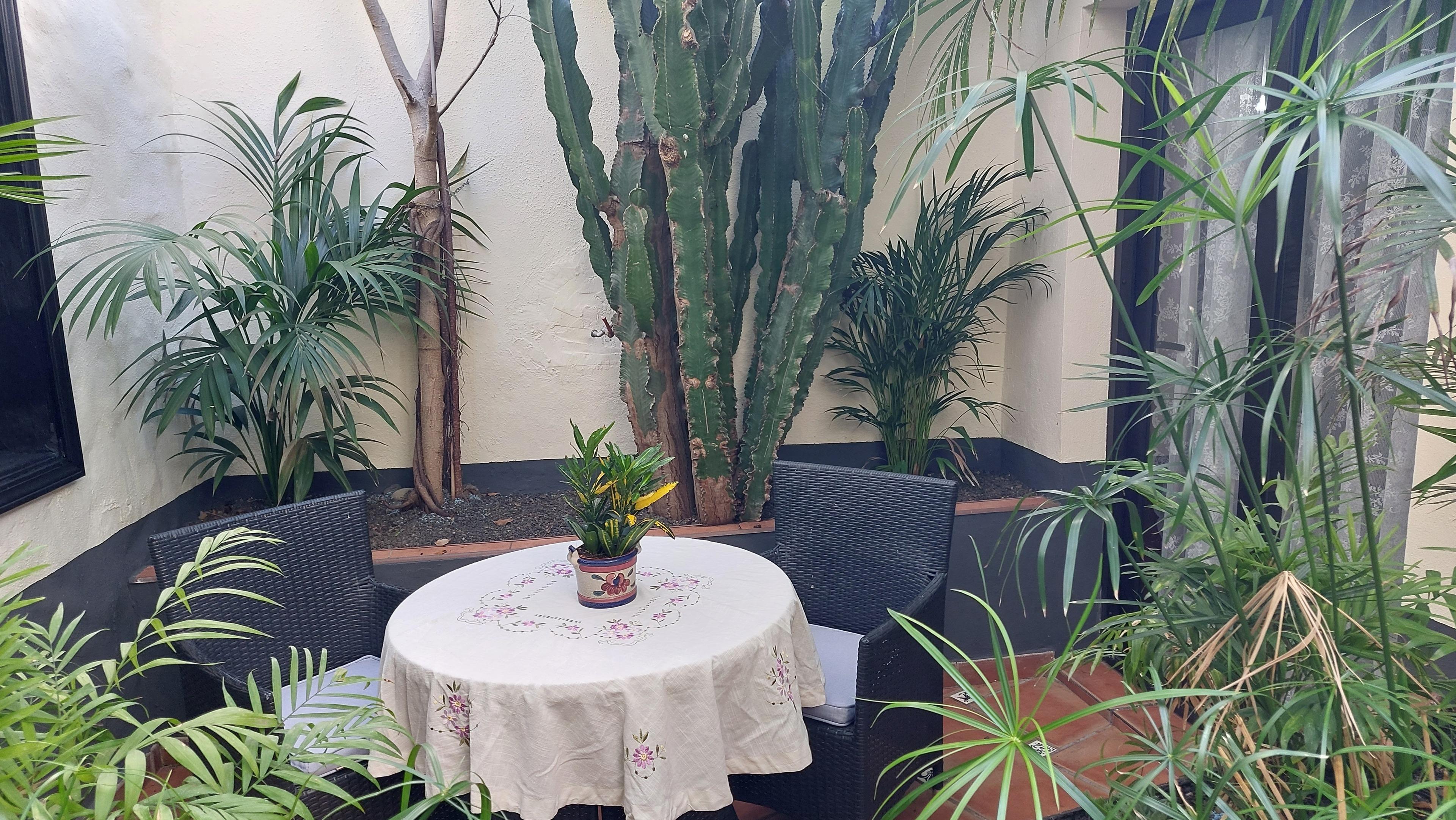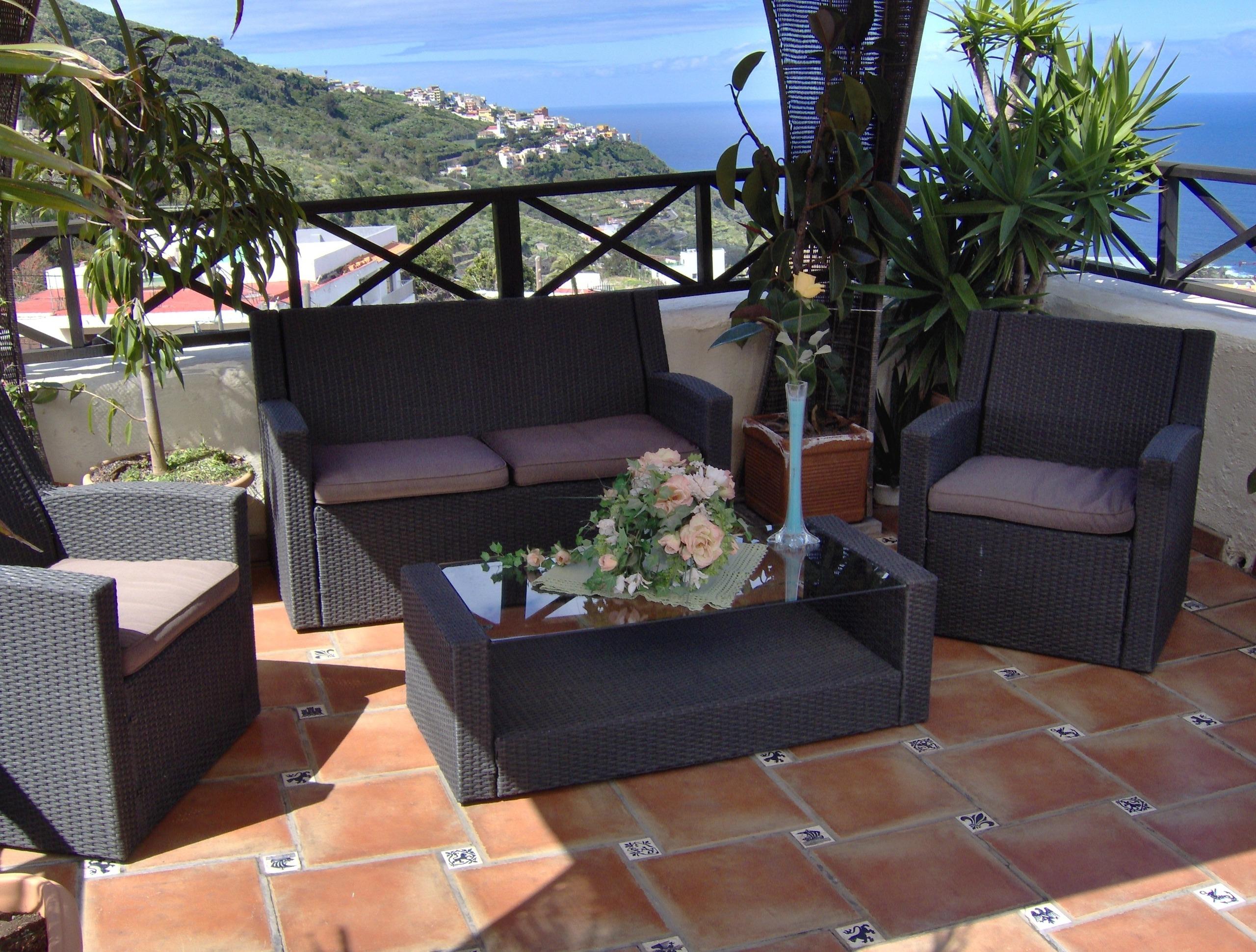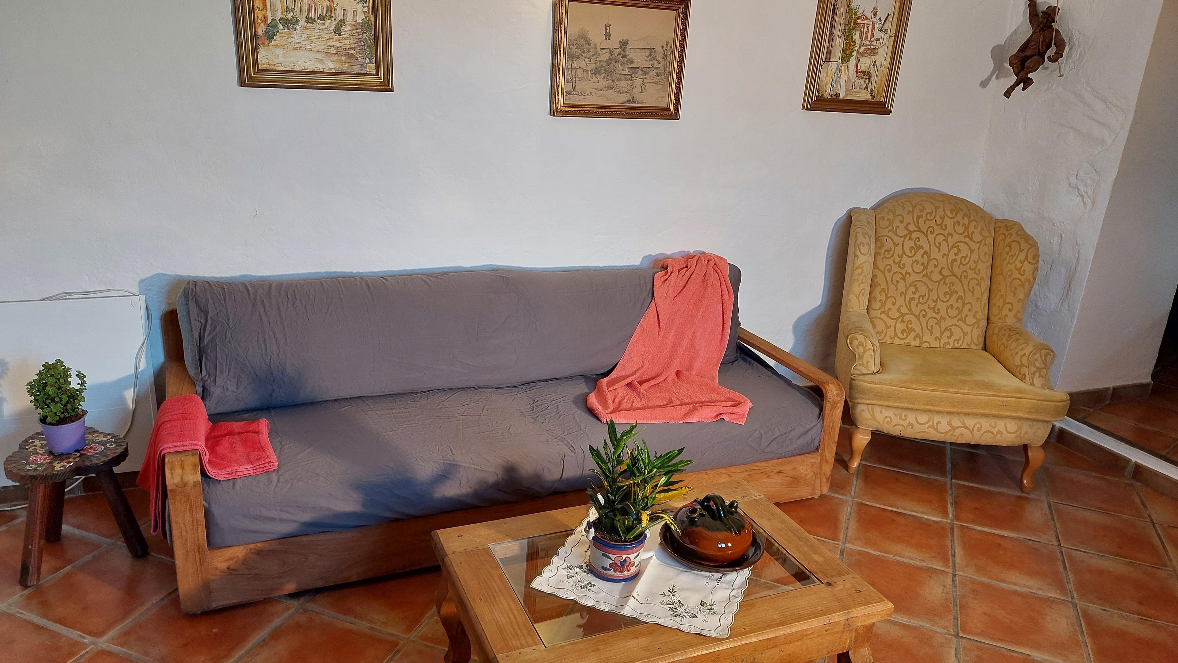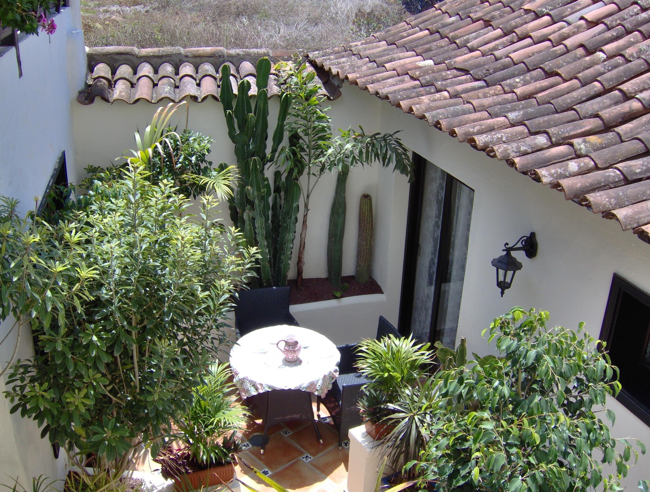 Die geräumige im rustikalen Stil eingerichtete Ferienwohnung verfügt über eine Küche, ein bequemes Wohnzimmer mit Essecke, ein geschmackvoll eingerichtetes Schlafzimmer, und eine wunderschöne Sitzgelegenheit auf der liebevoll gestalteten Innenhof-Terrasse. Die Ferienwohnung befindet sich im Erdgeschoss, das Schlafzimmer ist ruhig zum Innenhof gelegen. Von hier aus gelangen Sie auch direkt auf die Innenhof-Terrasse. Das kleine Wohnzimmerfenster bietet einen partiellen Meerblick und liegt zur Landstraße. Der Flachbildfernseher verfügt über Satellitenempfang mit ca. 450 internationalen Sendern- darunter alle frei empfangbaren deutschen Kanäle - sowie durch Umschalten auf der Fernbedienung über DVB-T-Empfang mit den gängigen spanischen Fernsehsendern. Zudem kann auf Anfrage kostenlos Netflix bereitgestellt werden. Unser Haus verfügt über Internetanschluss per Glasfaser und in allen Unterkünften sowie auf der Dachterrasse steht sehr gut funktionierendes W-LAN zur kostenlosen Verfügung.