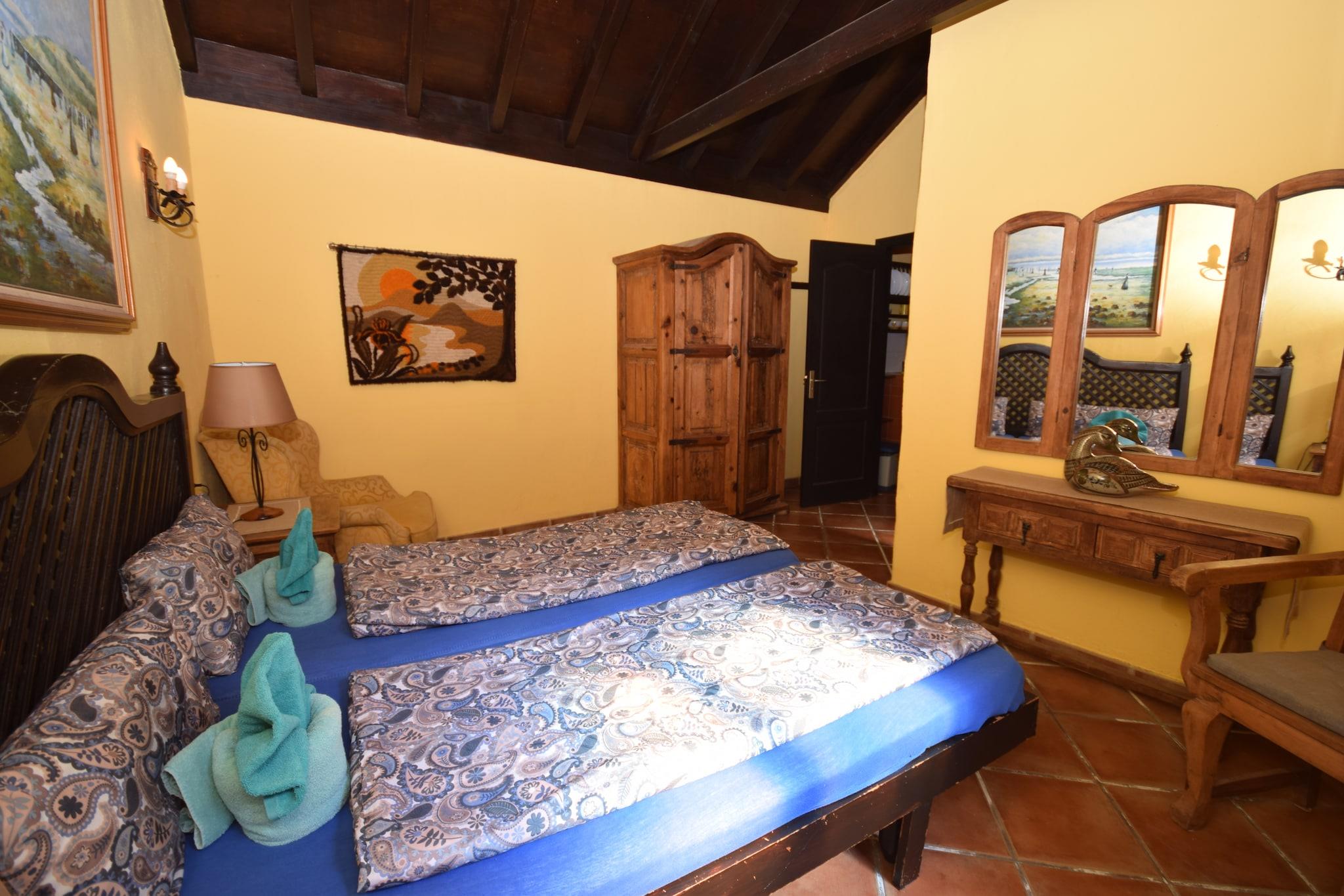 Denne rummelige, rustikke ferielejlighed (ca. 45 m²) ligger i stueetagen. Dette er en udlejningsbolig kun for voksne, eksklusive måltider eller rengøringsservice. Lejligheden har en komfortabel stue med spiseplads, et veludstyret køkken og et smagfuldt indrettet soveværelse. Et centralt træk er det dejlige private opholdsområde på den lille gårdhaveterrasse, som giver et charmerende udendørsområde til afslapning. Det rolige soveværelse har udsigt over denne gårdhave og tilbyder direkte adgang til terrassen, mens det lille vindue i stuen vender ud mod hovedvejen og giver delvis havudsigt. Lejligheden er veludstyret med moderne teknologi for din komfort og underholdning. Bygningen har højhastigheds fiberoptisk internetadgang, hvilket sikrer pålidelig, gratis Wi-Fi både i lejligheden og på den fælles tagterrasse. Fladskærms-tv'et giver omfattende satellitmodtagelse med cirka 450 internationale kanaler, inklusive alle gratis tyske kanaler. Spanske DVB-T-kanaler er også tilgængelige via fjernbetjeningen. Derudover kan gratis Netflix-adgang leveres efter anmodning, hvilket forbedrer dine mediemuligheder under dit ophold. Beliggenheden tilbyder fremragende bekvemmelighed til at udforske lokalområdet. Der er kun 100 meter til daglige forsyninger, hvilket gør det nemt at klare daglige ærinder. Der ligger restauranter kun 500 meter væk, og bymidten og nattelivet ligger inden for 800 meter til 1,0 km. Offentlige faciliteter, herunder offentlig transport, en offentlig svømmehal og turistinformationen, ligger alle cirka 1,0 km væk.