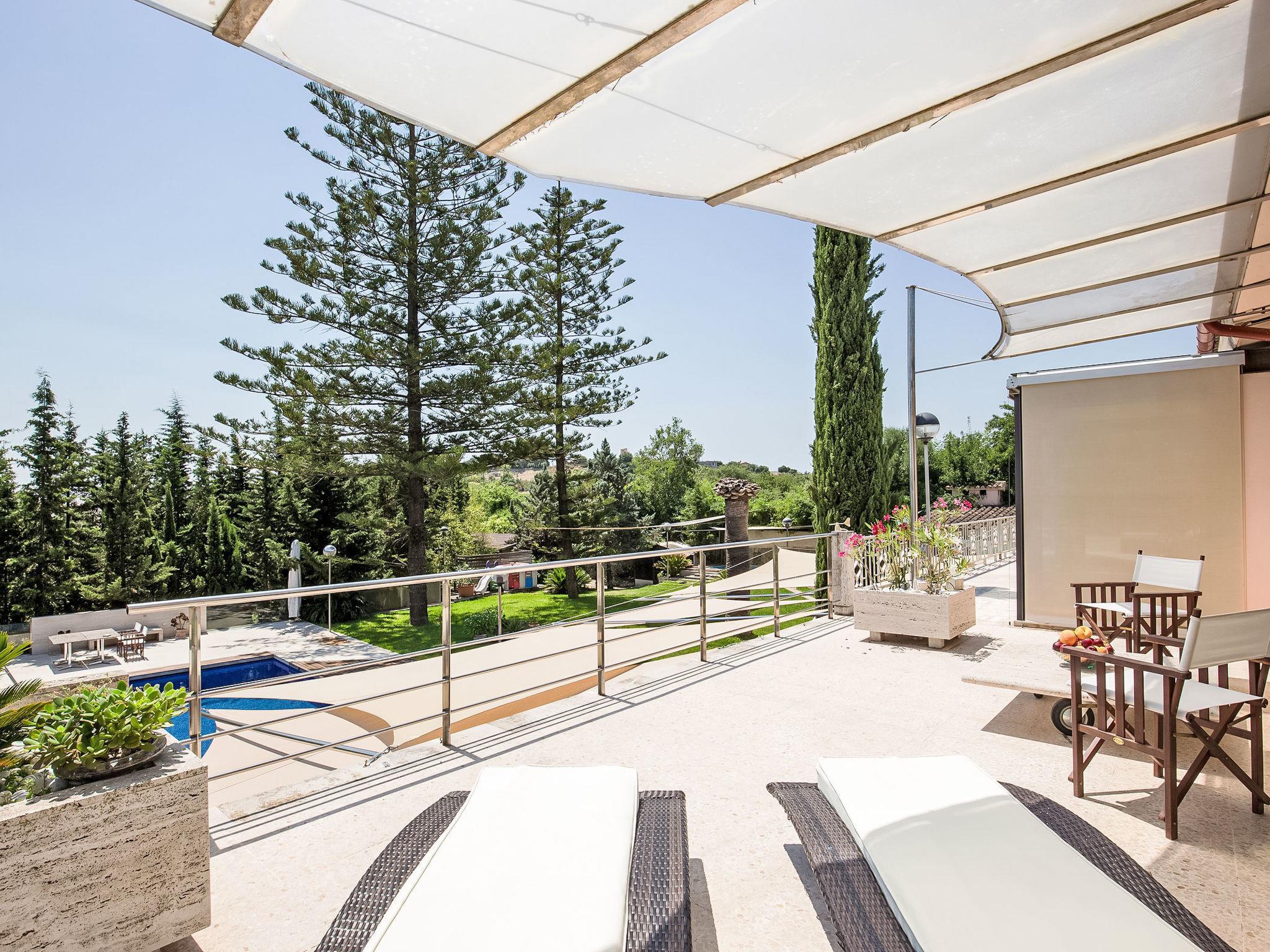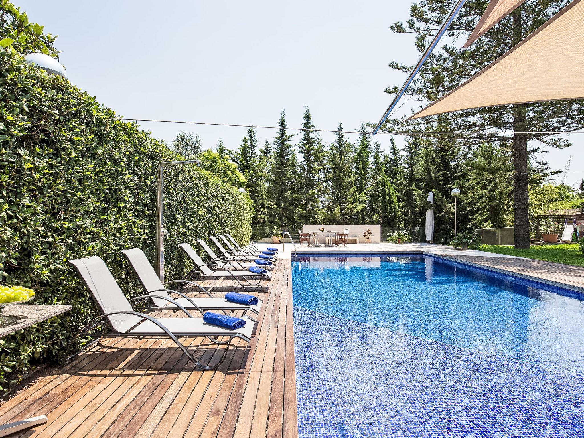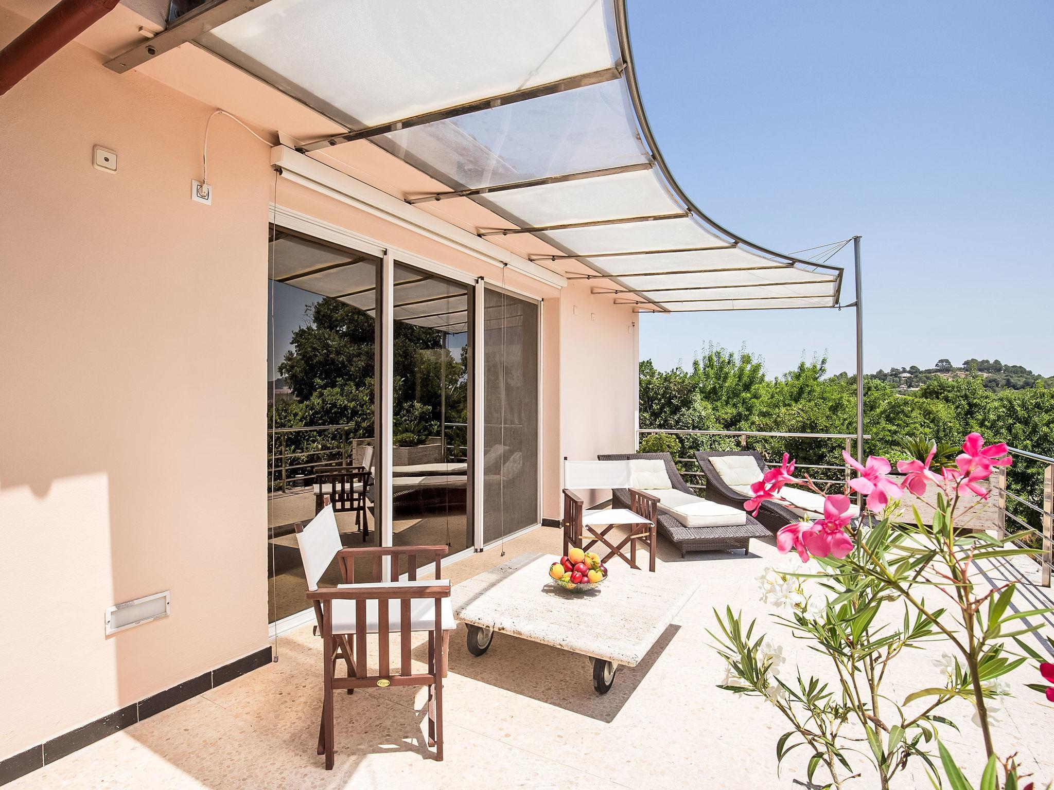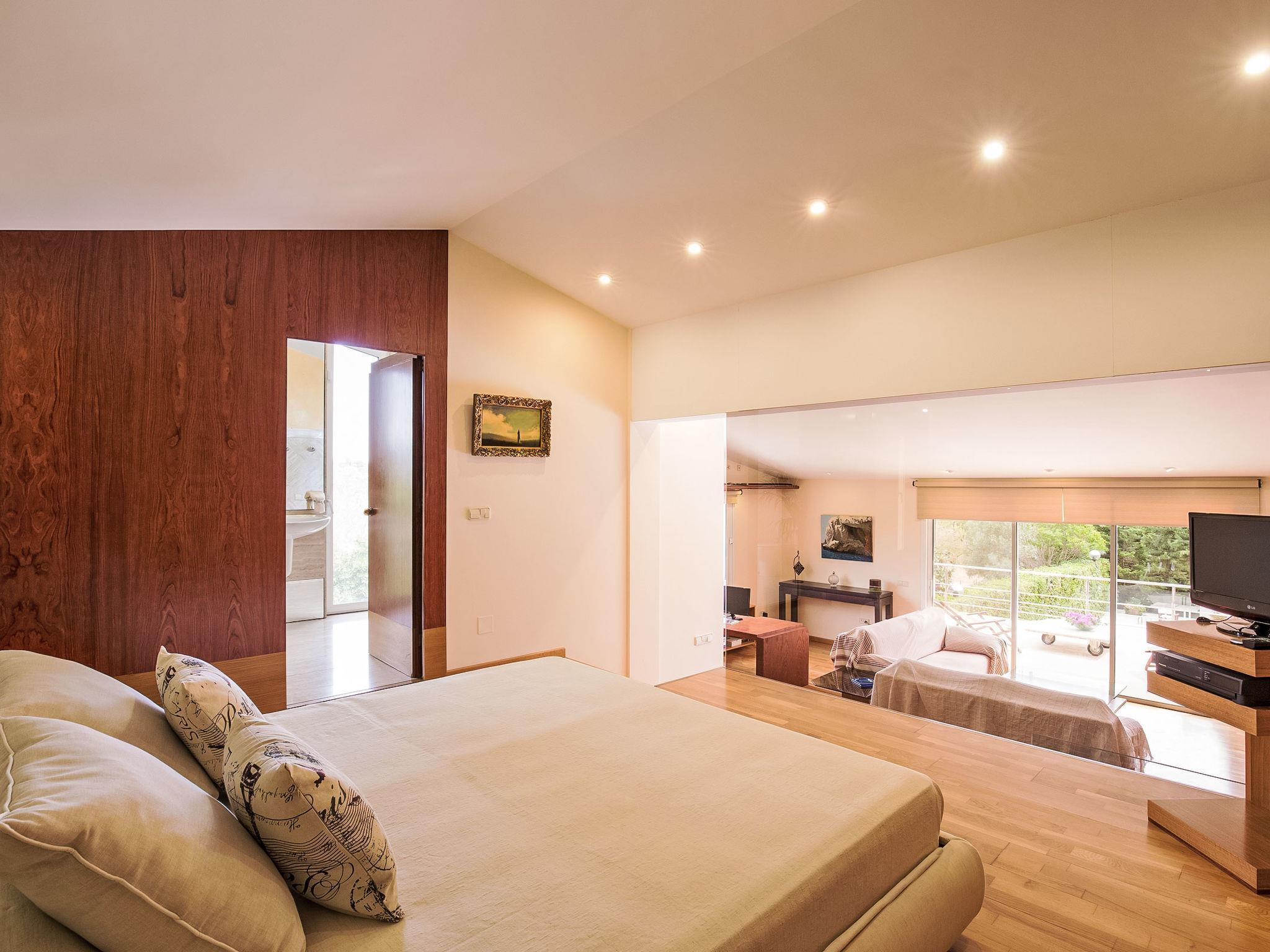 "Can Pedro", 9-room villa 600 m2 on 2 levels. Object suitable for 10 adults. Spacious and bright, fully renovated, very modern and stylish furnishings: open large living room with sliding door, panoramic window with satellite TV, digital TV, flat screen, air conditioning and forced-air heating. Exit to the patio. 1 large double bedroom with sliding door, panoramic window Dressing room with 1 french bed (180 cm), shower/bidet/WC, air conditioning and forced-air heating. Exit to the patio. 1 large double bedroom with panoramic window with 2 beds (90 cm), bath/bidet/WC, double hand-basin, air conditioning and forced-air heating. Exit to the patio. 1 large double bedroom with panoramic window with 2 beds (90 cm), air conditioning and forced-air heating. 1 large double bedroom with panoramic window with 1 french bed (150 cm), shower/WC, air conditioning and forced-air heating. 1 large double bedroom with panoramic window with 2 beds (90 cm), air conditioning and forced-air heating. Open large office with panoramic window with air conditioning and forced-air heating. Exit to the patio. Shower/WC. On the lower ground floor: (ladder) open large dining room with sliding door, panoramic window with air conditioning and forced-air heating. Exit to the patio, to the swimming pool. 1 double bedroom with sliding door, panoramic window with 2 beds (90 cm), shower/WC, air conditioning and forced-air heating. Exit to the patio, to the swimming pool. Kitchen-/living room (oven, dishwasher, 4 induction hot plates, toaster, kettle, microwave, freezer, electric coffee machine, cooking island) with dining table. Sep. WC. Large patio, lawn. Terrace furniture, balcony furniture, barbecue, deck chairs. Very beautiful view of the mountains and the countryside. Facilities: washing machine, iron, children's high chair, baby cot, hair dryer. Internet (WiFi, free). Parking (roofed). ETV/7165 // Reg. Nr.: ESFCTU00000701100036692100000000000000000000ETV/71657