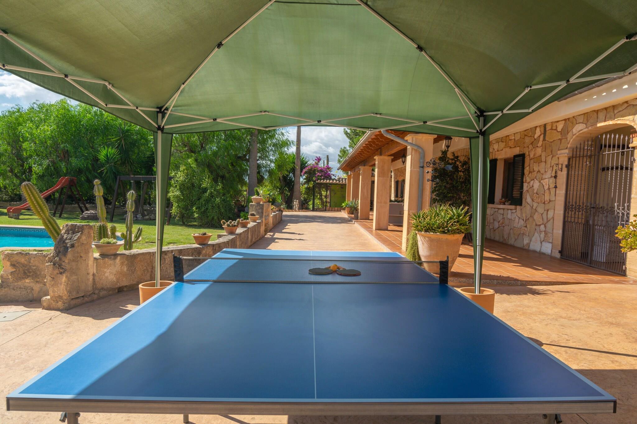 Tranquil Garden Retreat Denne villa med 3 soveværelser ligger i en frodig privat have og tilbyder en fredfyldt flugt i hjertet af Mallorca. Nyd solen på seks liggestole, nyd en dukkert i den 10,5 x 5,2 m klorpool, eller forfrisk under den udendørs bruser. Børn kan lege trygt på legepladsen, mens voksne samles til en grill eller en aften med poolbillard på den møblerede veranda. En terrasse på øverste etage har udsigt over bølgende grønne bakker, der tilbyder de perfekte rammer for afslapning og familiestunder. Komfortabelt indendørs ophold Inde i villaen på 250 m² inviterer en hyggelig stue med satellit-tv til familiesamtaler, og spisepladsen er ideel til fælles måltider. Det fuldt udstyrede køkken inkluderer en vitro-komfur og lokal-tv til kulinarisk inspiration. Villaen har plads til seks gæster i tre soveværelser - to dobbeltværelser med en-suite brusere og en enkeltseng. Aircondition i hovedrummene sikrer komfort på varme dage, mens to ekstra badeværelser (et med badekar, et med bruser) fuldender hjemmet. Nærliggende attraktioner og spisning Kun 1 km fra Inca kan du udforske lokale restauranter, supermarkeder og det travle torsdagsmarked for friske råvarer. Historie- og kulturentusiaster kan besøge kapellet Santa Magdalena eller klosteret Lluc, mens naturelskere kan nyde naturskønne vandre- og cykelruter. Nordkysten byder på stranddage ved Port d'Alcúdia, herunder mindre bugter som La Victoria og Playa de Sant Joan, og golfentusiaster kan spille golf på Alcanada Golf.